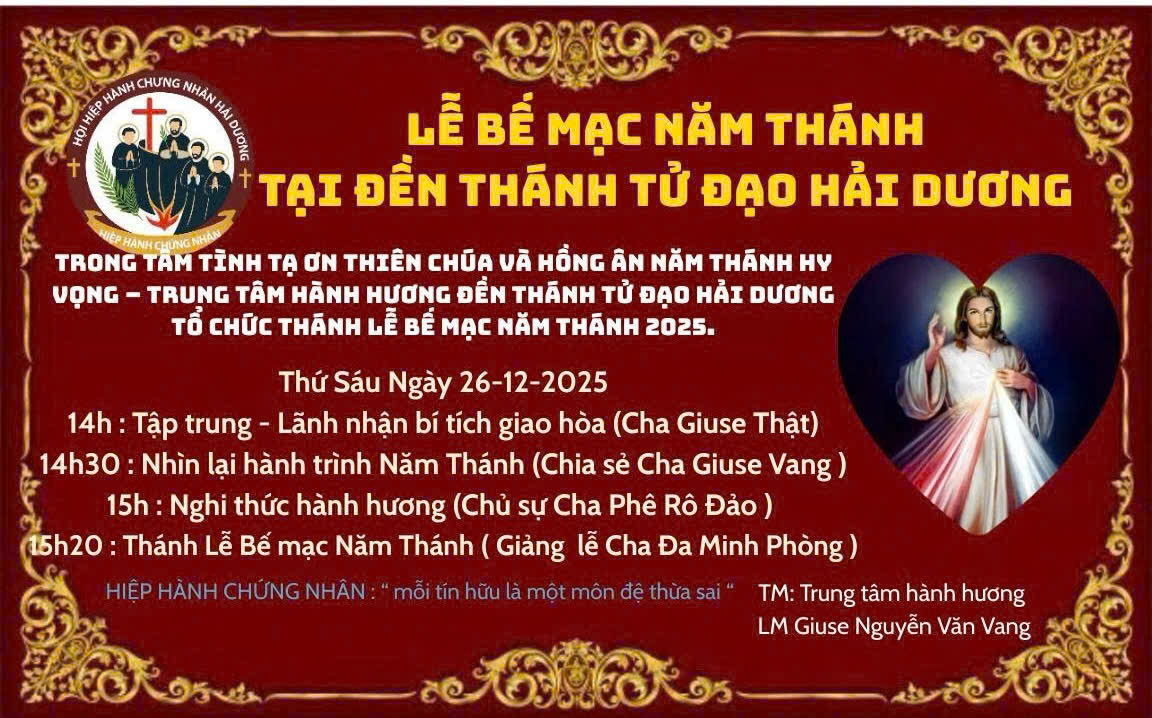 Thông báo: Trung tâm Hành hương Đền Các Thánh Tử đạo Hải Dương_Thánh lễ Bế mạc Năm thánh cấp Giáo hạt