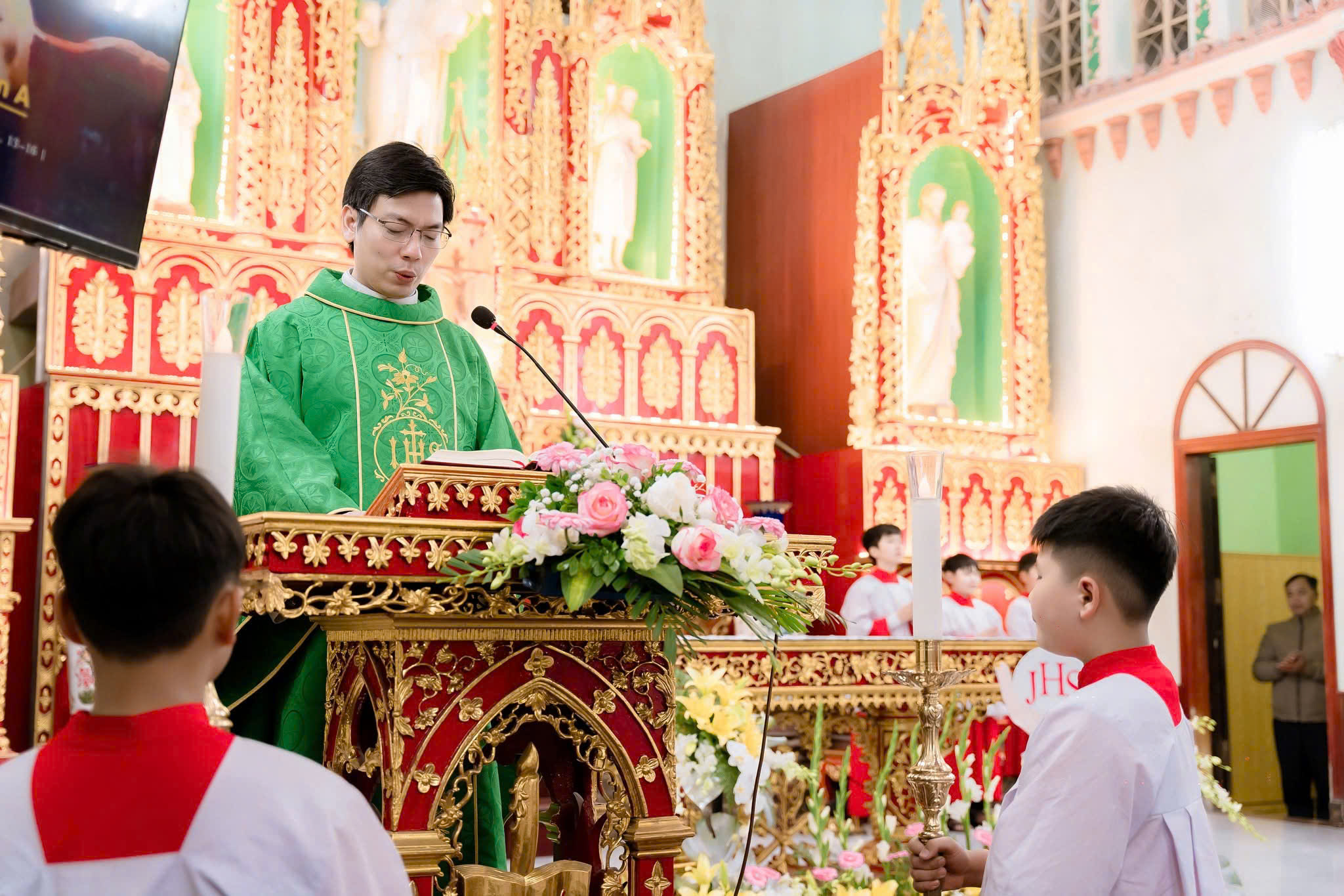 Thánh lễ do cha Quản nhiệm Giuse Nguyễn Thành Công chủ sự, cùng hiệp dâng trong Thánh lễ có sự hiện của quý sơ Đa Minh, quý anh chị Giáo lý viên – Huynh trưởng, cùng quý phụ huynh và cộng đoàn Giáo xứ.