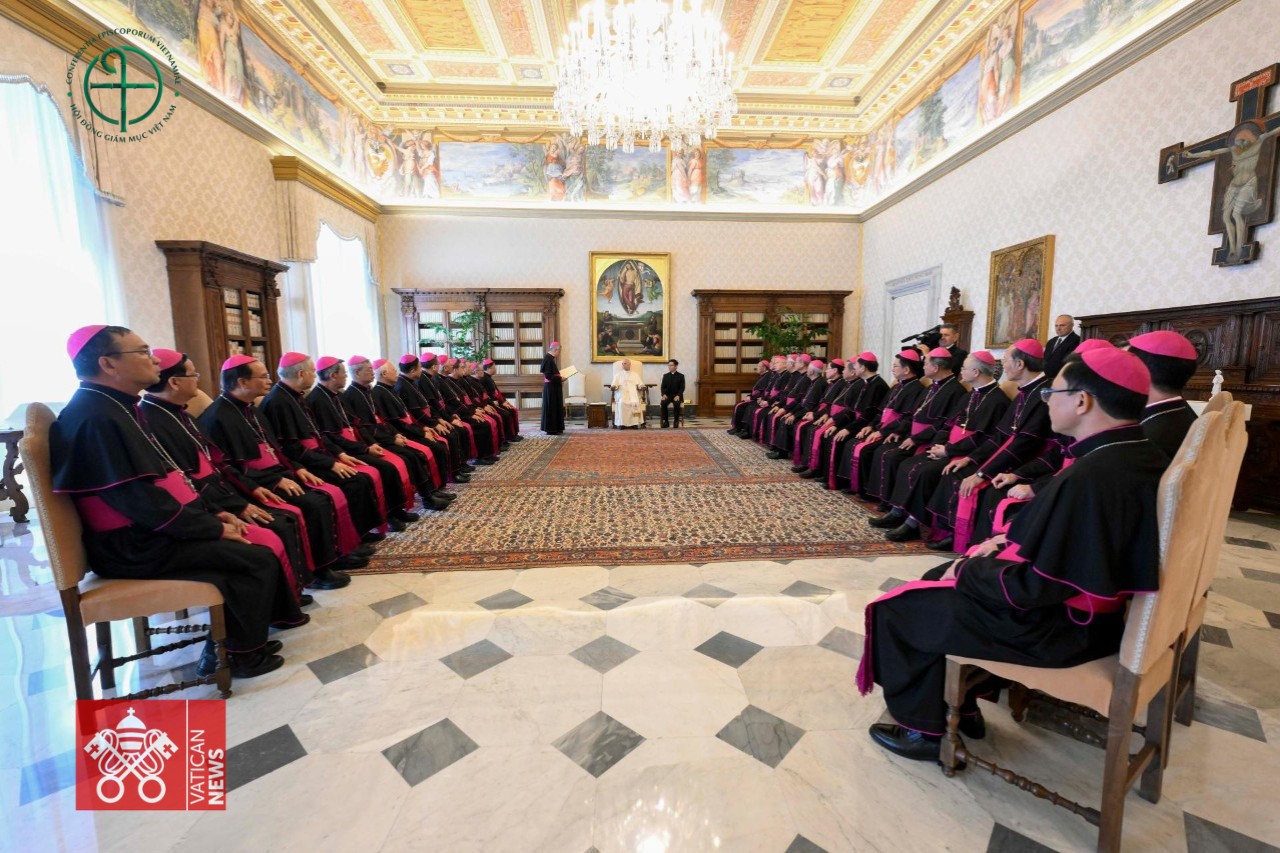 Lúc 10g30, các Đức Giám mục hân hoan bước vào Dinh Tông Toà để tiếp kiến Đức Thánh Cha. Vừa trở về sau chuyến tông du Phi châu, Đức Giáo hoàng niềm nở đón tiếp đoàn, ngài cho biết chính cuộc gặp gỡ với anh em giám mục đến từ Việt Nam đã tiếp thêm cho ngài sức mạnh, sự nâng đỡ và niềm vui.