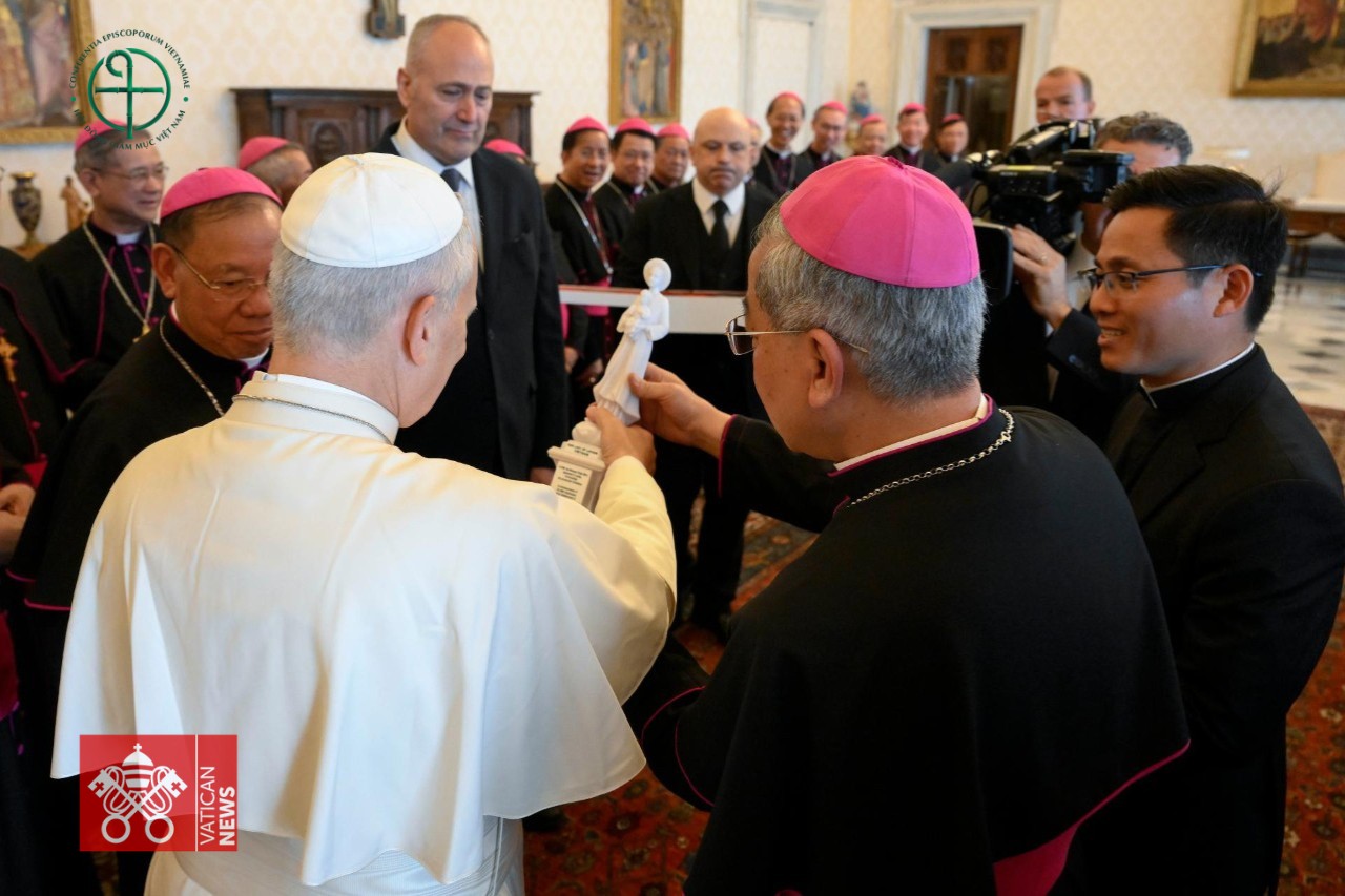 Đức cha Chủ tịch HĐGMVN dâng lên Đức Thánh Cha tâm tình thảo kính của toàn thể Dân Chúa tại Việt Nam, đồng thời bày tỏ niềm ao ước được ngài ghé thăm quê hương. Đức Thánh Cha vui mừng đón nhận lời mời, dẫu vẫn còn một số bước cần hoàn tất để chuyến viếng thăm trở thành hiện thực.