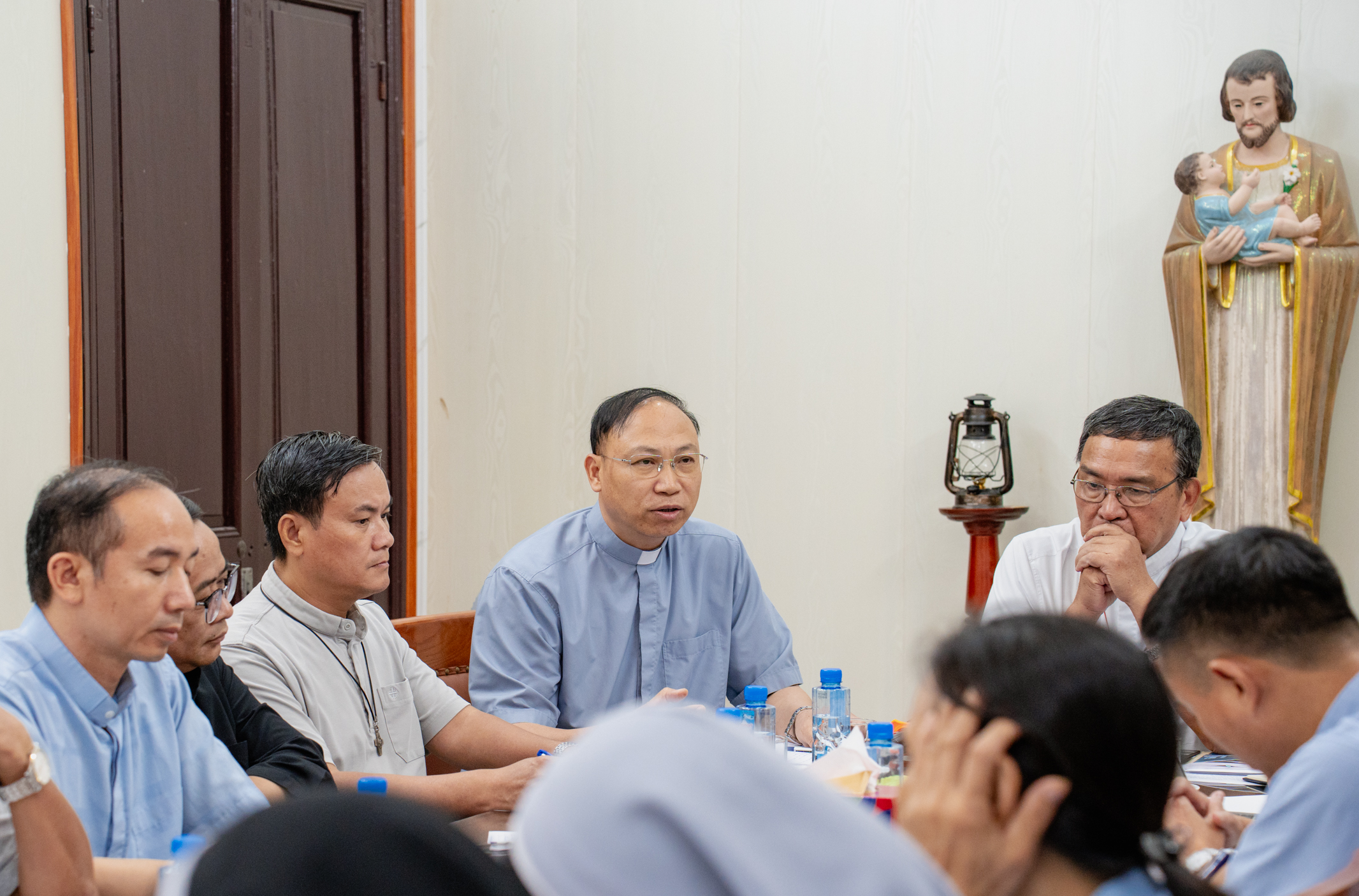 Mở đầu chương trình, Đức cha Vinh Sơn cùng quý cha và quý sơ trong Ban Hiệp hành sốt sắng dâng lời cầu nguyện xin Chúa Thánh Thần soi sáng. Tiếp đó, từ những văn kiện và định hướng của Hội Thánh, Đức cha đã đúc kết, gợi ý để toàn ban cùng suy tư và thảo luận.