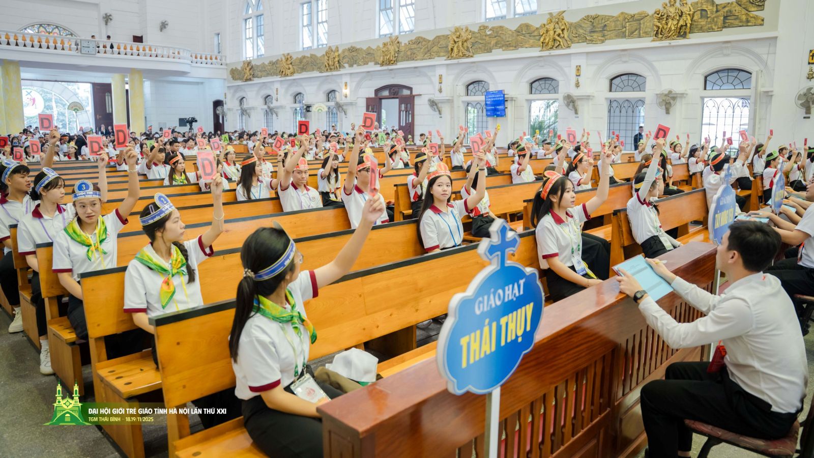 Trong bầu khí náo nức và đầy hứng khởi của ngày đầu Đại hội, Giới trẻ Giáo phận Thái Bình đã chính thức khởi động chương trình với Phần thi Giáo lý theo Tin Mừng Thánh Lu-ca. Đây là hoạt động mở đầu dành cho Giáo phận Thái Bình, giúp các bạn trẻ bước vào Đại hội với tâm thế sẵn sàng, chuẩn bị một nền tảng thiêng liêng vững chắc để sống trọn vẹn chủ đề năm nay.