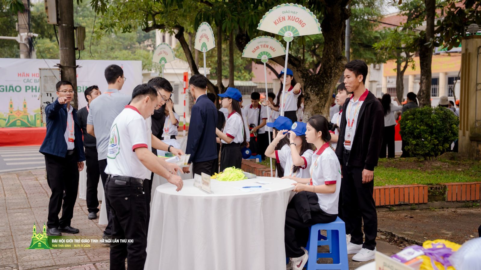 Sau phần thi, các bạn trẻ quây quần bên bữa cơm trưa, trong không khí thân mật, đầy tiếng cười, giúp mọi người thêm gần gũi và gắn kết. Đây cũng là khoảnh khắc nhẹ nhàng để chuẩn bị tinh thần bùng cháy cho những hoạt động chính thức của Đại hội trong buổi chiều hôm nay.