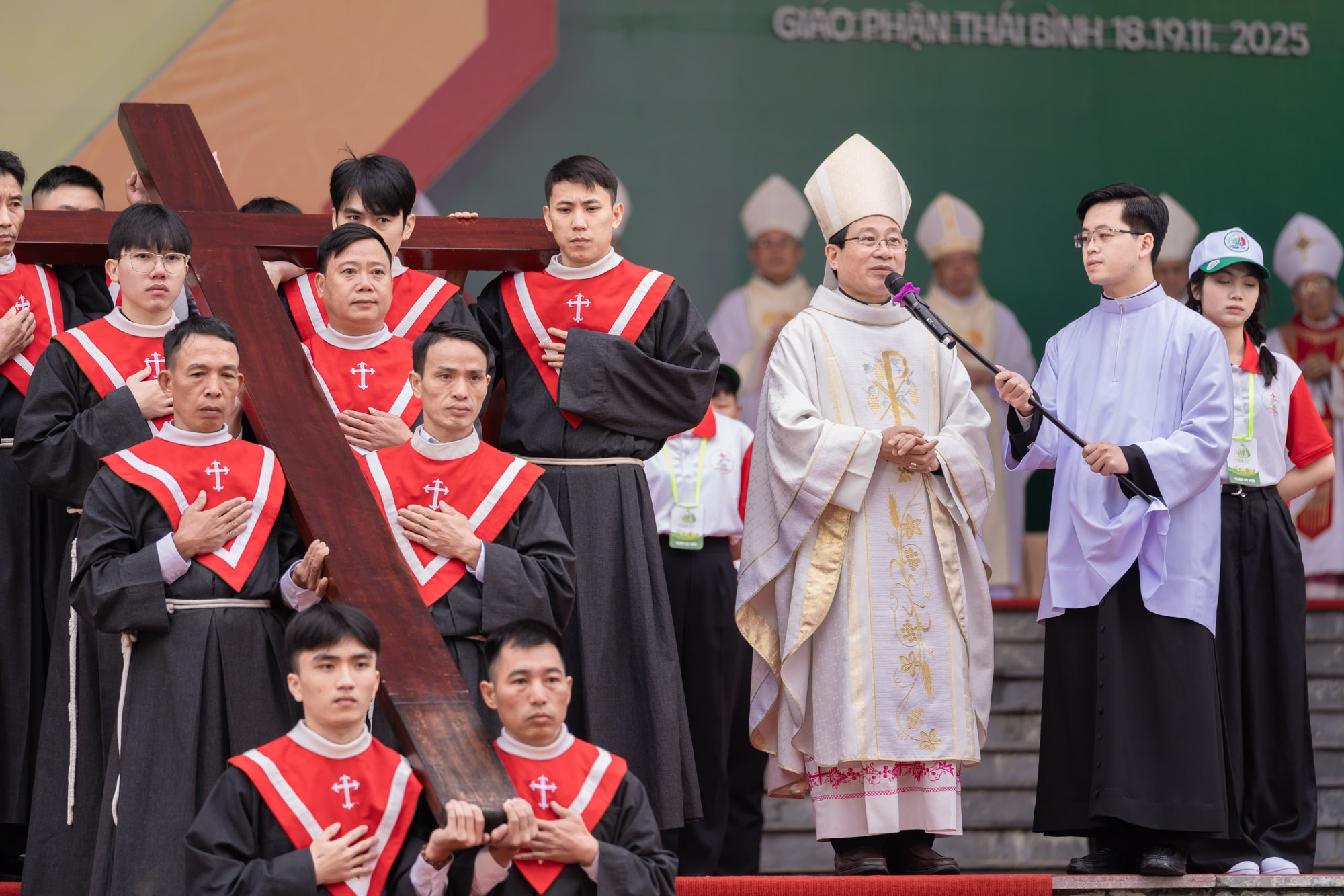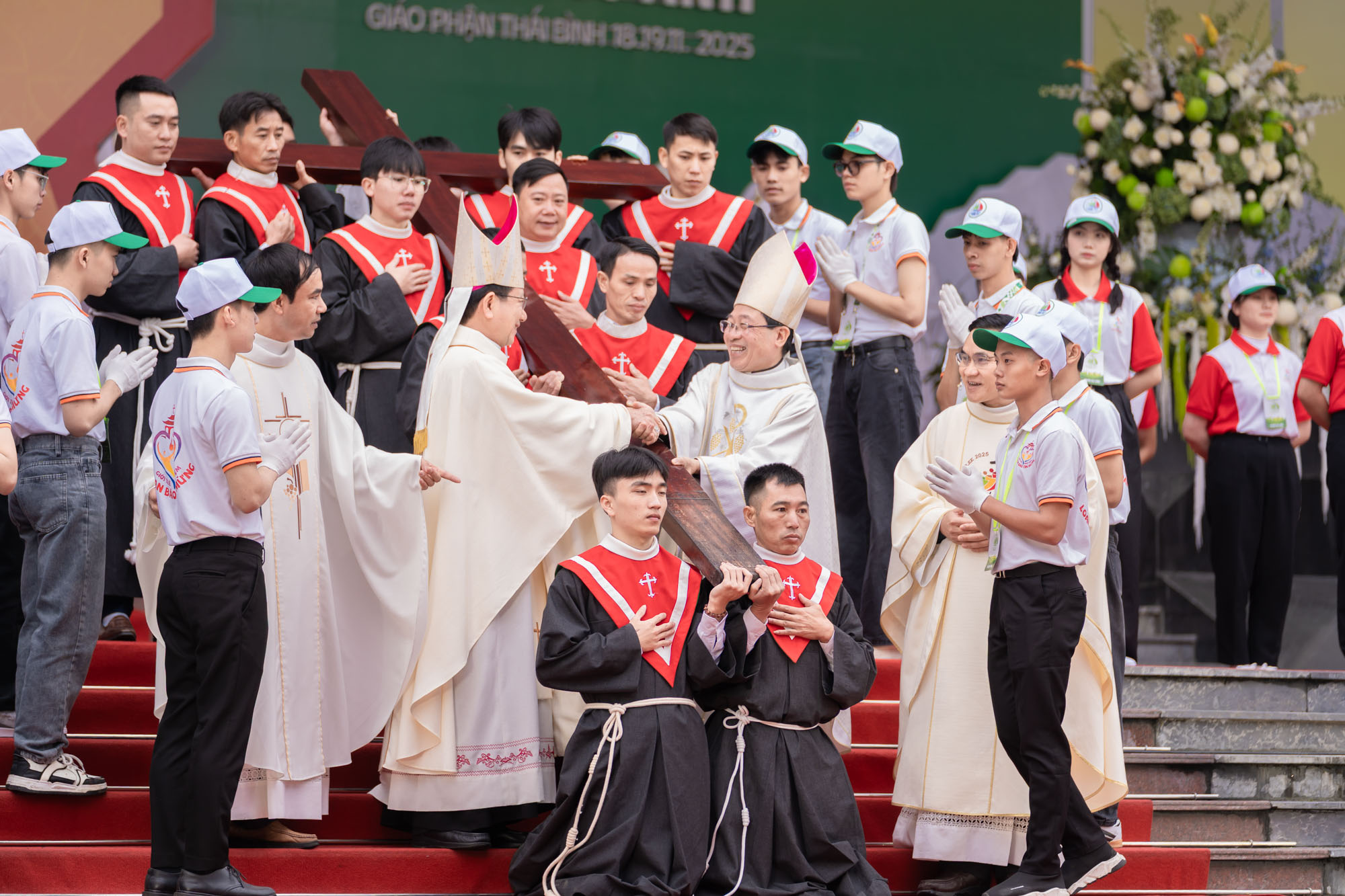 Bằng sự trân trọng đặc biệt, Đức cha dành lời khen tặng cho Giáo phận Thái Bình – giáo phận chủ nhà. Trong cái lạnh giá của buổi sáng mùa đông, các bạn trẻ vẫn nhiệt thành phục vụ, vui tươi, múa hát và hướng dẫn với tất cả tấm lòng. Thái Bình, theo lời Đức cha – chính là “người bạn đầu tiên nhận ra Chúa”, là tấm gương sống động của một cộng đoàn không giữ lại cho riêng mình, nhưng mở lòng đón tiếp tất cả trong tình huynh đệ.