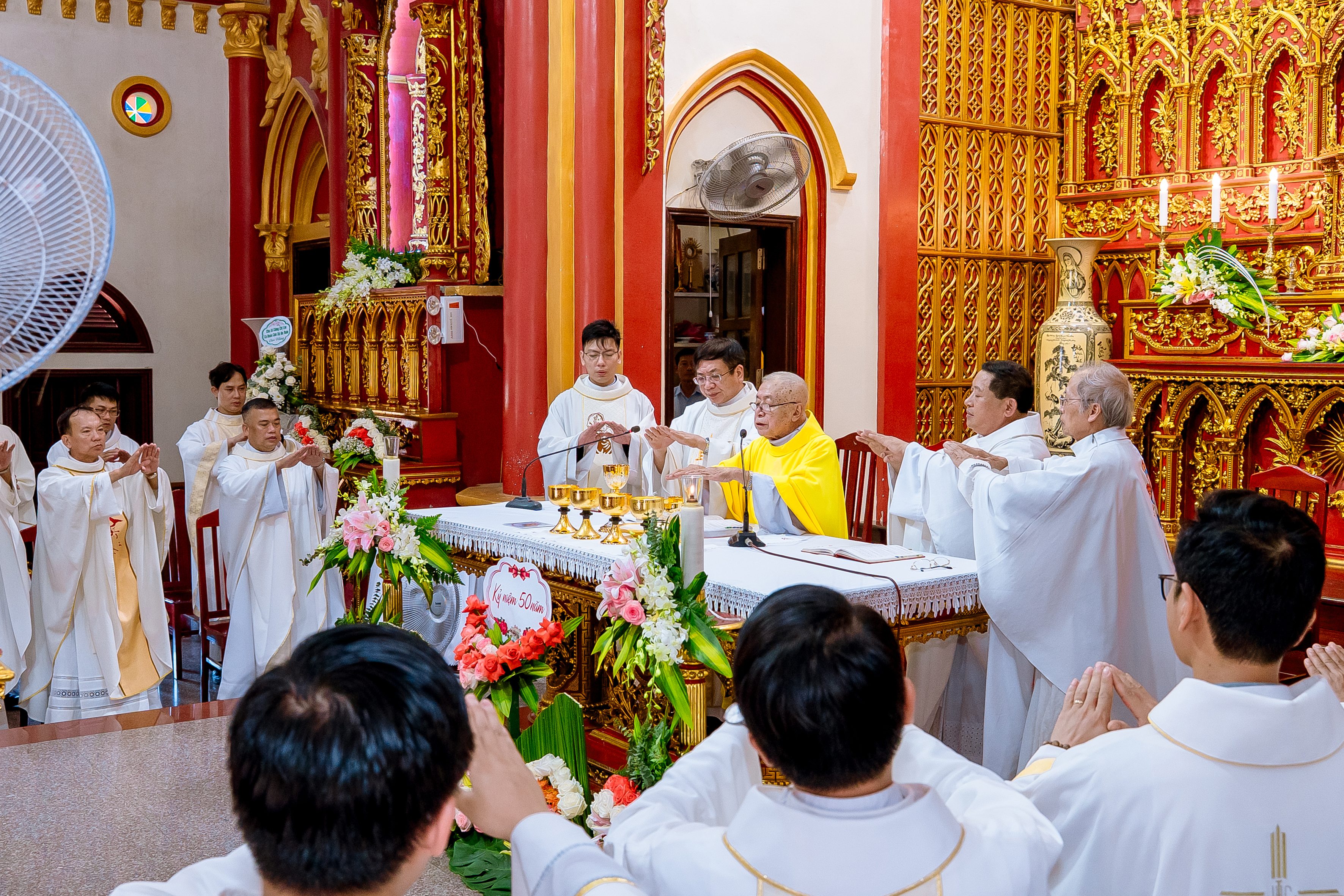 Hiệp dâng trong Thánh lễ còn có cha xứ tiền nhiệm Gioan Batixita Bùi Văn Nhượng – chính xứ An Cầu, cha Giuse Nguyễn Thành Công - chính xứ Liễu Dinh, quý cha cố, quý cha quê hương cùng quý cha đồng tế, quý tu sĩ, quý khách, quý ân nhân và cộng đoàn dân Chúa Giáo xứ Liễu Dinh, cách riêng các ca viên trong Ca đoàn Têrêsa.