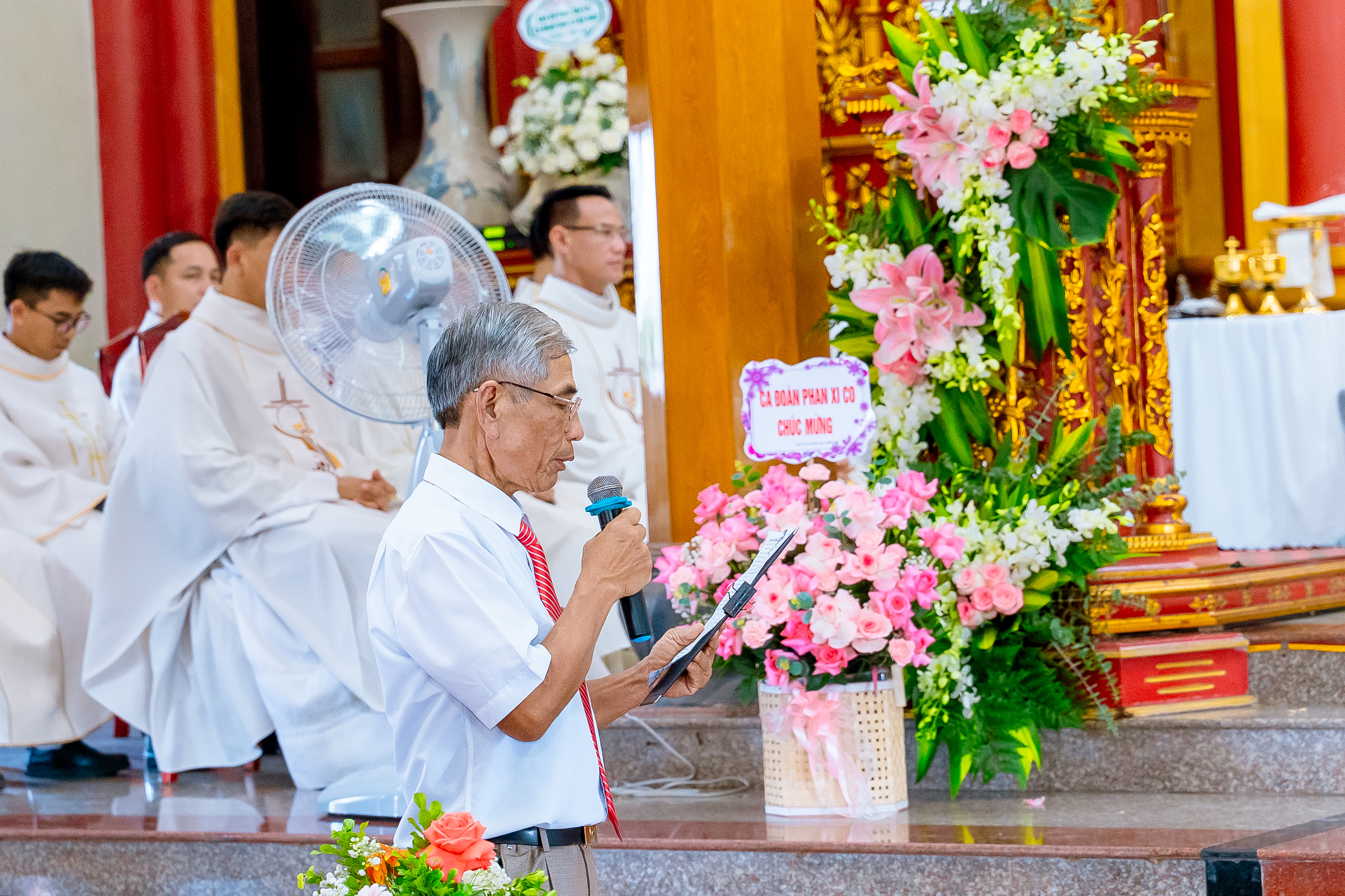 Trước khi kết thúc thánh lễ, ông trưởng đã đại diện cho Ca đoàn Têrêsa gửi tới quý cha đồng tế, quý tu sĩ, quý khách, quý ân nhân và cộng đoàn lời tri ân sâu sắc.