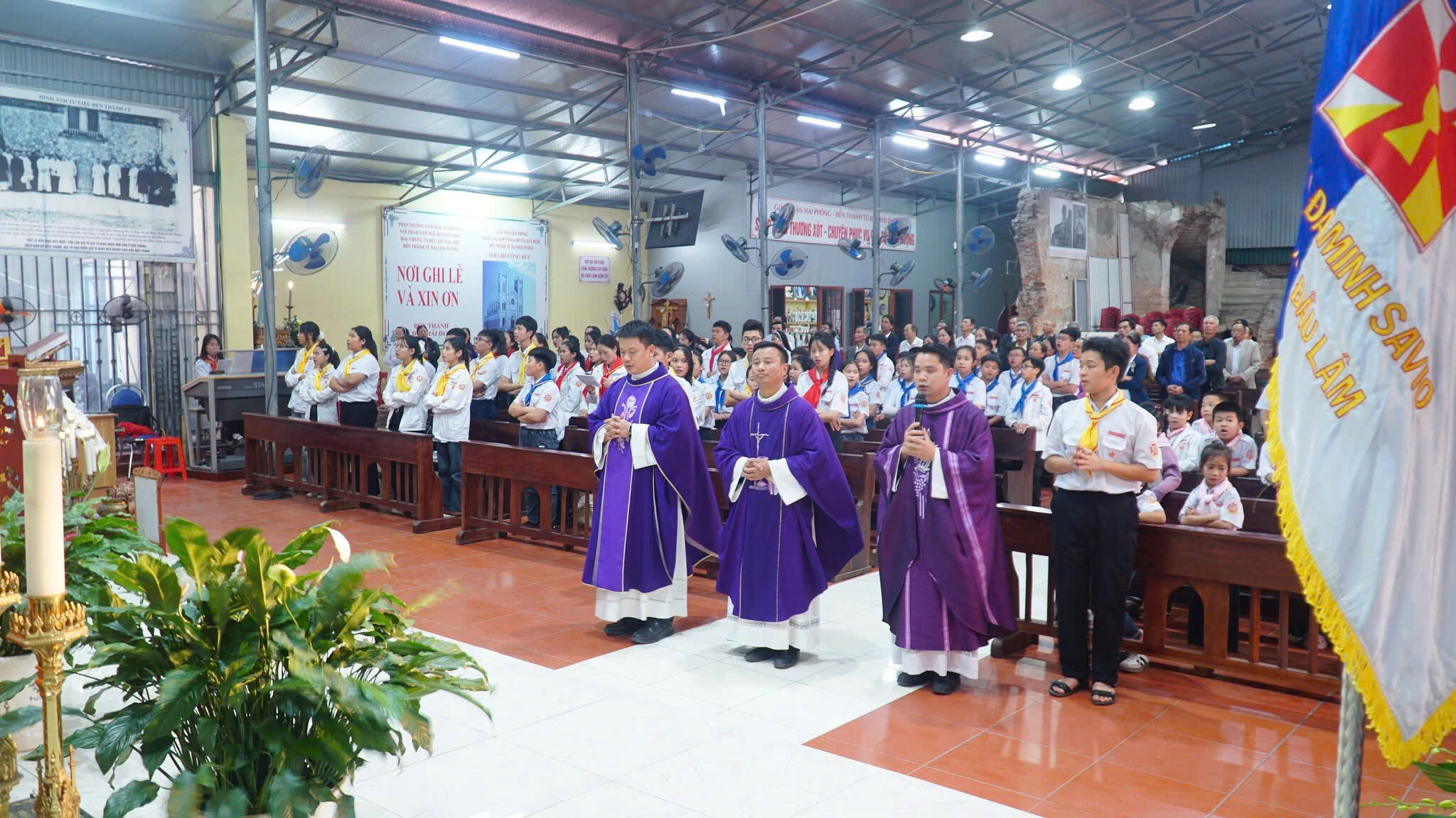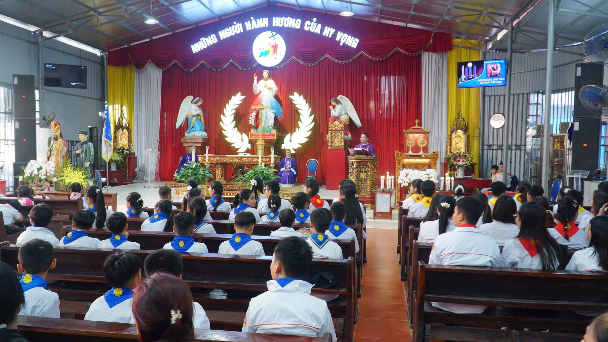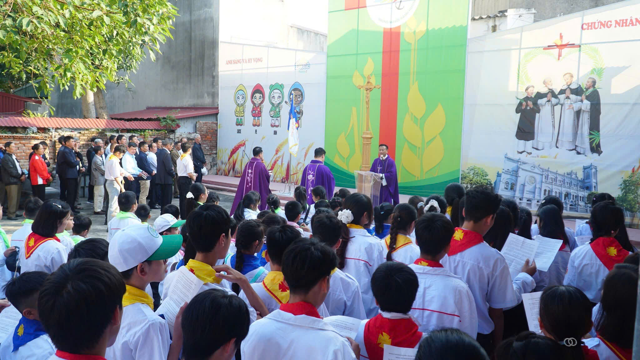 Khởi đầu Thánh lễ là nghi thức rước Thánh Giá Năm Thánh – dấu chỉ của tình yêu và ơn cứu độ. Đẹp biết bao khi chính tại nhà của mình, các em Thiếu Nhi và cộng đoàn cùng bước theo Thánh Giá giữa khuôn viên Đền Thánh Tử đạo. Mỗi bước chân in trên lối mòn của linh địa như là một bước trở về với cội nguồn đức tin. Hình ảnh ấy không chỉ đẹp về mặt hình thức, mà còn đẹp ở chiều sâu thiêng liêng. Các em Thiếu Nhi – thế hệ tương lai của Giáo Hội đang học bài học đầu tiên về việc vác thập giá theo Chúa và về niềm hy vọng không bao giờ tắt. Đó cũng chính là nét đẹp của một Giáo Hội luôn được tiếp nối, canh tân và hướng về thế hệ tương lai.