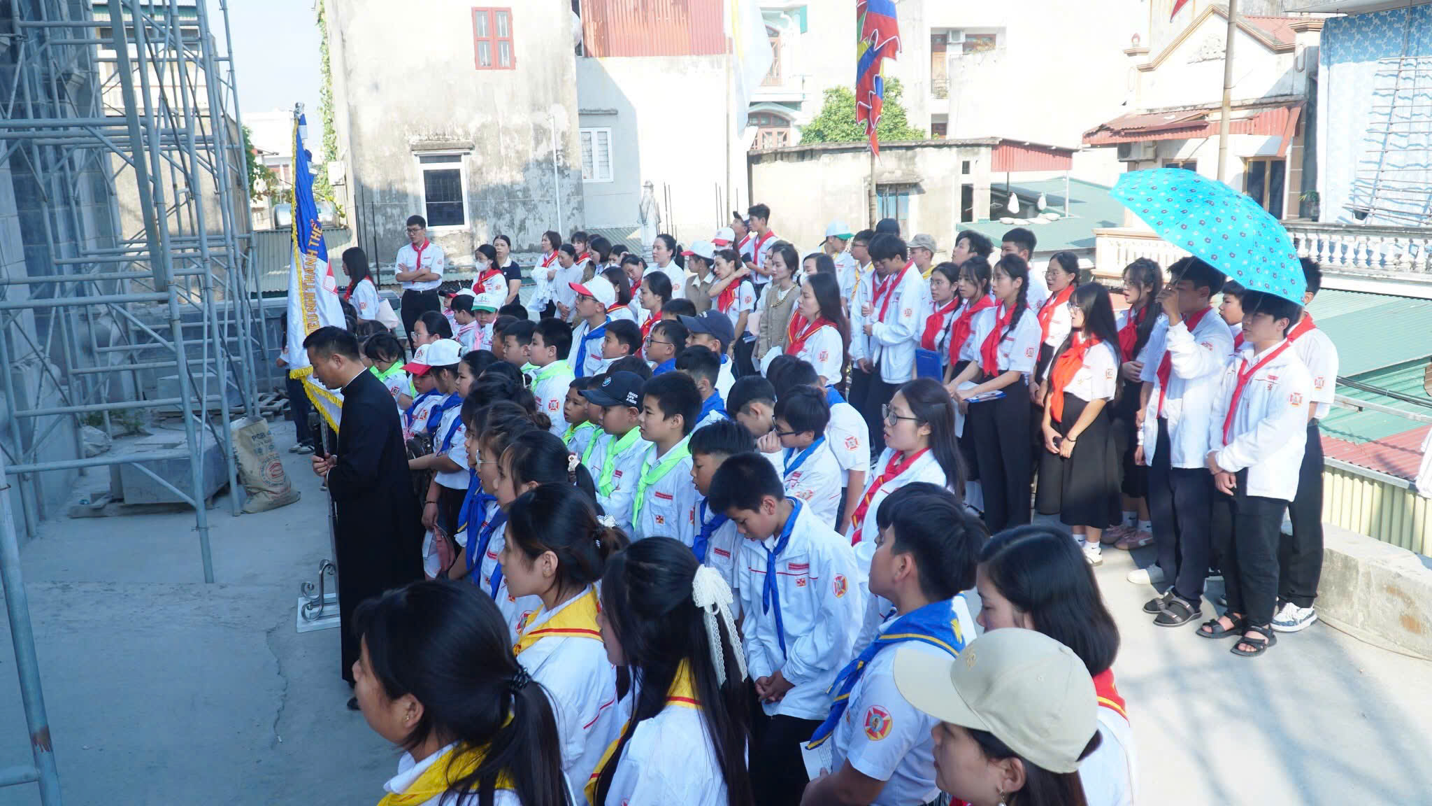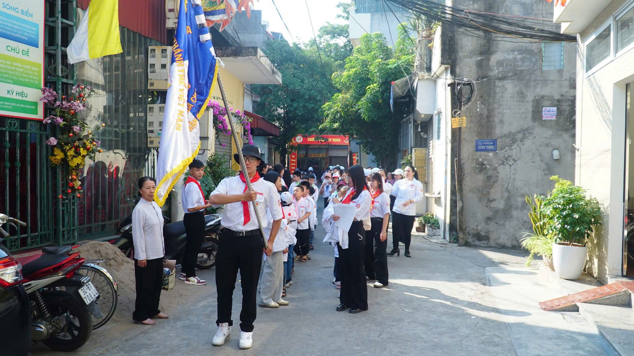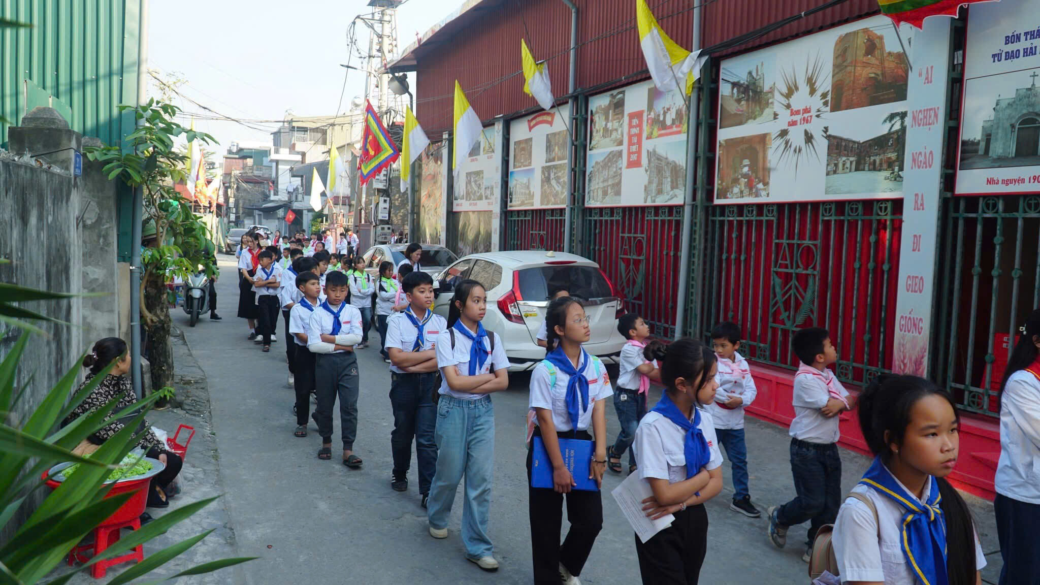 Khởi đầu Thánh lễ là nghi thức rước Thánh Giá Năm Thánh – dấu chỉ của tình yêu và ơn cứu độ. Đẹp biết bao khi chính tại nhà của mình, các em Thiếu Nhi và cộng đoàn cùng bước theo Thánh Giá giữa khuôn viên Đền Thánh Tử đạo. Mỗi bước chân in trên lối mòn của linh địa như là một bước trở về với cội nguồn đức tin. Hình ảnh ấy không chỉ đẹp về mặt hình thức, mà còn đẹp ở chiều sâu thiêng liêng. Các em Thiếu Nhi – thế hệ tương lai của Giáo Hội đang học bài học đầu tiên về việc vác thập giá theo Chúa và về niềm hy vọng không bao giờ tắt. Đó cũng chính là nét đẹp của một Giáo Hội luôn được tiếp nối, canh tân và hướng về thế hệ tương lai.