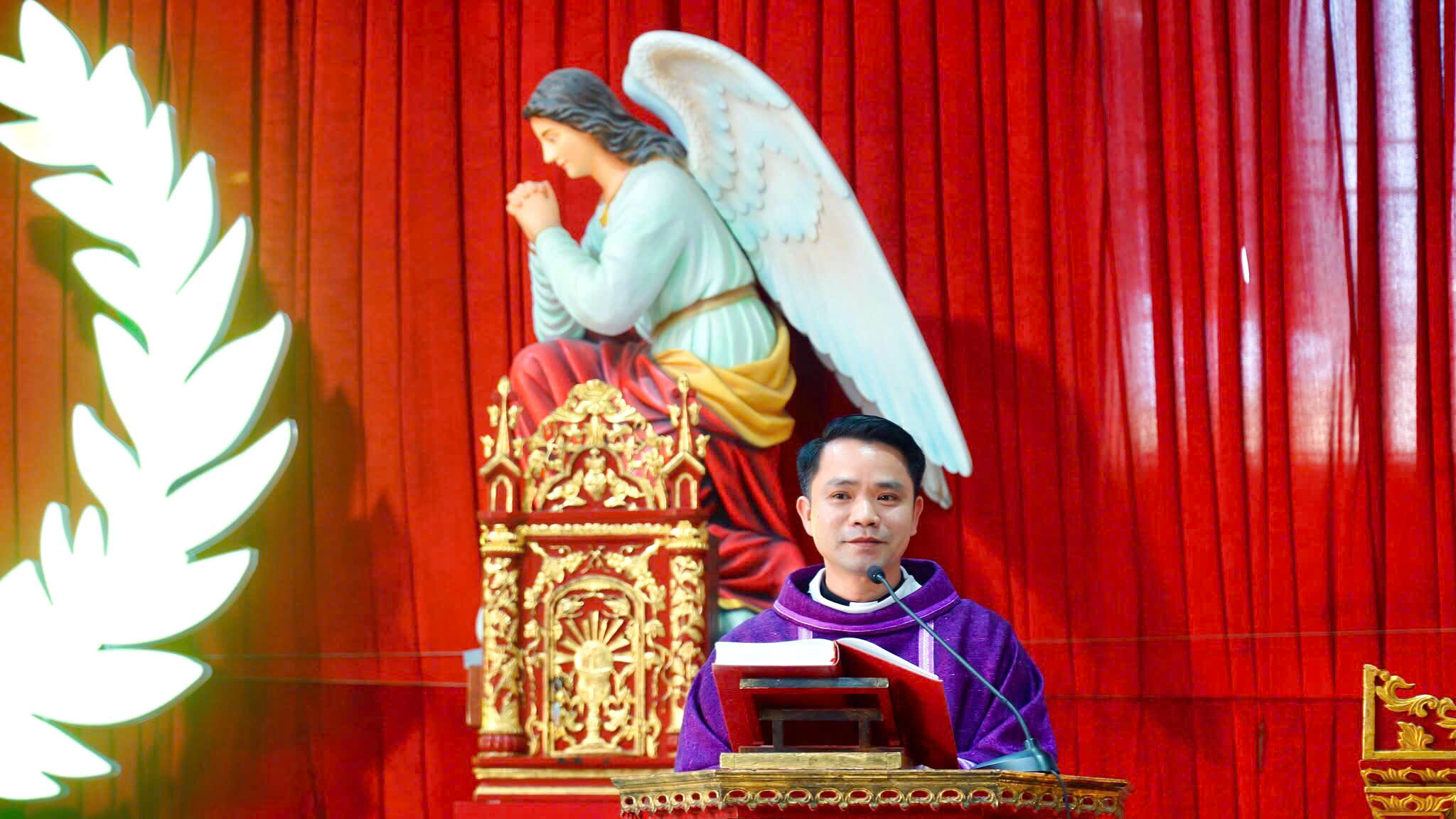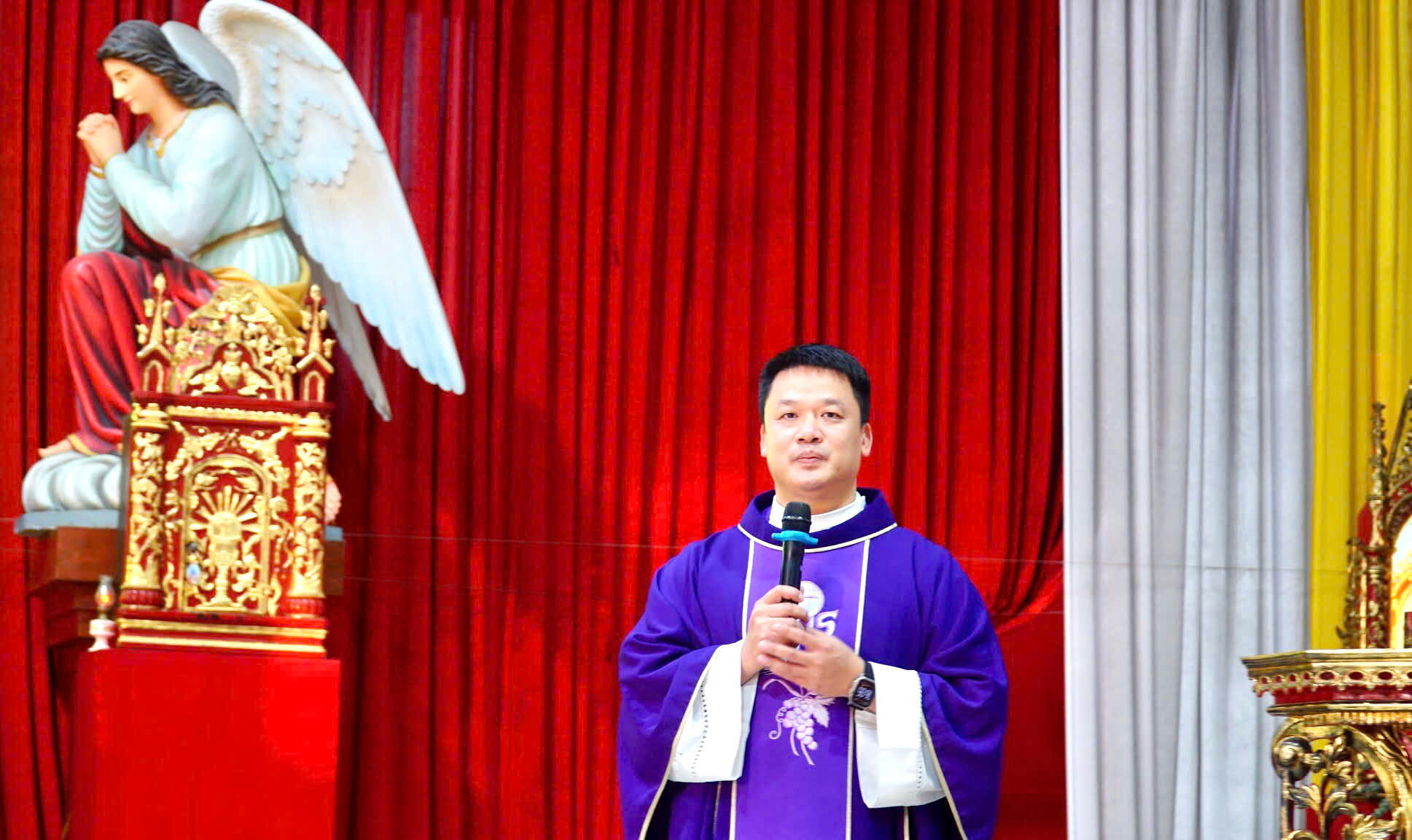 Trong bài giảng, với ý tưởng Đức Giêsu Kitô luôn sống mãi trong đời sống người tín hữu. Cha Phụ tá Phêrô đã mời gọi cộng đoàn, cách riêng là các em Thiếu Nhi hãy noi gương cha Phêrô Nguyễn Viết Giản và các Thánh Tử Đạo : sống tỉnh thức trước sự hiện diện của Chúa. Nếu như các vị tử đạo đã luôn ý thức sự hiện diện của Chúa trong từng khoảnh khắc, từng biến cố của đời sống thì các em cũng được mời gọi sống đạo đức, thánh thiện hơn mỗi ngày vì Chúa luôn ở bên các em. Ngài hy vọng và cầu chúc cuộc hành hương hôm nay sẽ giúp các em nuôi dưỡng niềm hy vọng và can đảm làm chứng cho Chúa giữa đời như các vị tử đạo năm xưa. Để rồi từ linh địa thánh thiêng này, một ngọn lửa đức tin mới sẽ được thắp sáng và trao vào tay thế hệ trẻ – những người sẽ tiếp nối, gìn giữ và phát triển kho tàng đức tin của Giáo xứ.