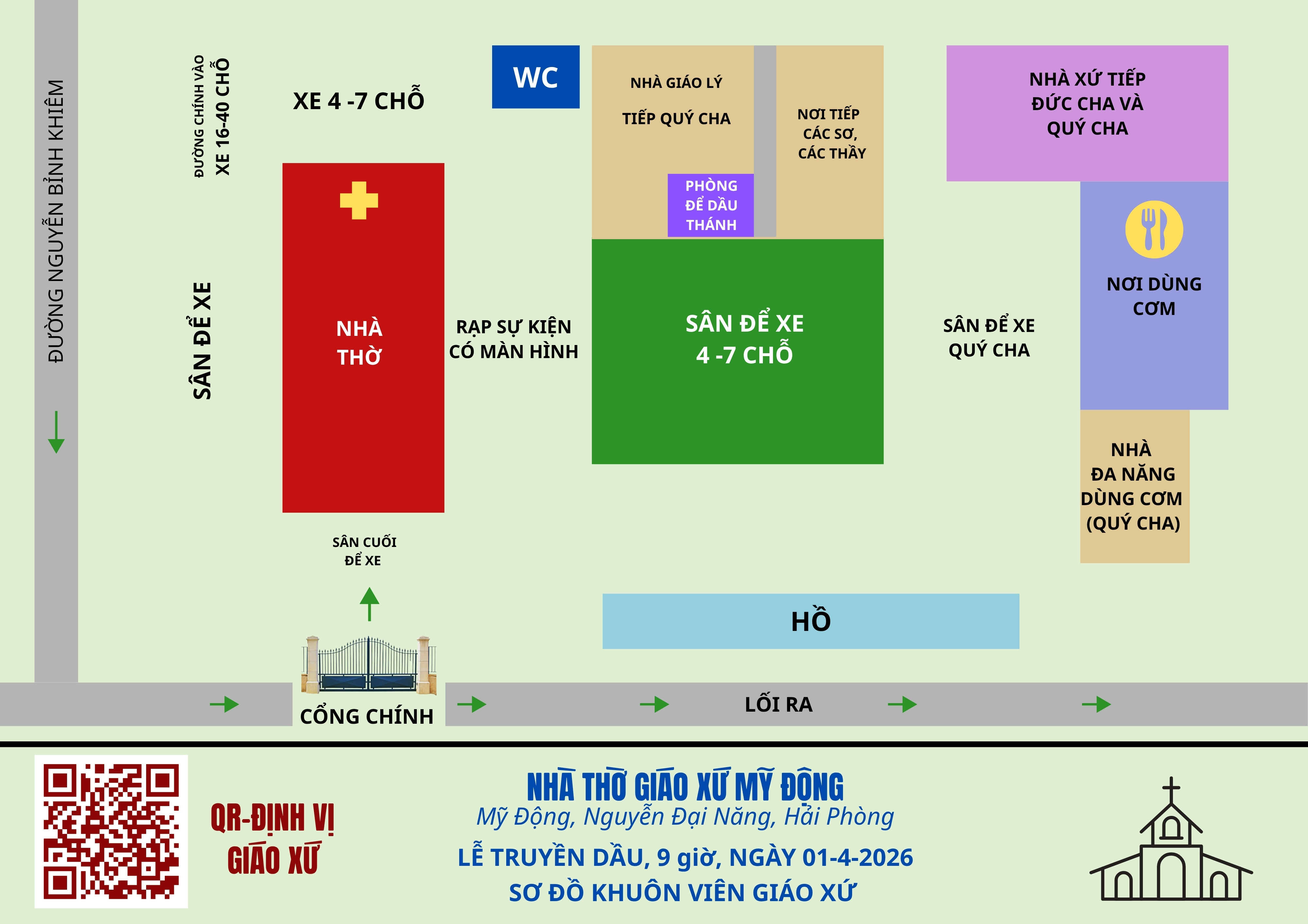 Trong những ngày vừa qua, và đặc biệt trong ngày 30.3.2026, Cha xứ, quý Cha cùng cộng đoàn dân Chúa Giáo xứ Mỹ Động đã tích cực chung tay thực hiện công tác chuẩn bị cho ngày lễ trọng đại của Giáo phận. Nhiều hạng mục đã được khẩn trương hoàn thiện như: dựng phông bạt phục vụ sự kiện, bố trí sơ đồ hướng dẫn, sắp xếp vị trí chỗ ngồi trong nhà thờ, cũng như tổ chức các tuyến xe di chuyển nhằm đón tiếp quý Đức Cha, quý Cha, quý Tu sĩ nam nữ và cộng đoàn tham dự cách chu đáo, trật tự.