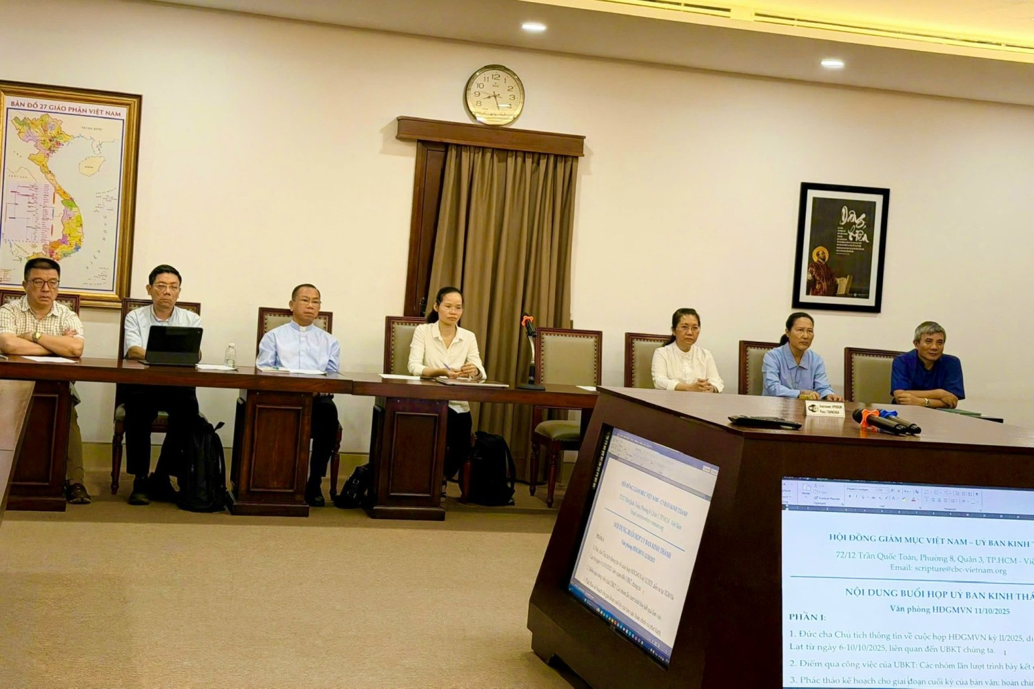 Hiện diện trong cuộc họp có Đức cha Vincent Nguyễn Văn Bản, Giám mục Giáo phận Hải Phòng, Chủ tịch Ủy ban Kinh Thánh; cha Giuse Đào Nguyên Vũ, Chánh Văn phòng HĐGMVN; cùng hai mươi ba thành viên trong tổng số năm mươi thành viên của Ủy ban.