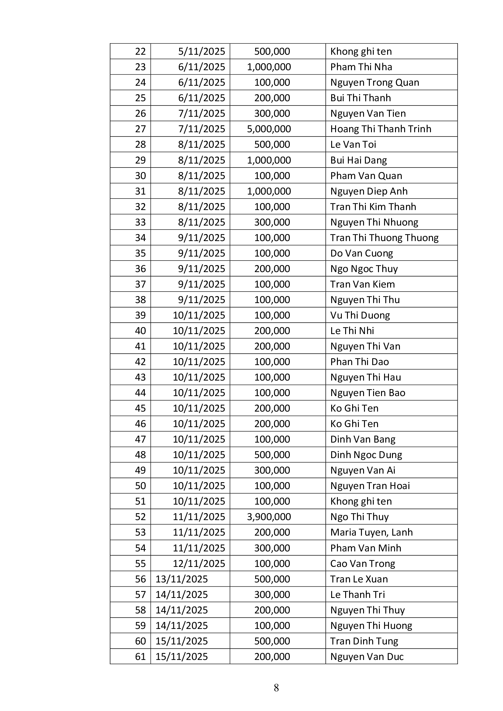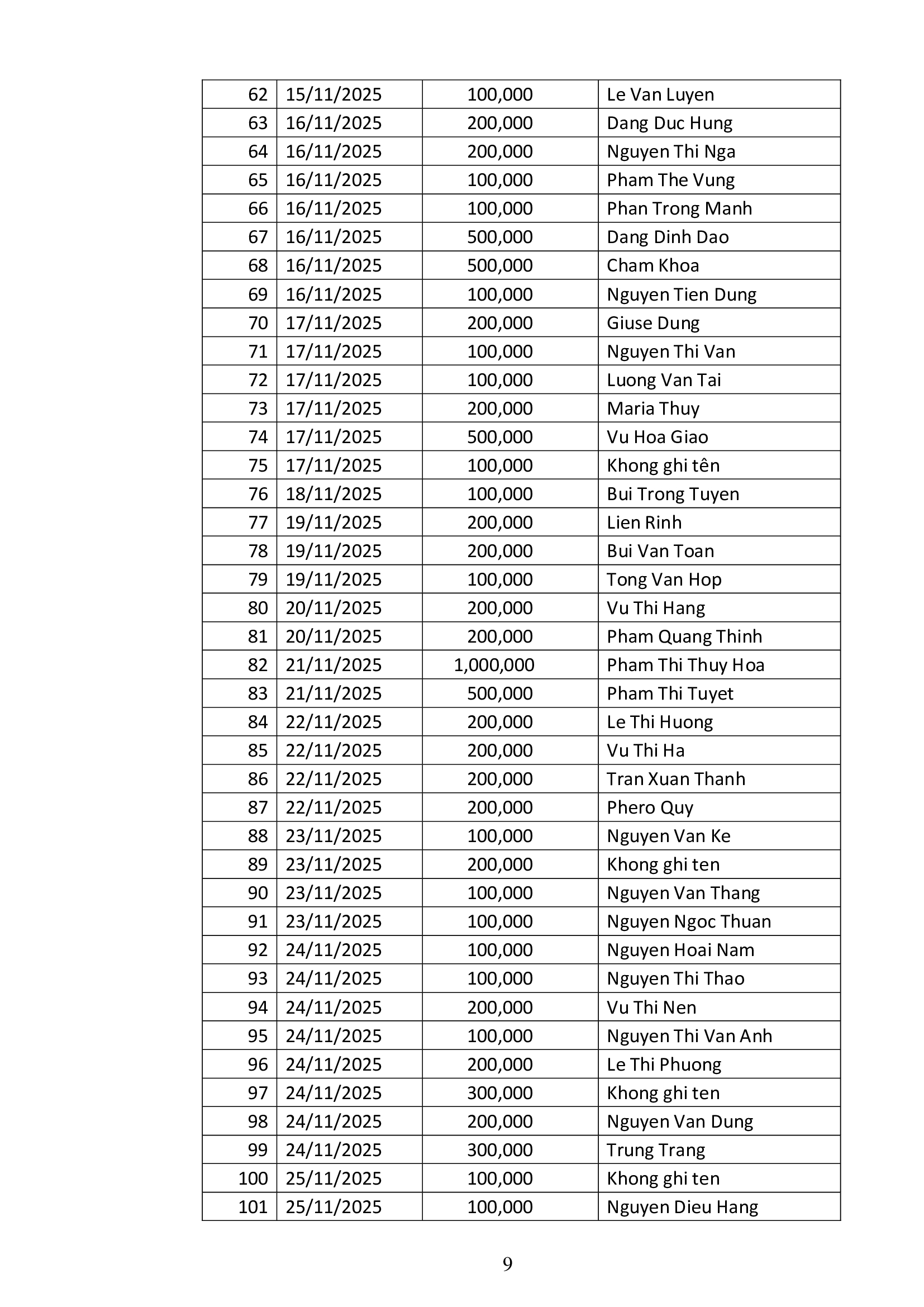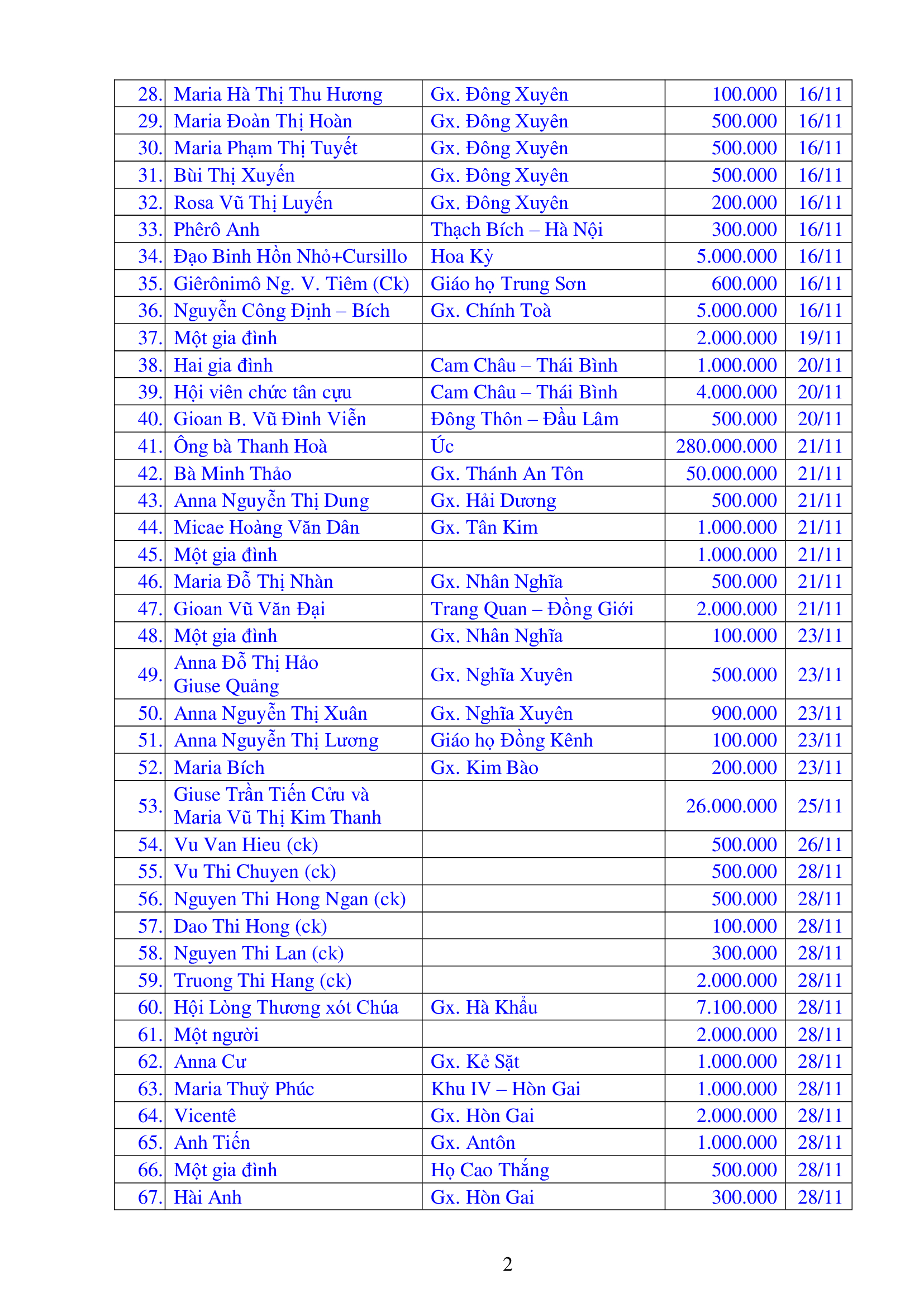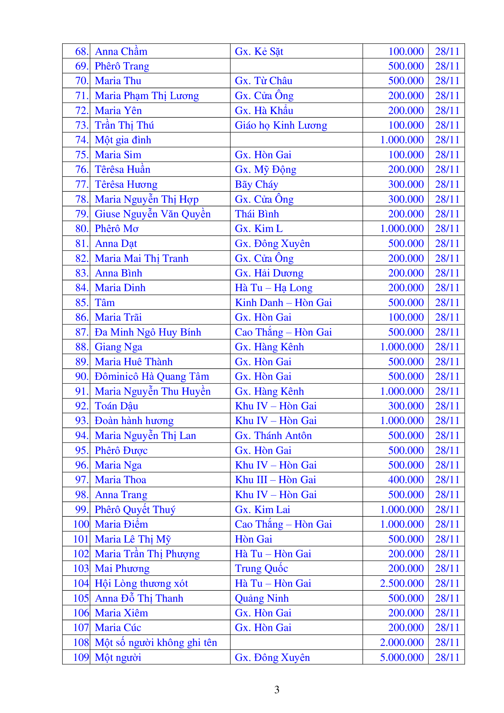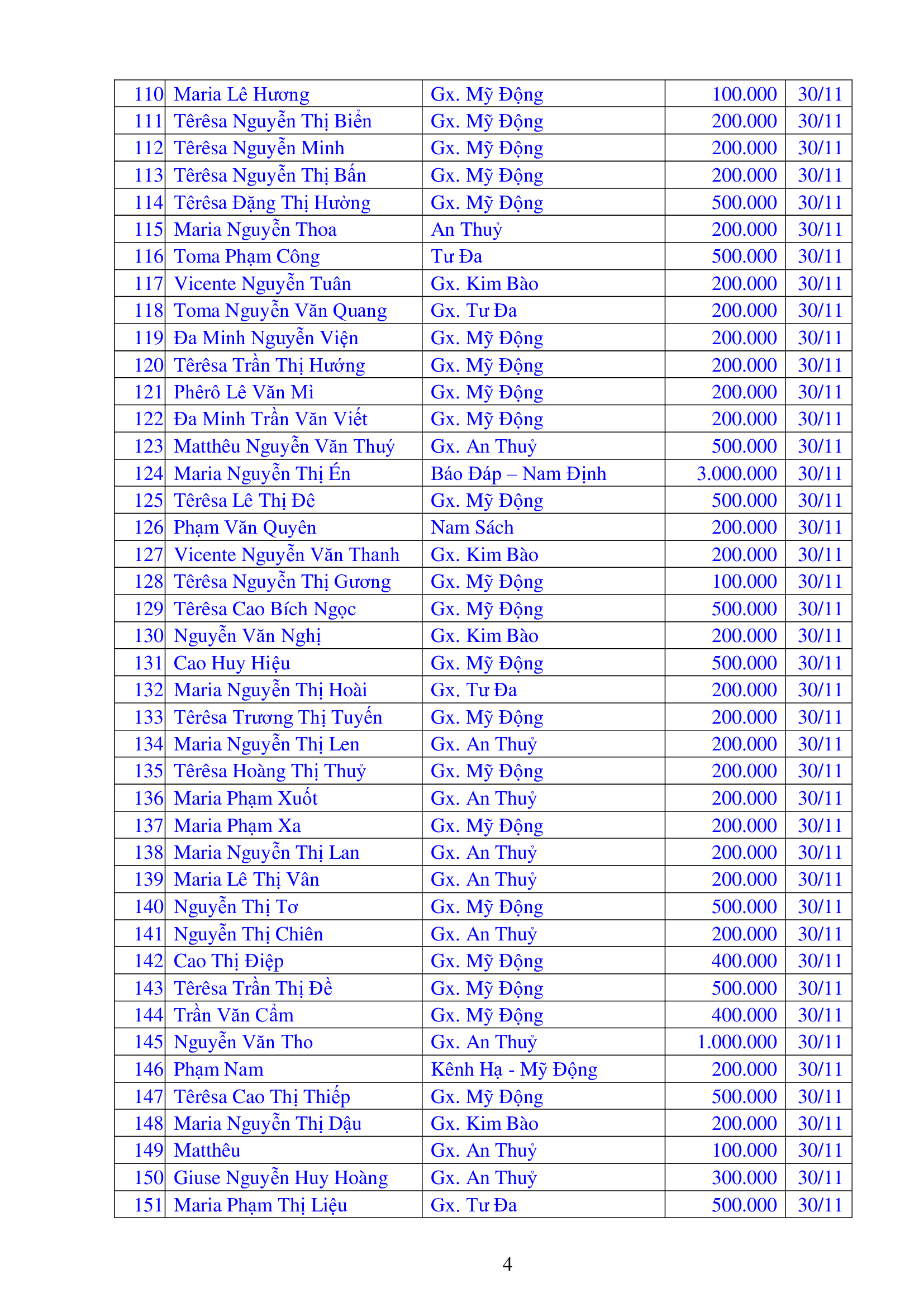 Danh sách công đức xây dựng Đền Thánh Tử Đạo Hải Dương - Tháng 11 năm 2025