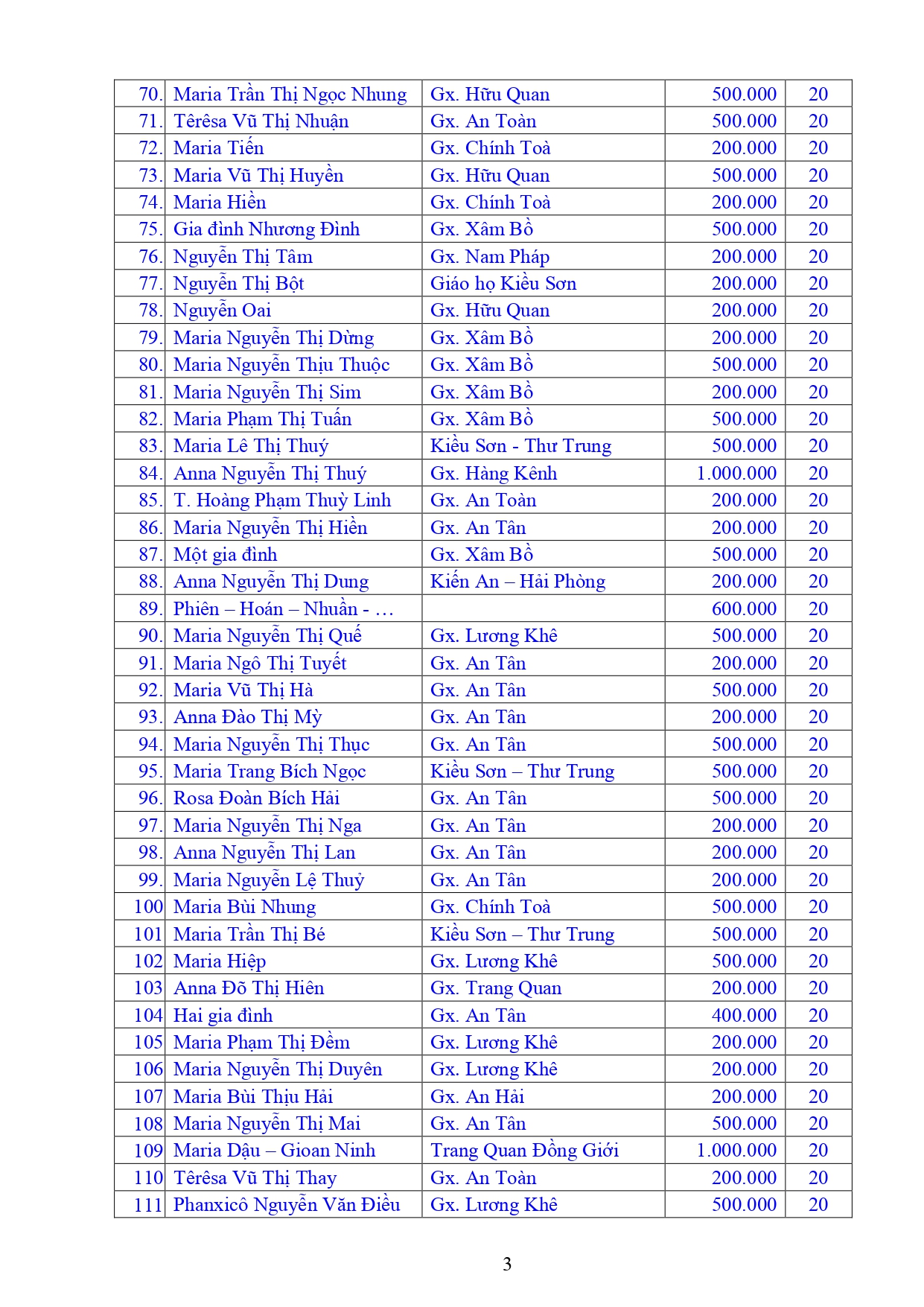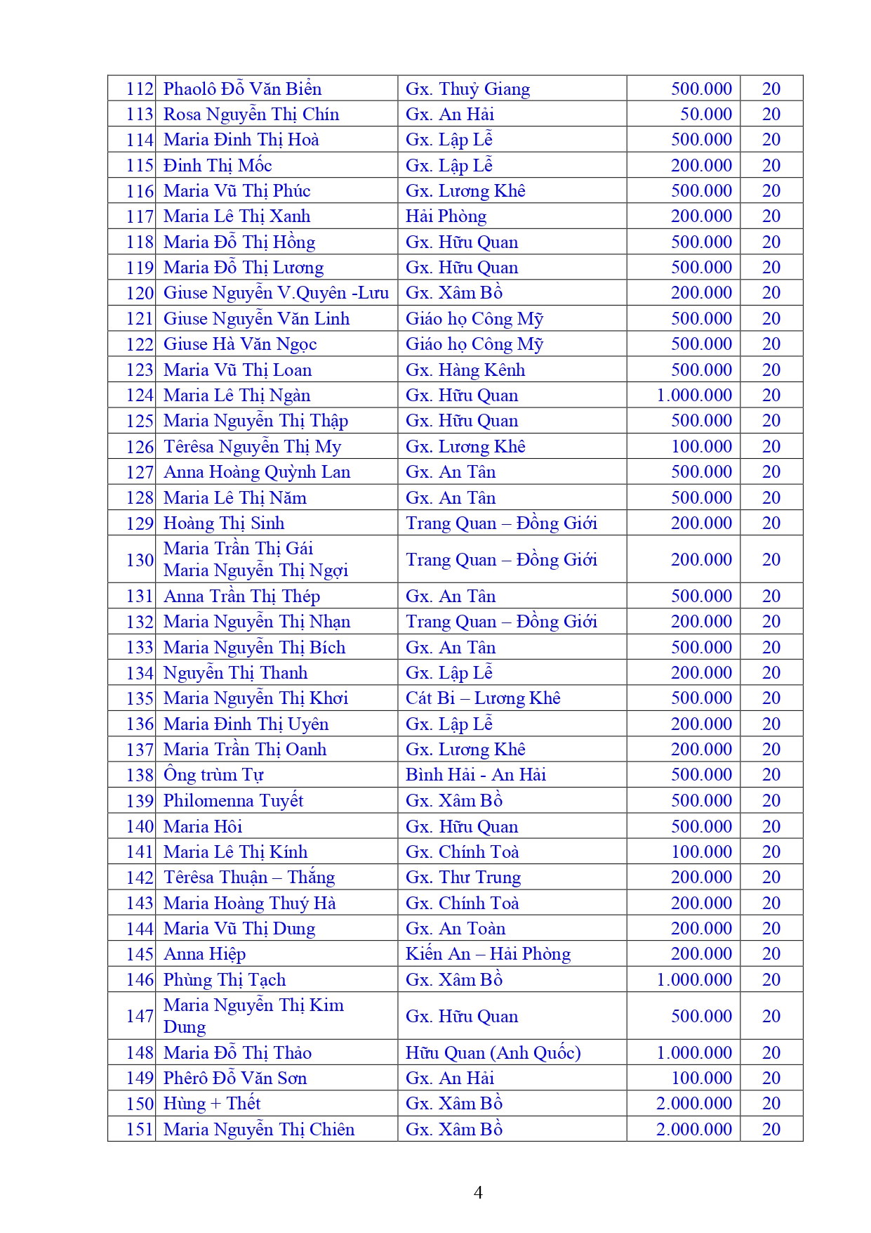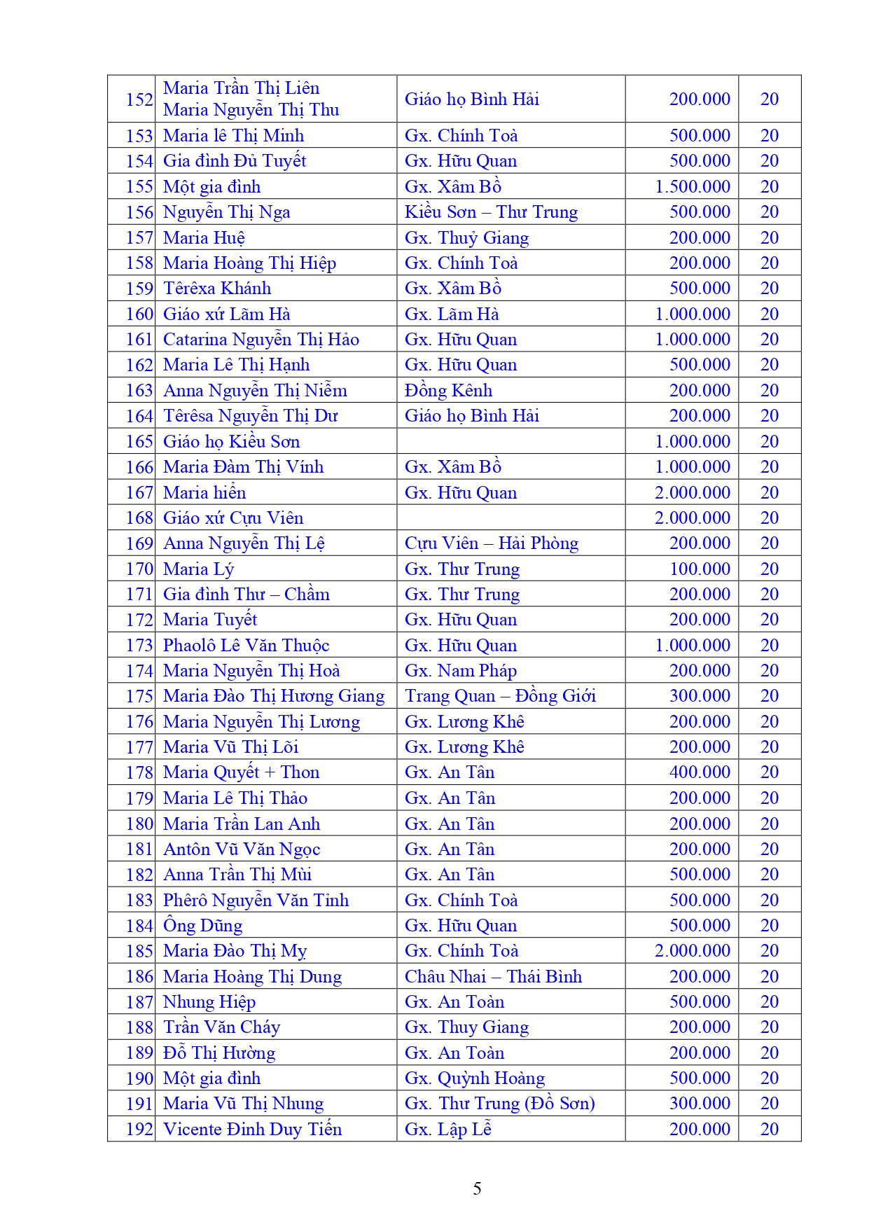 Danh sách Công đức xây dựng Đền Thánh Tử Đạo Hải Dương - Tháng 01 năm 2026