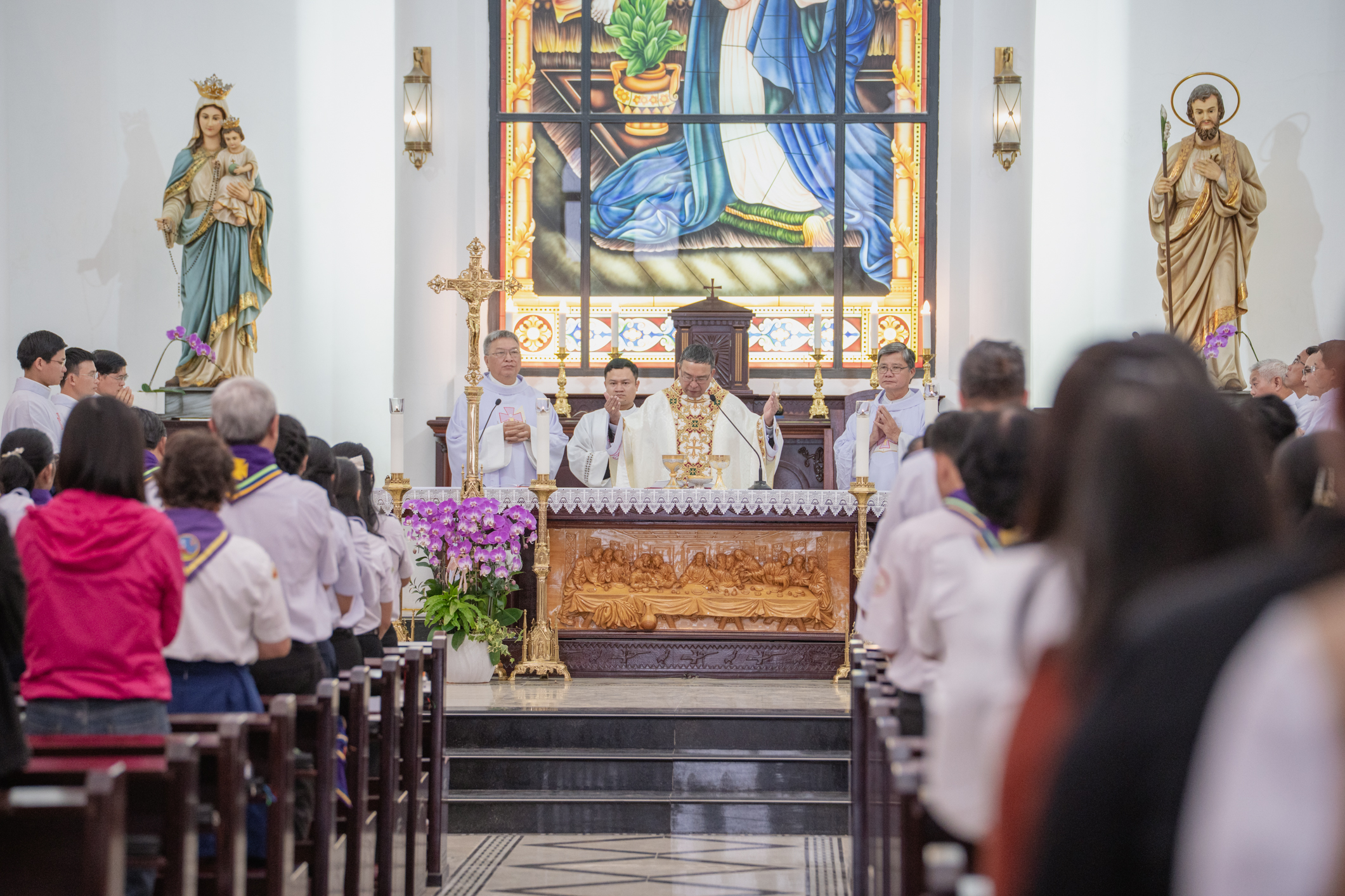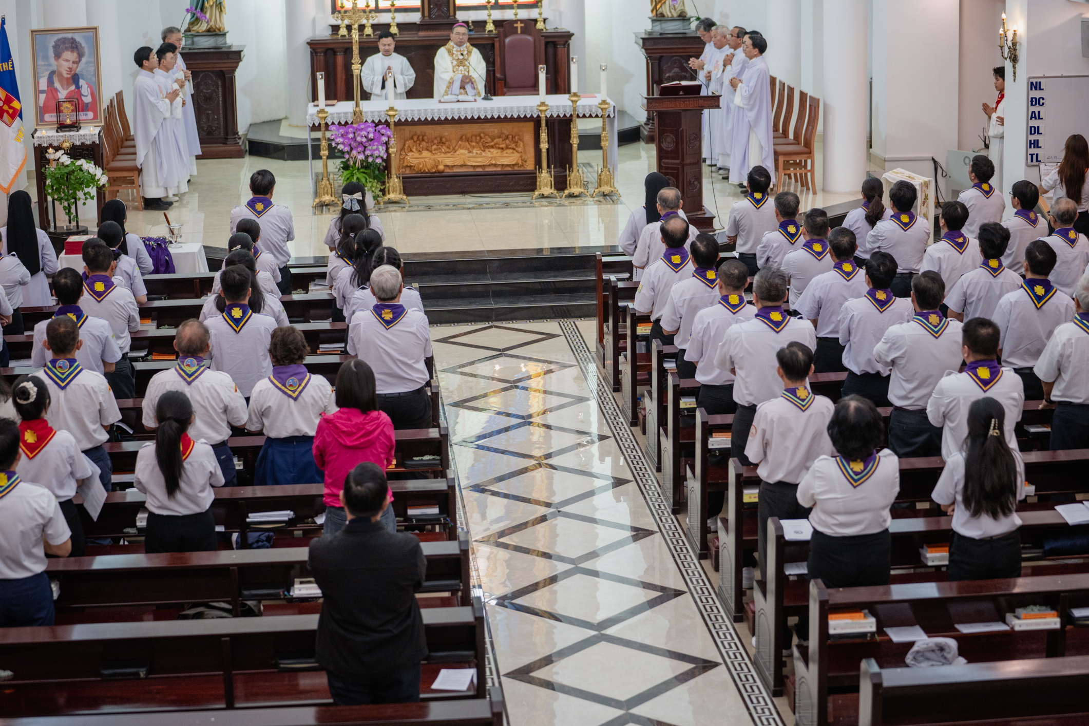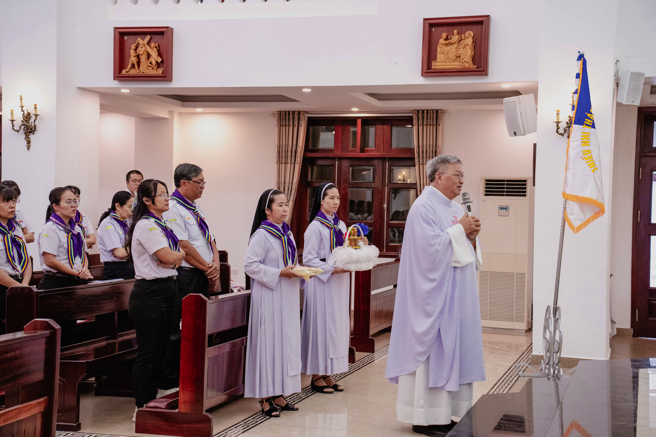 Thánh lễ do Đức cha Vinh Sơn chủ sự, với sự hiện diện của quý Cha trong Ban Nghiên huấn Tổng Liên đoàn Thiếu nhi Thánh Thể Việt Nam, quý Cha tại Trung tâm Mục vụ, quý Cha trong Liên đoàn TNTT Chúa Chiên Lành Giáo phận Hải Phòng, quý Huynh trưởng – Giáo lý viên cùng đông đảo cộng đoàn dân Chúa hiệp dâng.