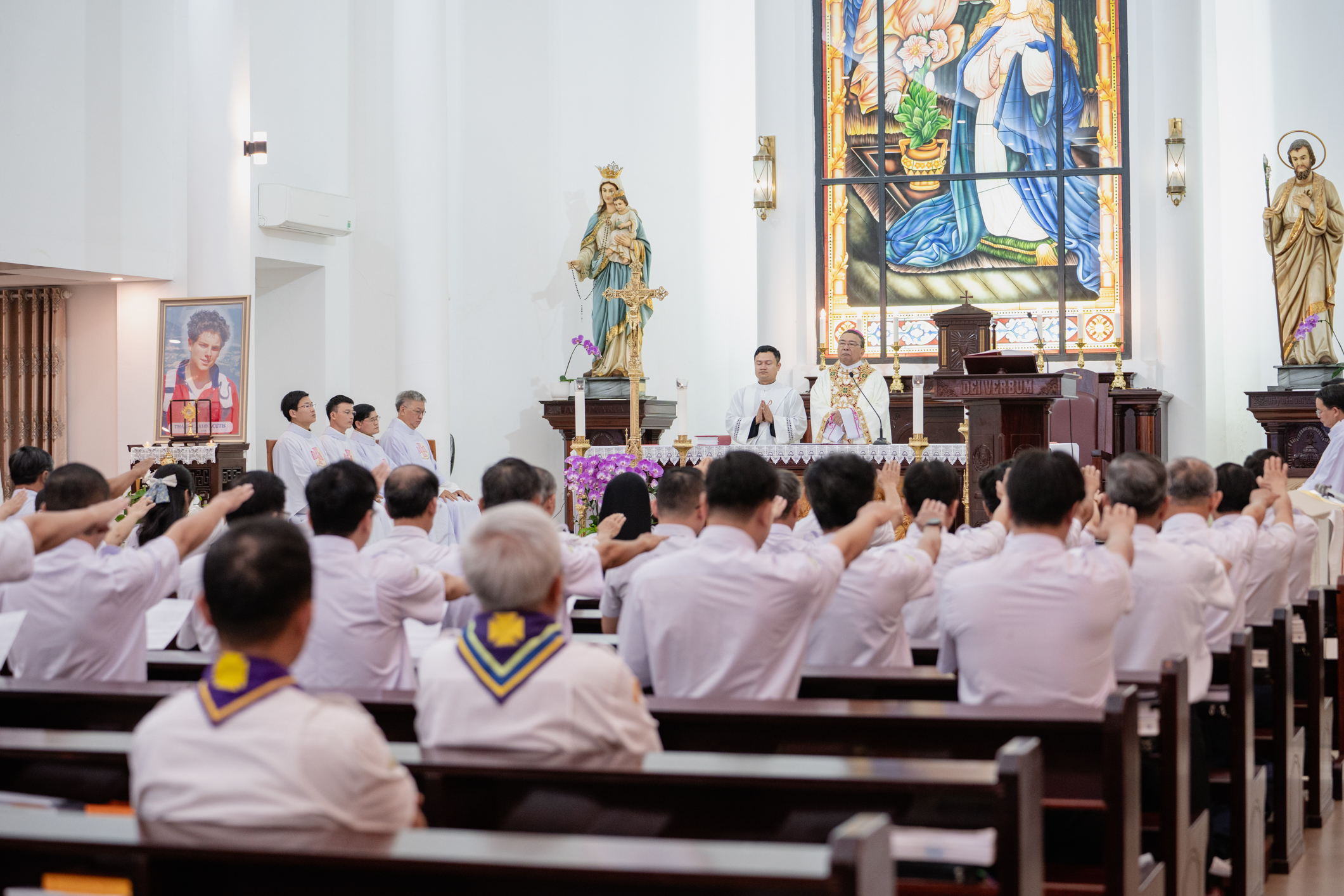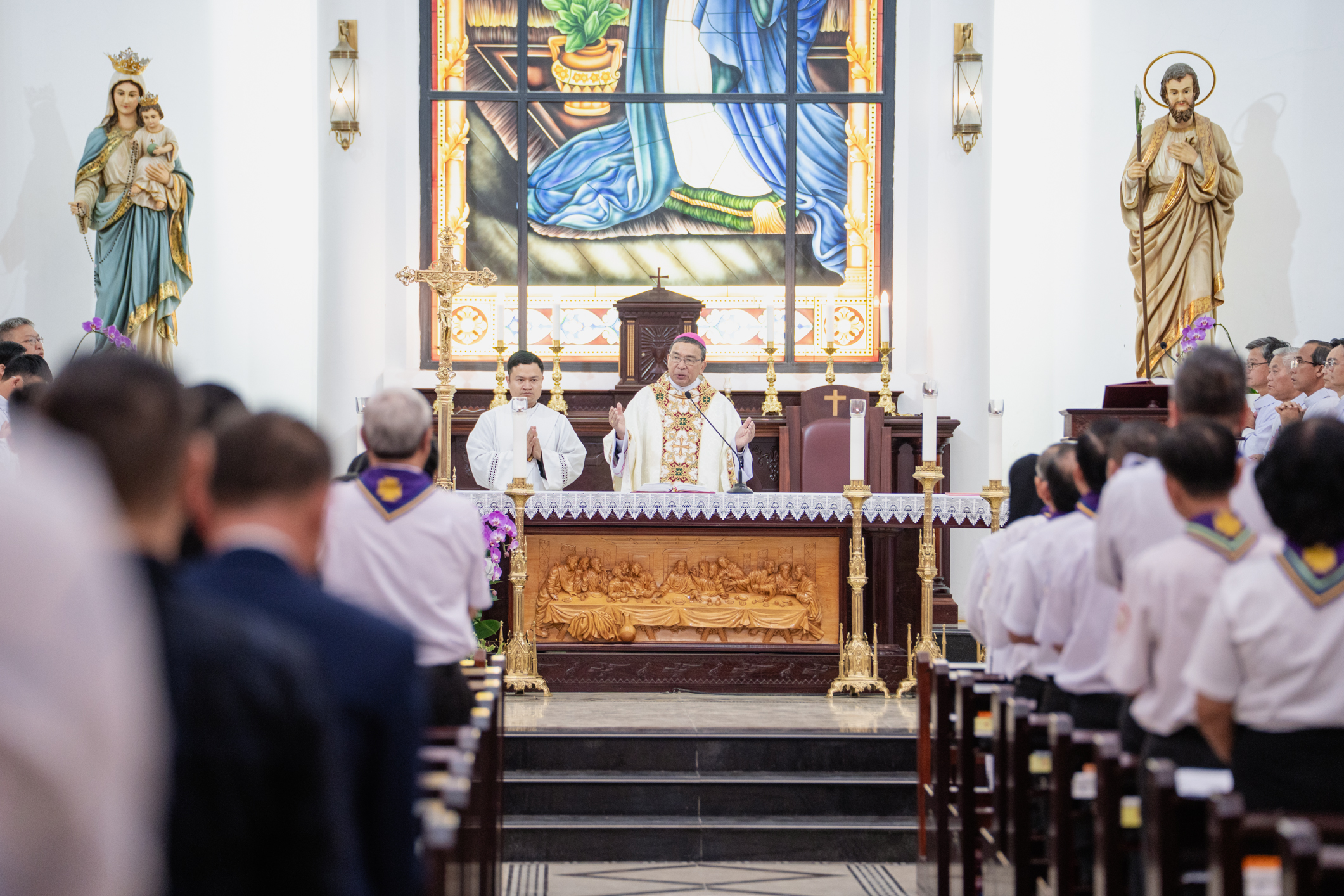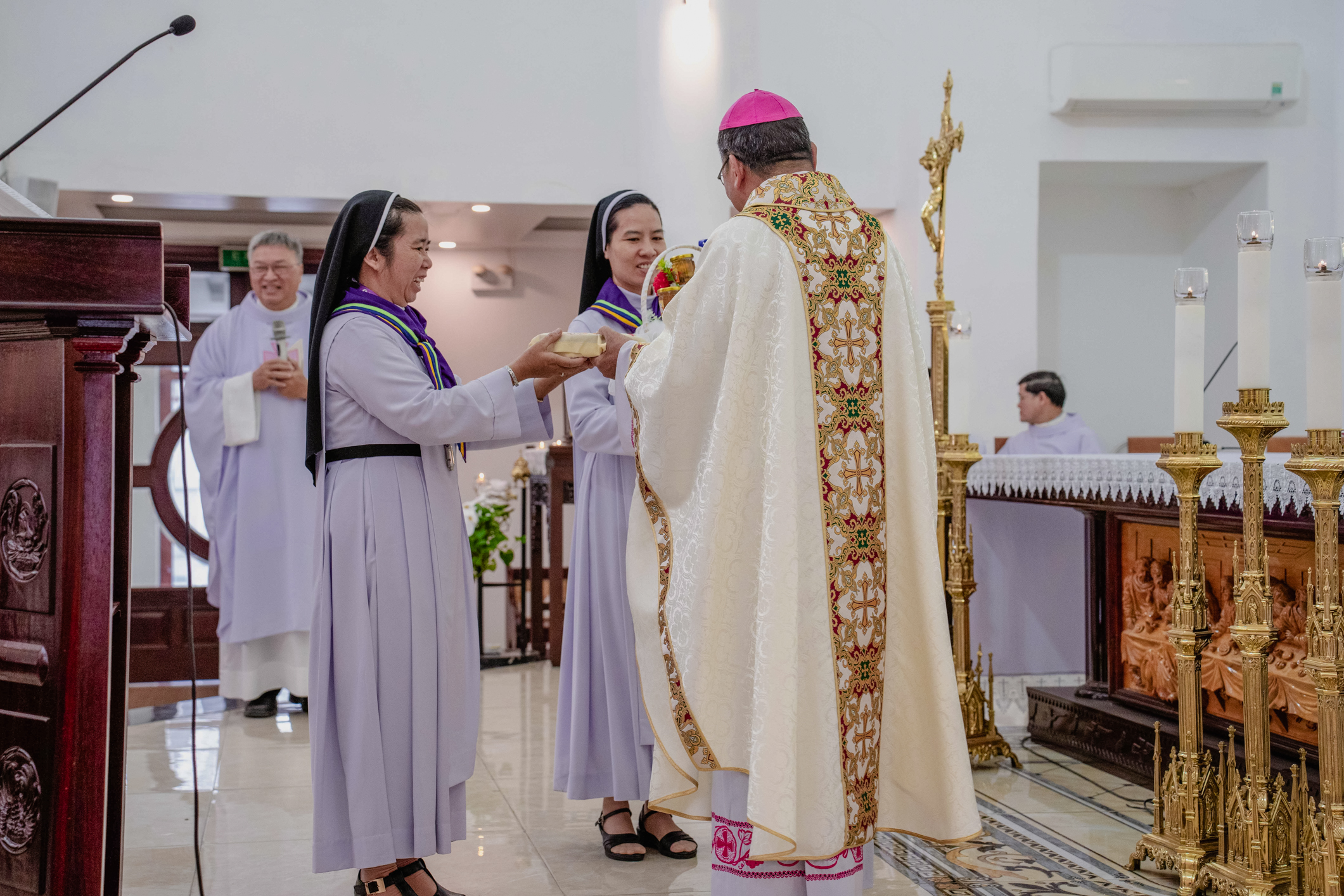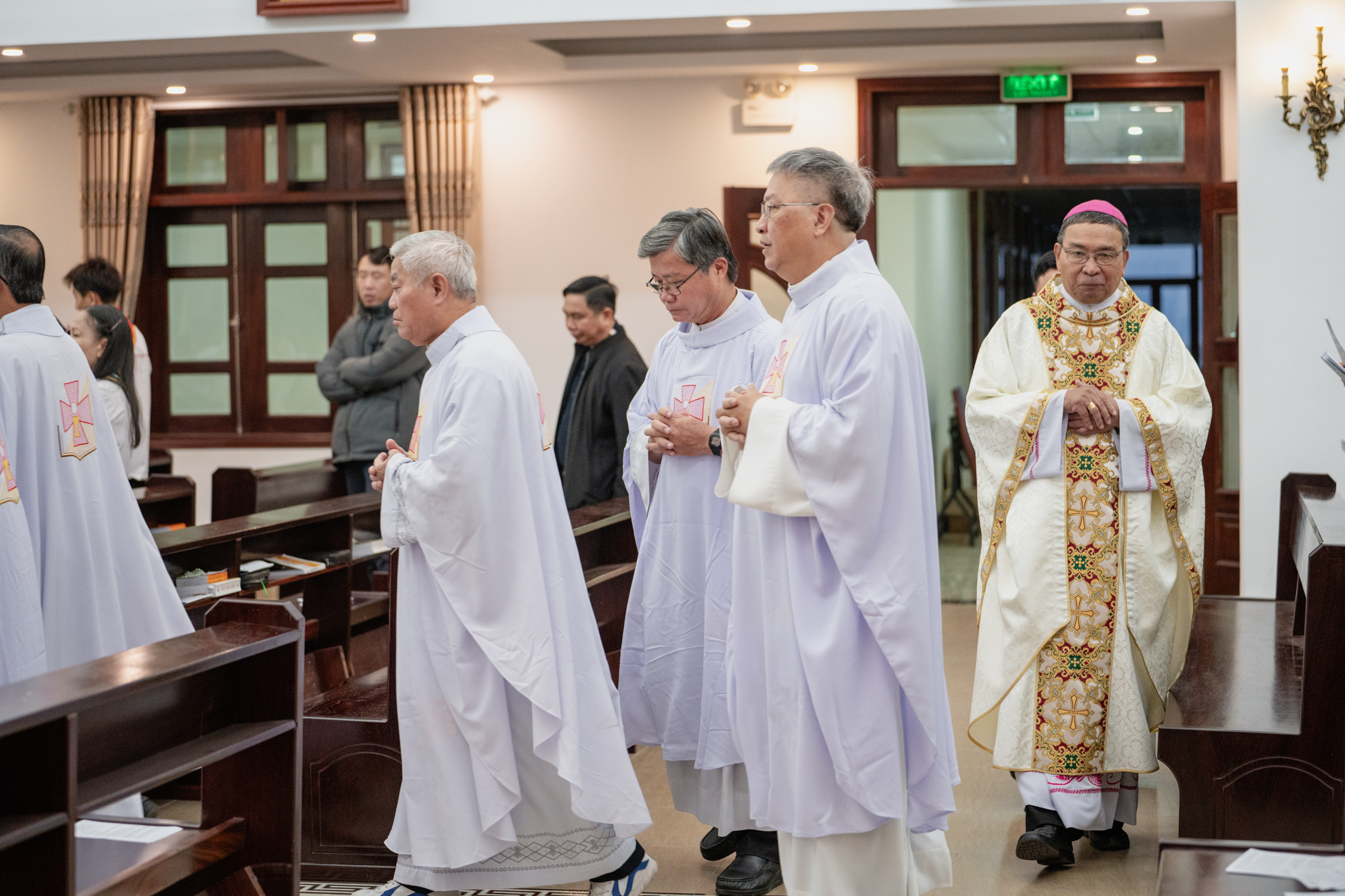 Thánh lễ do Đức cha Vinh Sơn chủ sự, với sự hiện diện của quý Cha trong Ban Nghiên huấn Tổng Liên đoàn Thiếu nhi Thánh Thể Việt Nam, quý Cha tại Trung tâm Mục vụ, quý Cha trong Liên đoàn TNTT Chúa Chiên Lành Giáo phận Hải Phòng, quý Huynh trưởng – Giáo lý viên cùng đông đảo cộng đoàn dân Chúa hiệp dâng.