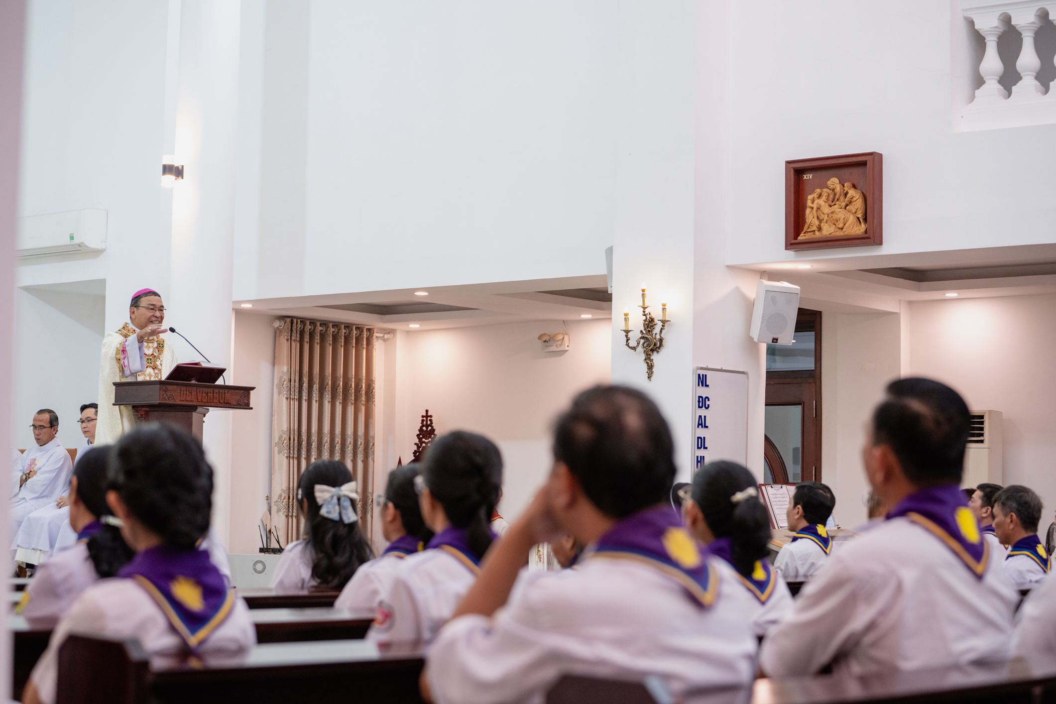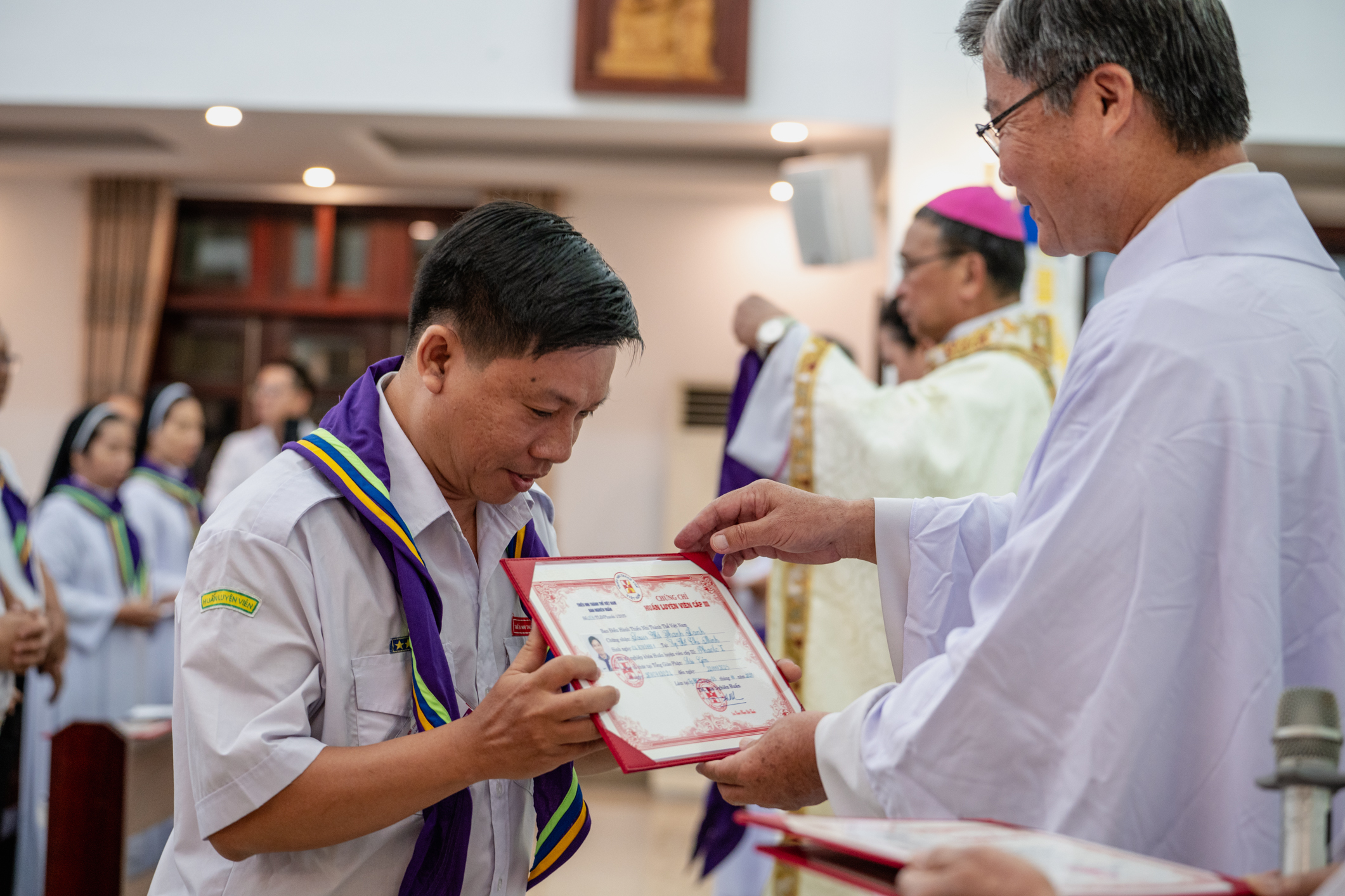 Sau bài giảng, nghi thức tuyên hứa của 41 Huấn luyện viên cấp III đã được long trọng cử hành dưới sự chủ sự của Đức Cha Giáo phận. Kể từ giây phút ấy, quý Huấn luyện viên chính thức bước vào vai trò mới – trở thành những người đào tạo mẫu mực theo gương Thầy Giêsu.