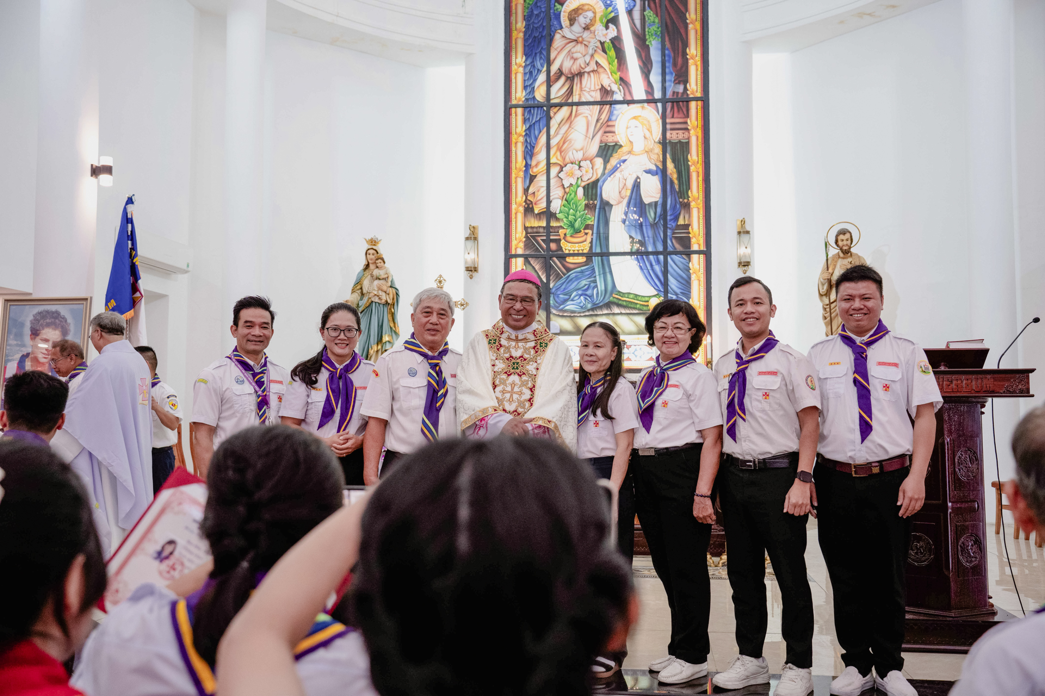 Trước khi kết thúc Thánh lễ, Cha Giuse Phạm Đức Tuấn – Tổng Tuyên úy Liên đoàn TNTT Việt Nam, đại diện bày tỏ tâm tình tri ân Đức Cha Vinh Sơn, quý Cha và toàn thể Giáo phận Hải Phòng. Ngài nhắc lại dấu ấn khởi đầu từ thời Đức Tổng Giuse Vũ Văn Thiên và nay được tiếp nối bởi Đức Cha Vinh Sơn – như một “người cha đỡ đầu” của Phong trào. Cha Tổng Tuyên úy cũng gửi lời cảm ơn sâu sắc tới Cha Giám đốc Trung tâm Mục vụ Giuse Phạm Cao Đỉnh, Cha Giuse Vũ Văn Thìn – Đặc trách TNTT Giáo phận, cùng toàn thể quý Cha, quý Thầy, quý Dì và cộng đoàn đã luôn yêu thương, đồng hành và cầu nguyện.