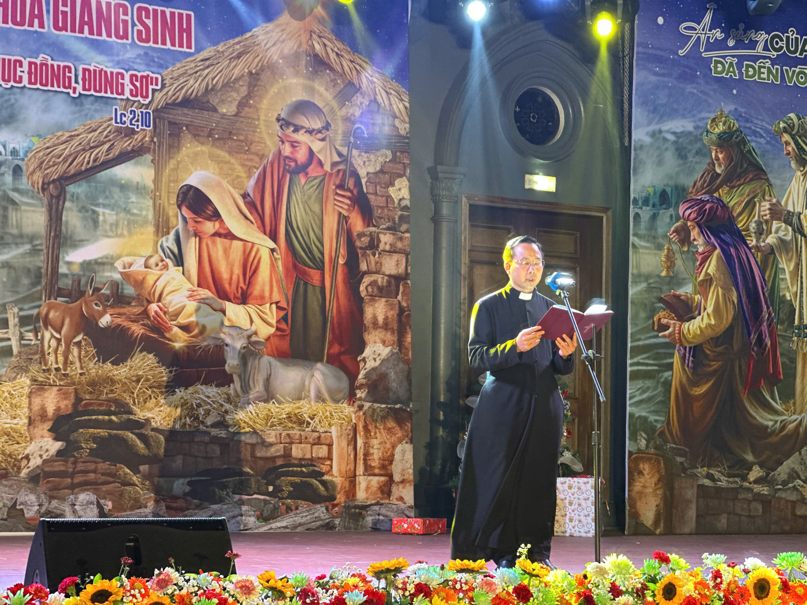 Phát biểu khai mạc, cha xứ Micae Nguyễn Hữu Báu nhắn nhủ cộng đoàn hãy mạnh mẽ sống đức tin. Cha nhấn mạnh rằng sự kiện Ngôi Hai Thiên Chúa nhập thể không chỉ là niềm vui riêng của người Công giáo, mà là “niềm vui cho toàn dân”. Người là Hoàng tử Hòa bình, là Vua công chính đã đến để cứu độ toàn thể nhân loại.