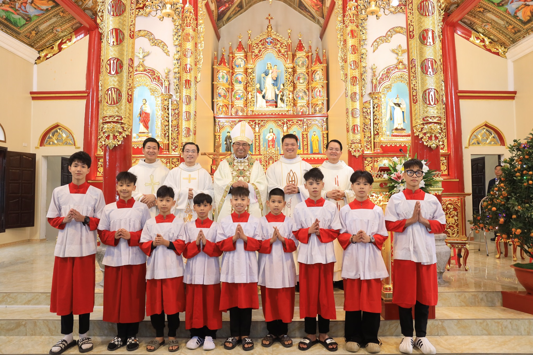 Thánh Lễ khép lại trong niềm hân hoan. Đức Cha cùng quý Cha và cộng đoàn chụp hình lưu niệm, ghi dấu một ngày đầu Xuân đậm tình hiếu thảo và hiệp thông.