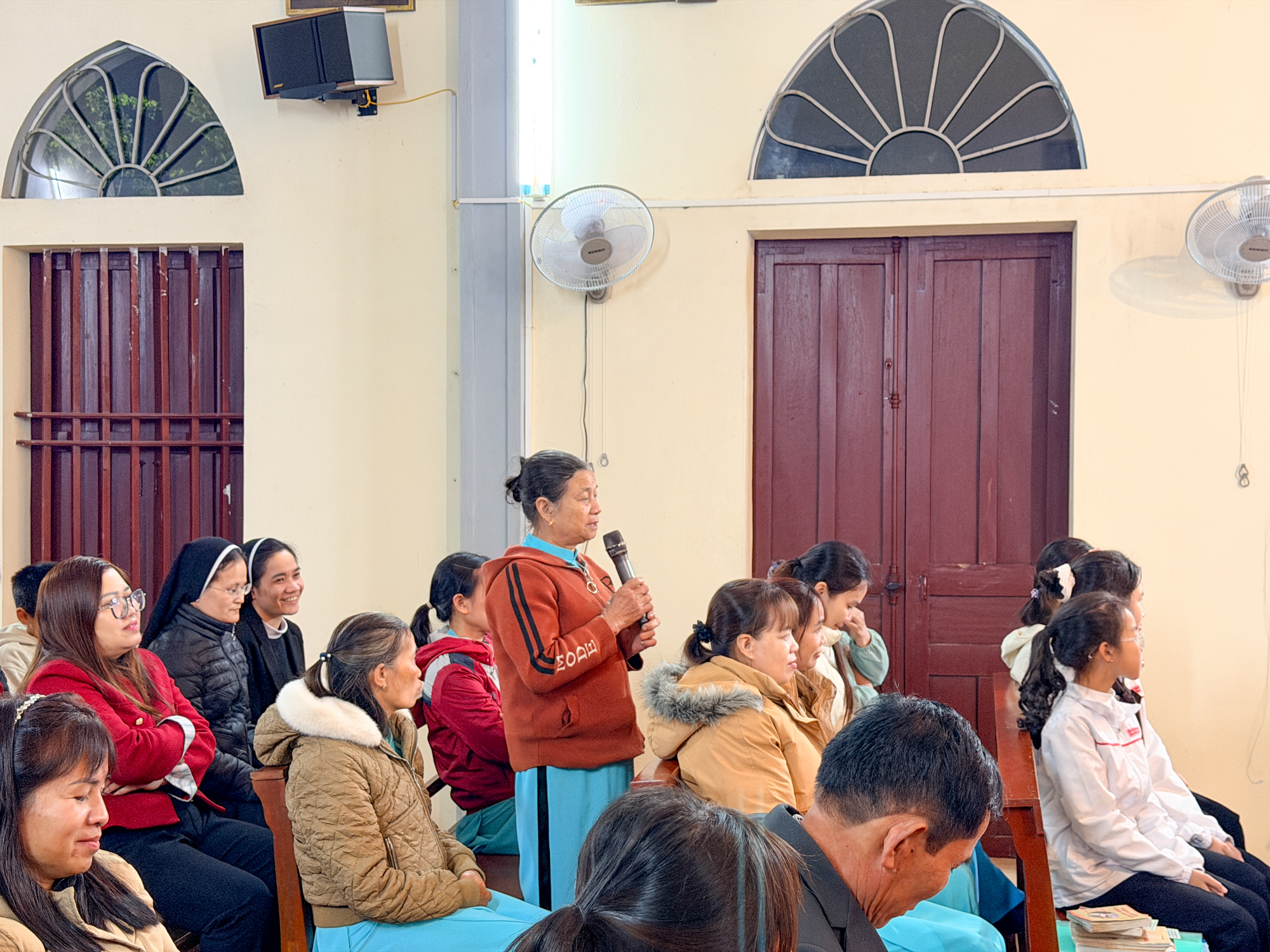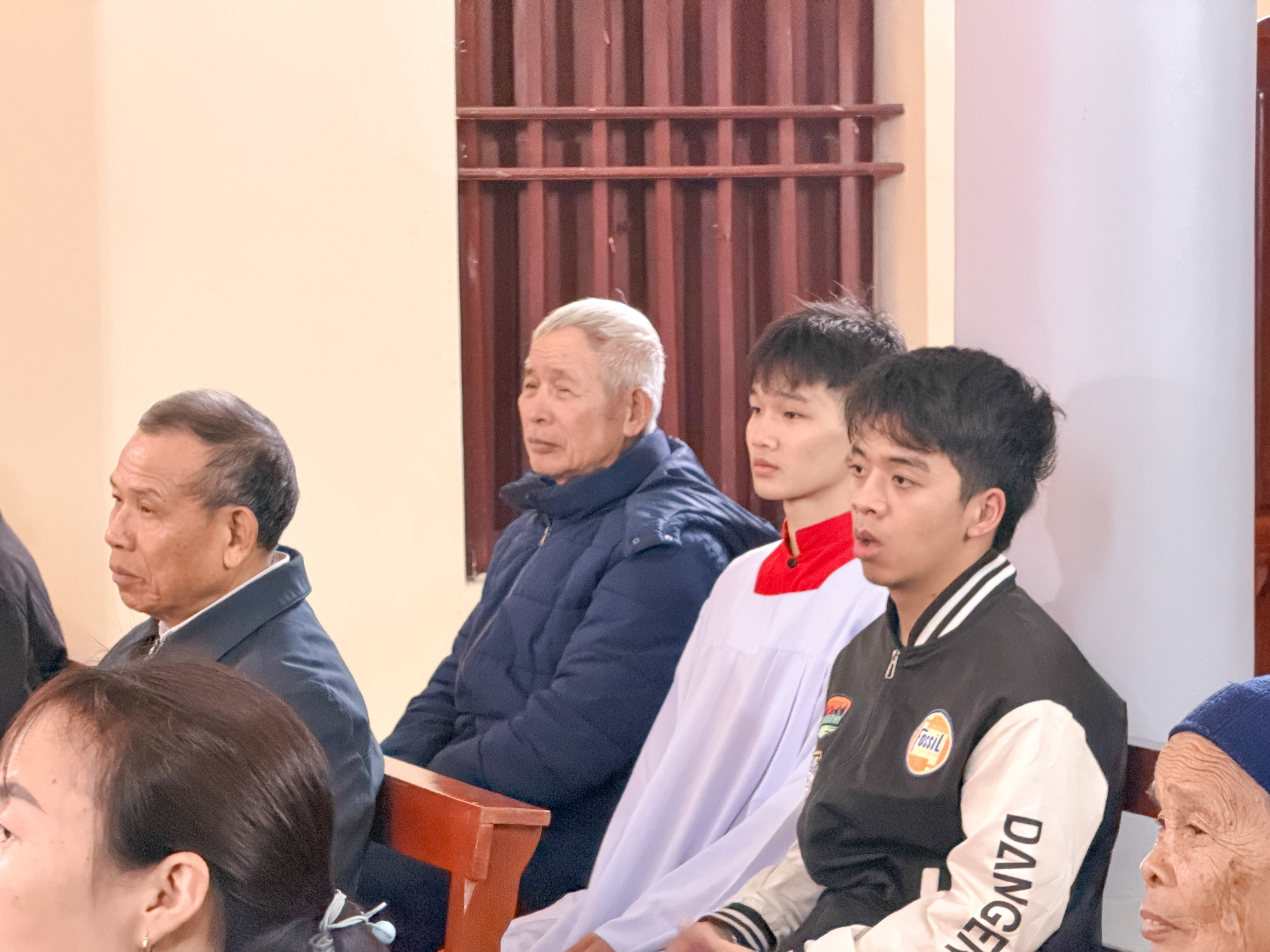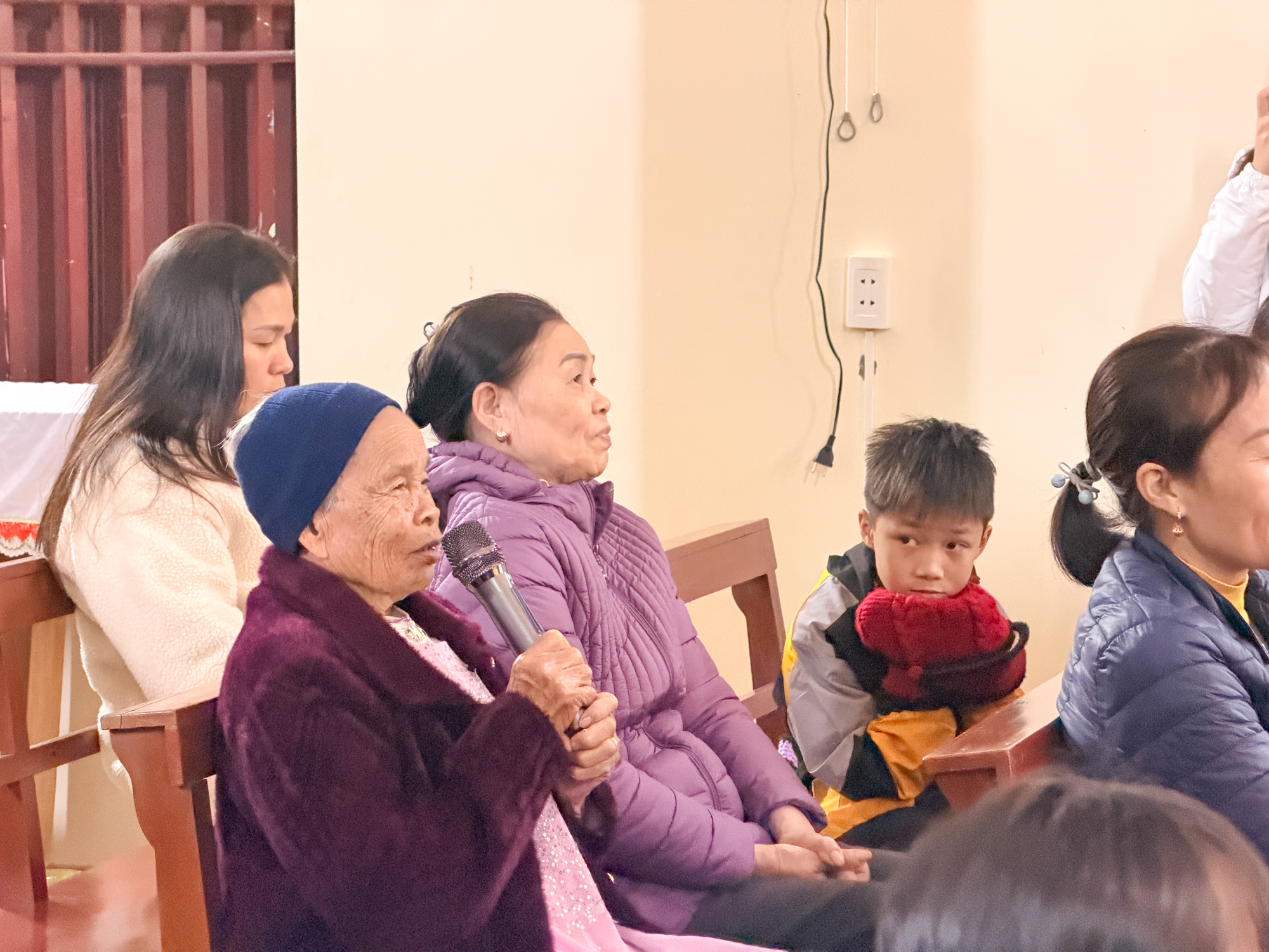 Trước Thánh lễ, Đức Cha đã dành thời gian gặp gỡ, thăm hỏi bà con giáo dân trong nhà thờ. Với tâm tình của người mục tử, Ngài lắng nghe những chia sẻ đơn sơ nhưng chan chứa đức tin của cộng đoàn – những người con bé nhỏ mà trung kiên giữa bao khó khăn, thử thách.