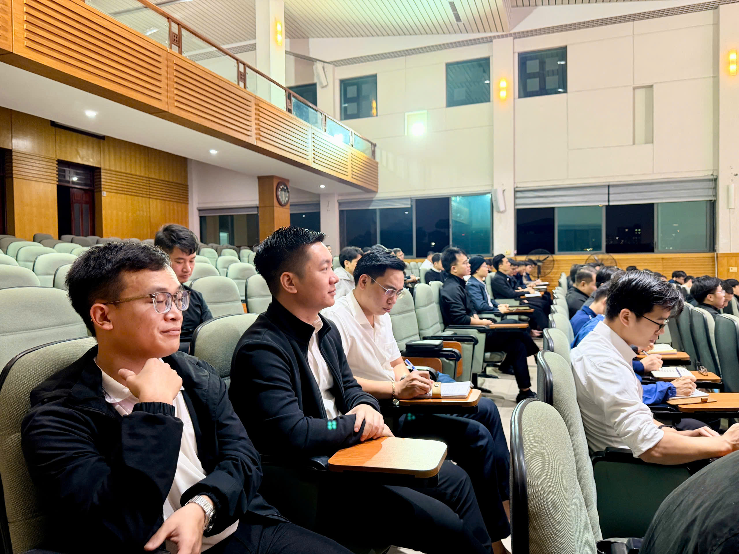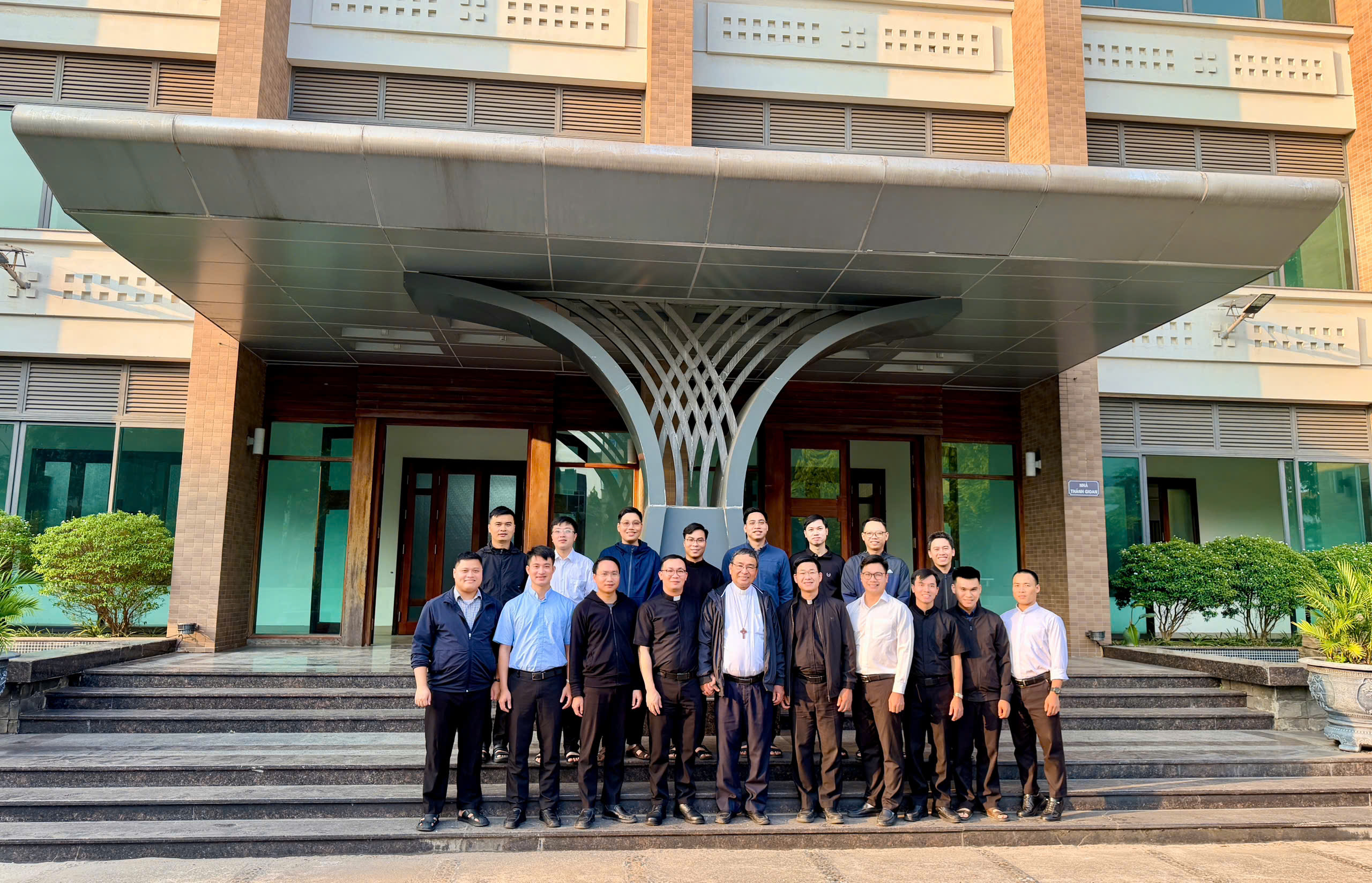 Sau đó, tại Nhà Hội của Chủng viện, quý Thầy hiệp thông trong giờ Kinh chiều lúc 18h00. Trong ánh sáng của lời Chúa, Đức Cha đã chia sẻ huấn đức với quý Thầy, tiếp nối chủ đề năm học: “Với đức tin và lương tâm ngay thẳng” (x. 1Tm 1,19) là chủ đề của năm học.