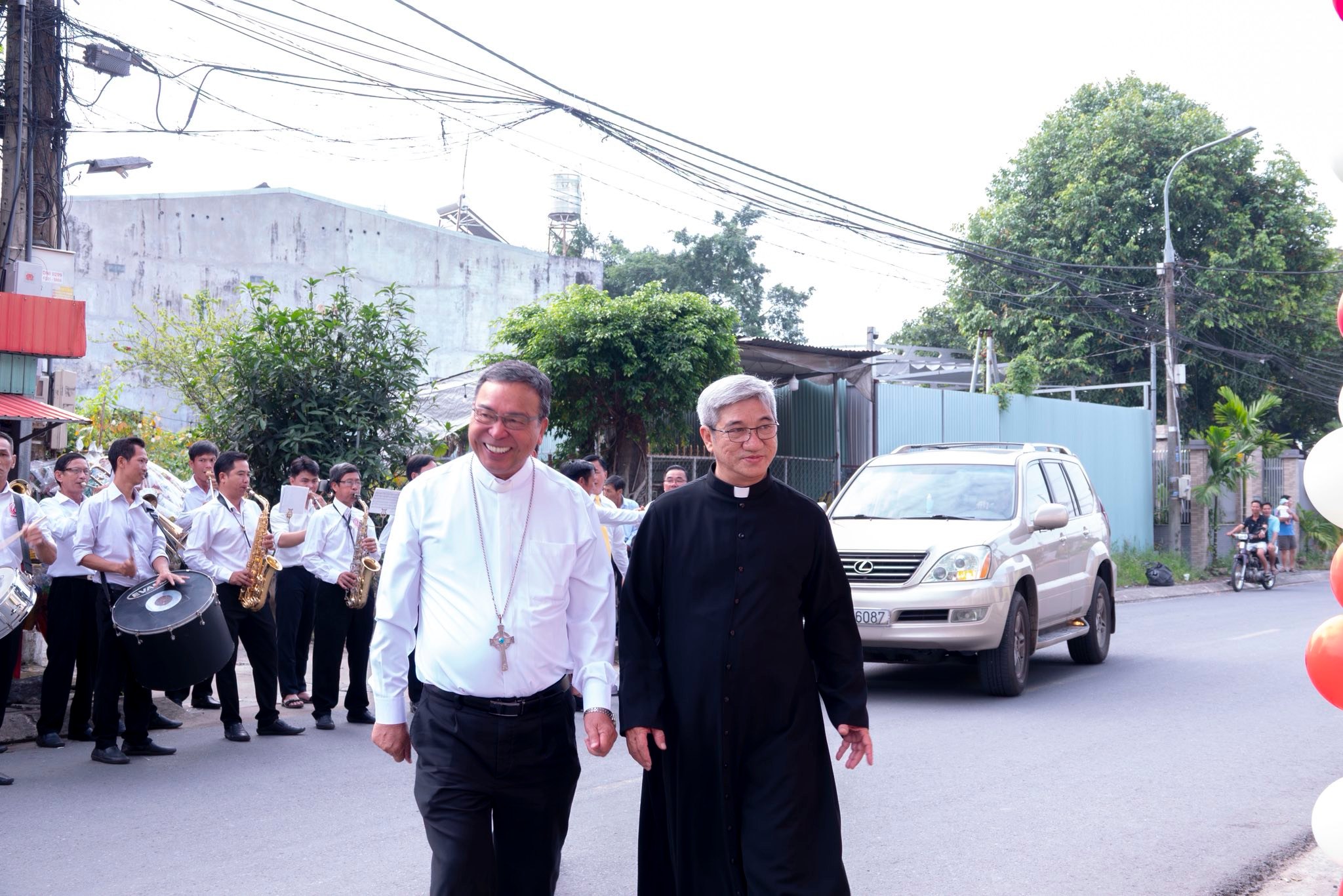 Từ lúc 8h00 sáng, Đức Cha cùng Cha Gioan Baotixita Vũ Văn Kiện – Quản lý Tòa Giám mục, quý Cha đồng hương đã đến thăm cộng đoàn. Cha Giuse Vũ Văn Trường cùng đông đảo bà con đã nồng nhiệt chào đón Đức Cha trong bầu khí chan chứa niềm vui và yêu thương.