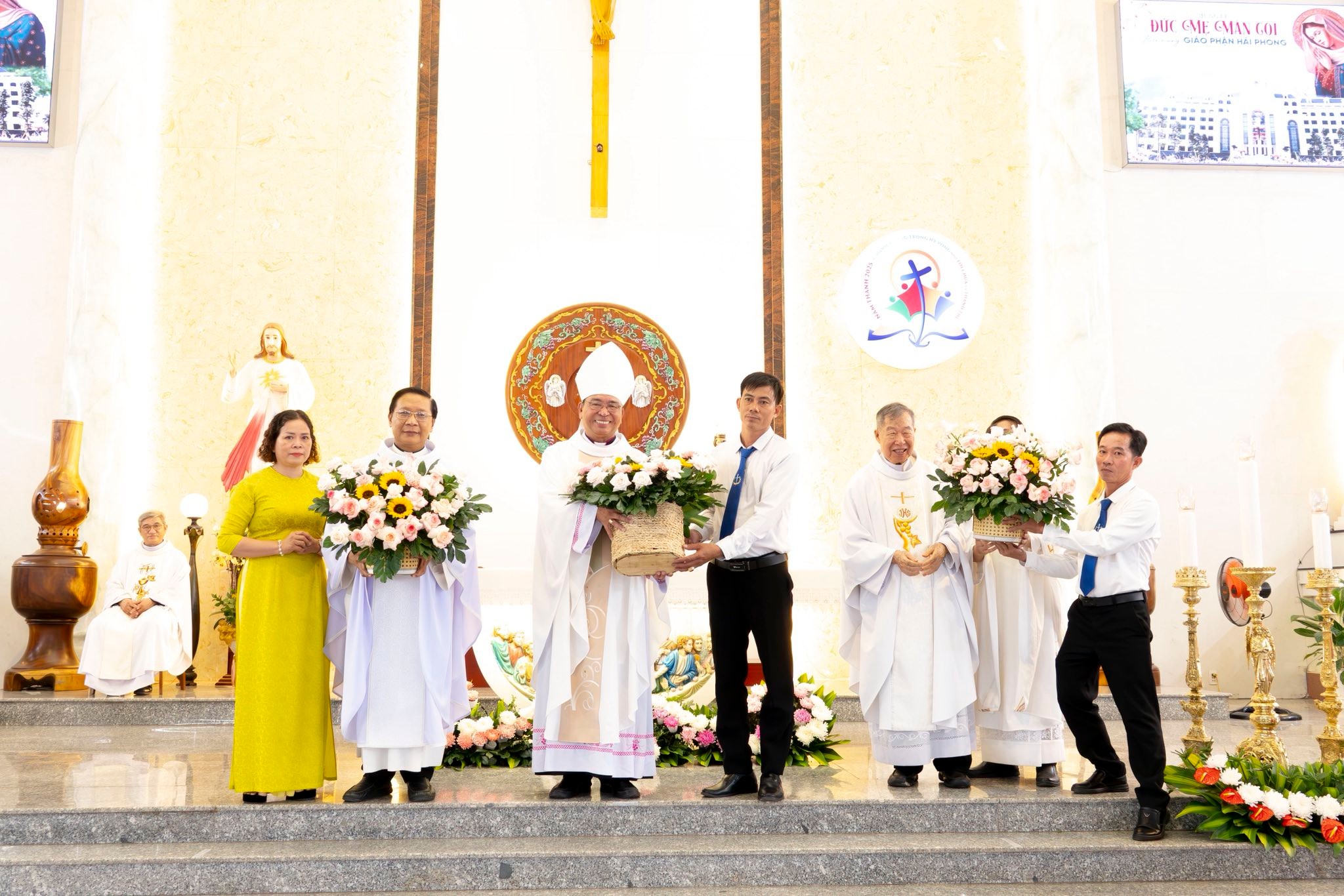 Sau Thánh lễ, một vị đại diện cộng đoàn dâng lời tri ân Đức Cha, quý Cha và bày tỏ niềm cảm mến sâu sắc của những người con xa quê khi được vị chủ chăn của Giáo phận đến thăm và dâng lễ cầu nguyện cho cộng đoàn. Những bó hoa tươi thắm thay cho lòng biết ơn chân thành được kính tặng Đức Cha và quý Cha.