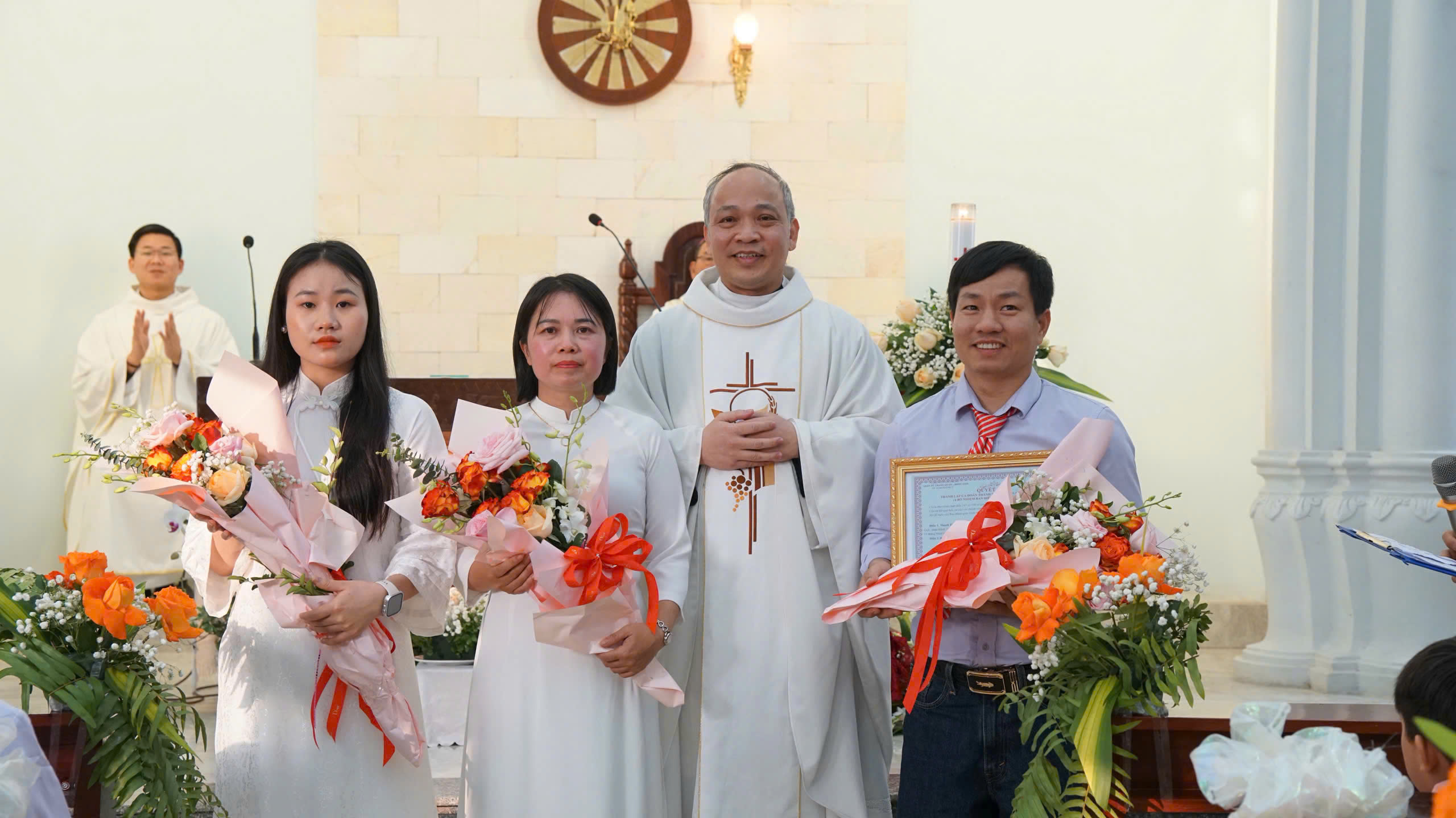 Sau lời nguyện hiệp lễ, vị đại diện Hội đồng mục vụ giáo xứ đọc quyết định thành lập ca đoàn và bổ nhiệm Ban Điều hành đầu tiên. Đồng thời, Cha chính xứ Giuse trao quyết định cho Ban điều hành ca đoàn trong niềm vui của toàn thể cộng đoàn.