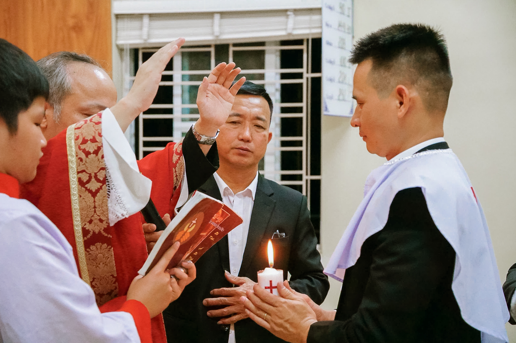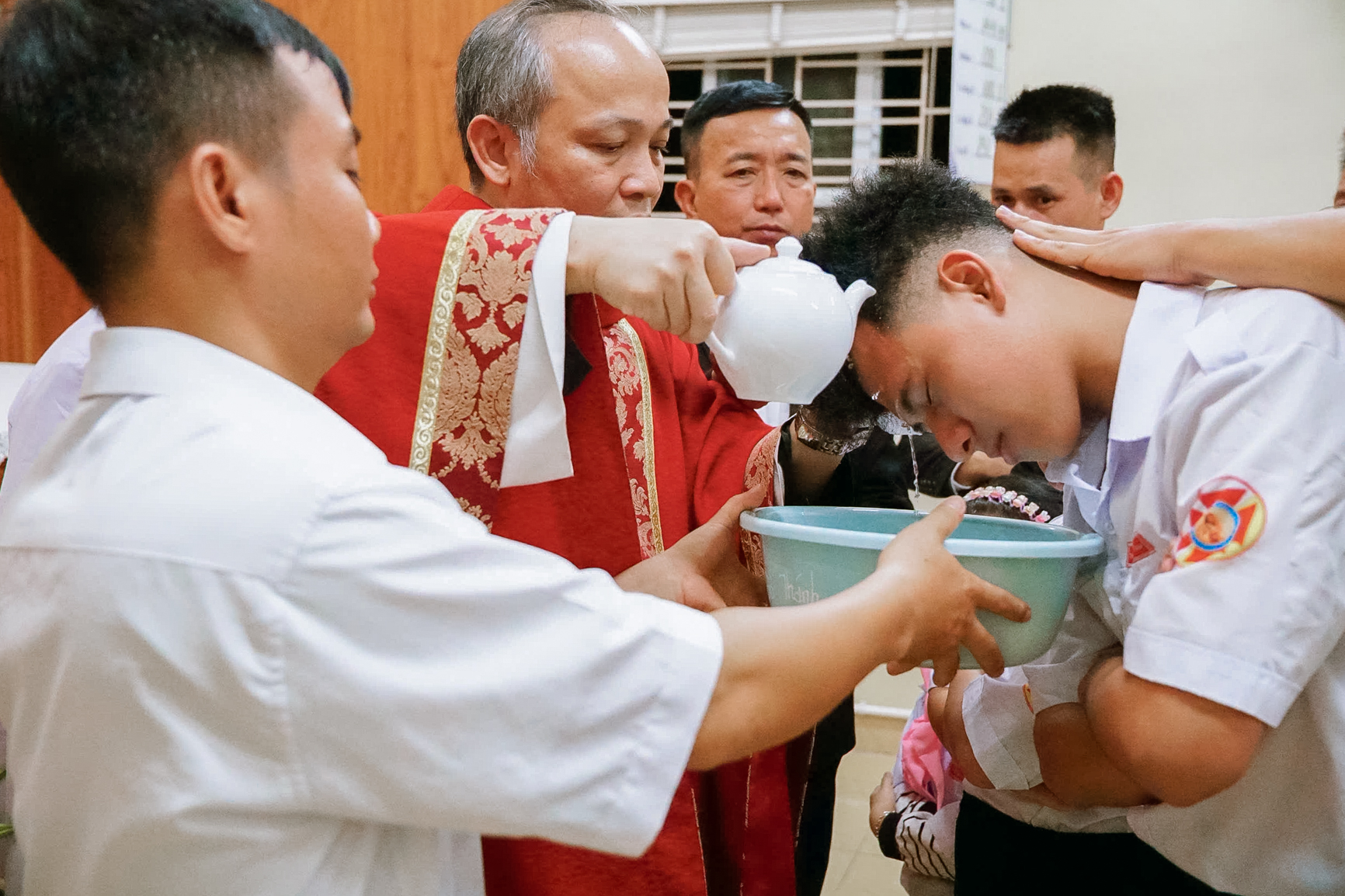 Sau khi cử hành Bí tích Thánh Tẩy cho cả gia đình, cha chủ sự cử hành Bí tích Thêm sức riêng cho người bố. Thánh lễ được tiếp tục cử hành với phần Phụng vụ Thánh Thể đầy sốt sắng.