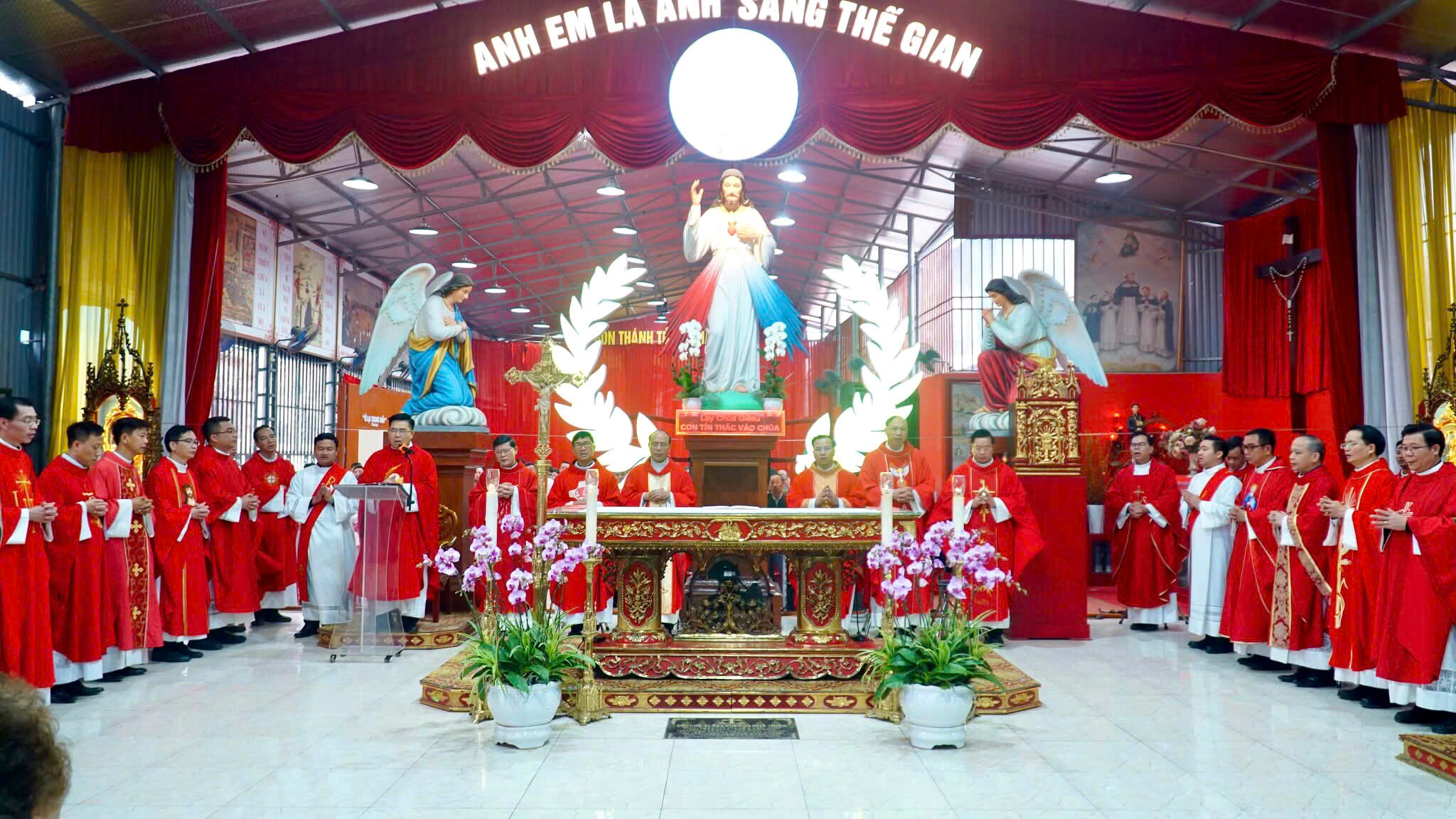 Hiện diện và đồng hành với cộng đoàn có Cha Tổng Đại diện, Cha Giám đốc Đền Thánh, quý Cha trong Giáo hạt, quý Tu sĩ nam nữ, các chú ứng sinh… Tất cả cùng hiệp lòng dâng lên Chúa lời kinh trong giờ lần chuỗi Lòng Chúa Thương Xót, cách riêng cầu nguyện cho Giáo phận và chương trình tái thiết Đền Thánh.