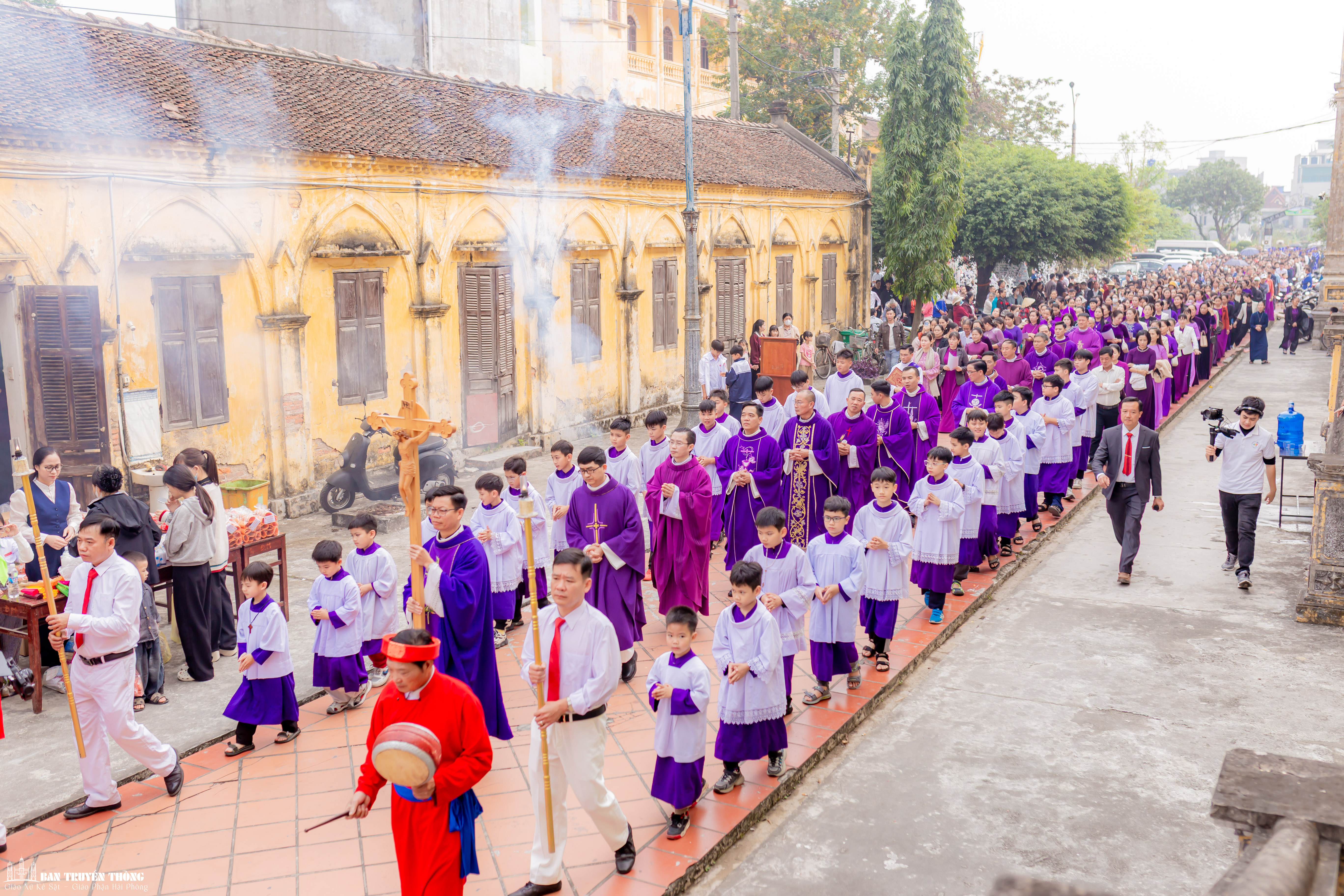Tiếp đó, giống như dân thánh xưa hành hương về Đền thờ Giêrusalem, cộng đoàn cung nghinh Thánh Giá Năm Thánh tiến vào nhà thờ. Cuộc rước diễn ra trong sự trang nghiêm, sốt sắng và đầy tâm tình tôn vinh Thiên Chúa.
