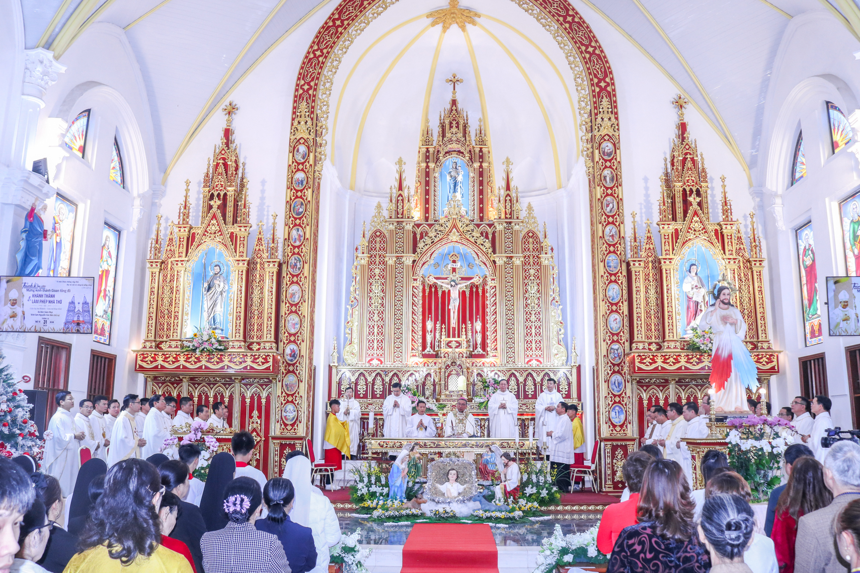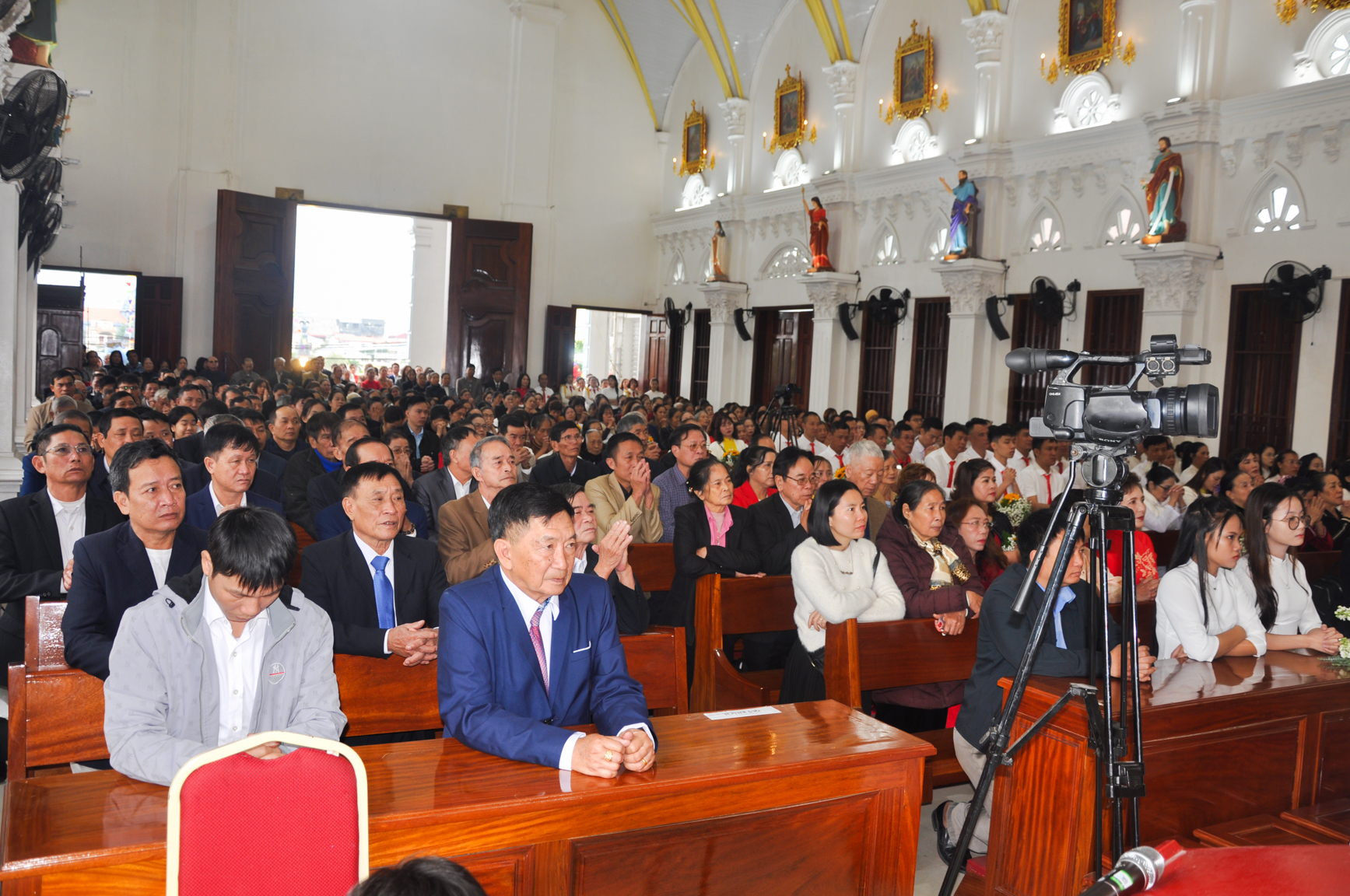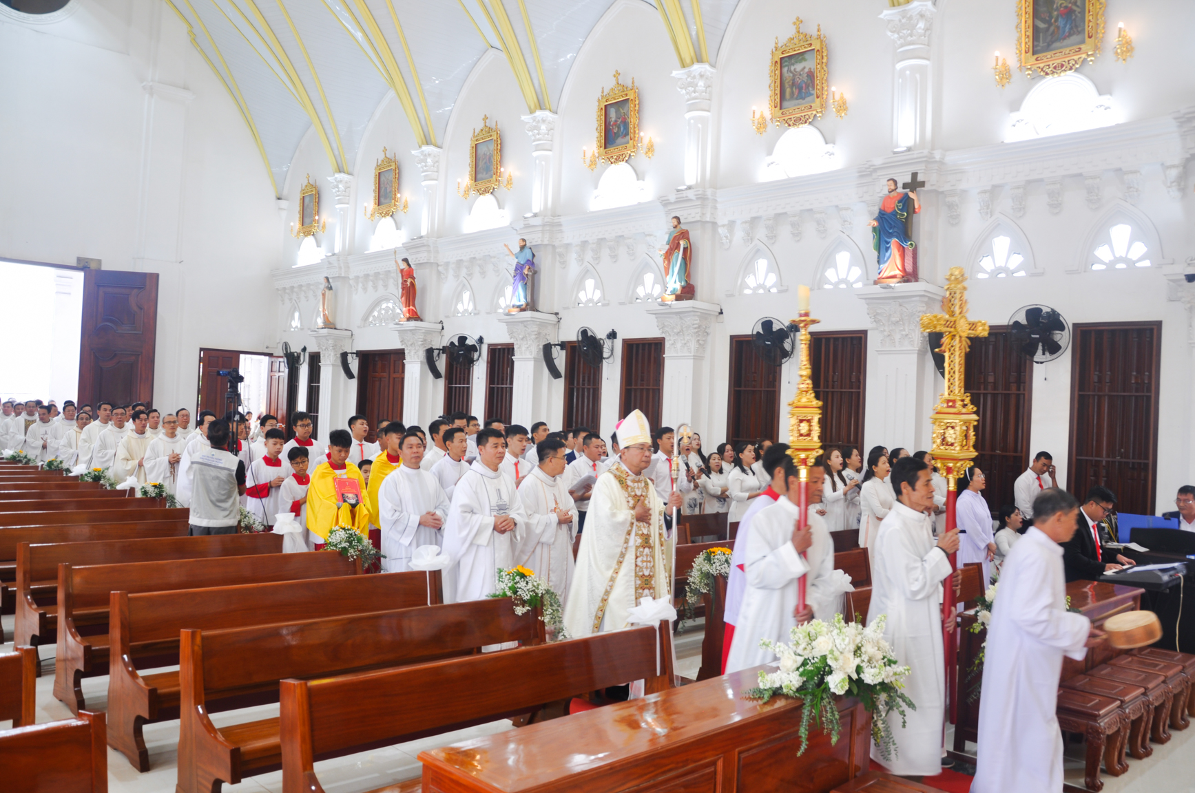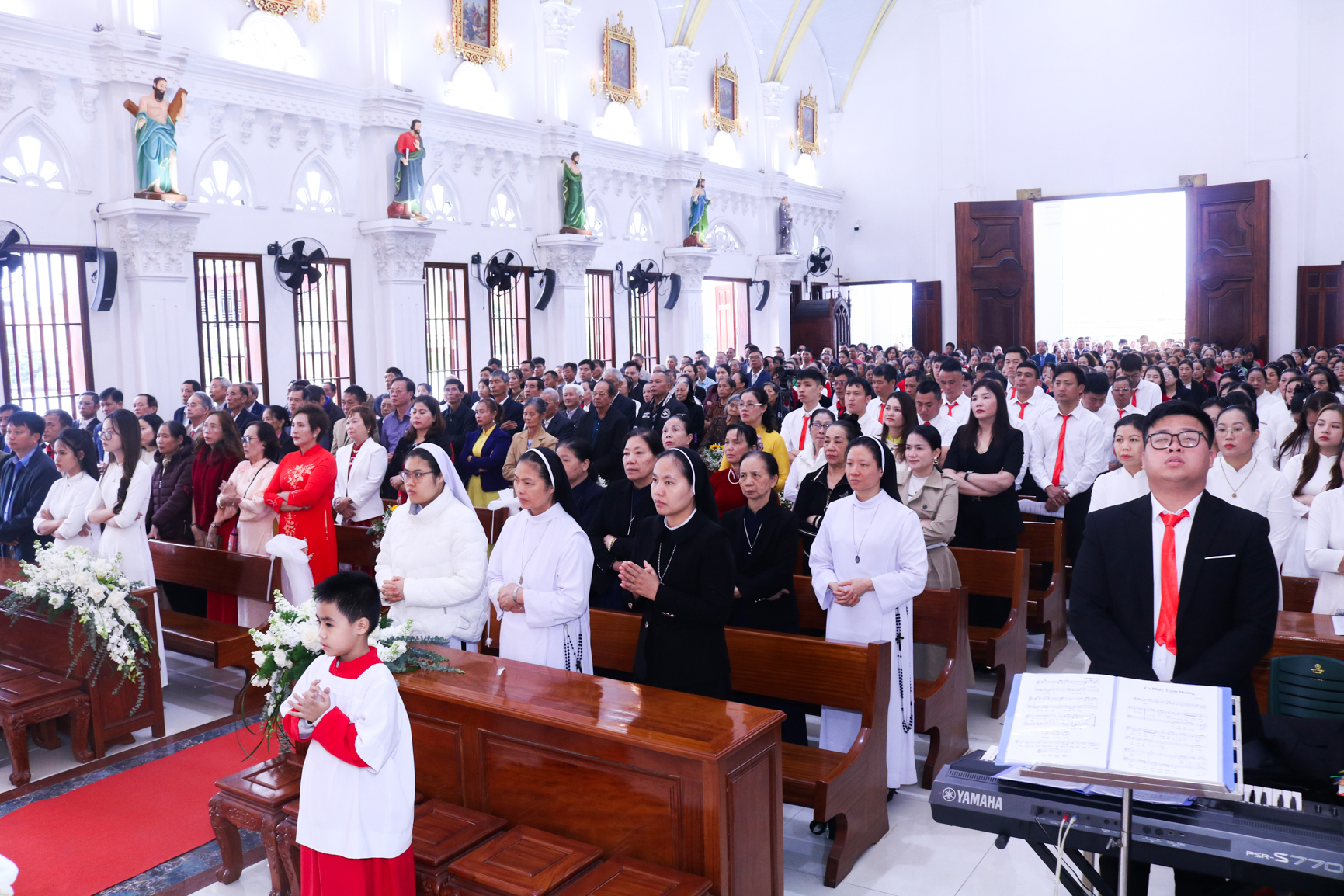 Thánh lễ được cử hành vào lúc 9h30, do Đức cha Vinh Sơn Giám mục giáo phận chủ sự. Đồng tế với ngài có quý Cha trong và ngoài Giáo phận, trong đó có Cha xứ đương nhiệm Isidoro Phạm Văn Toản, và Cha xứ tiền nhiệm Inhaxiô Đoàn Thanh Vững, cùng sự hiện diện đông đảo quý Tu sĩ nam nữ, quý khách và cộng đoàn dân Chúa.