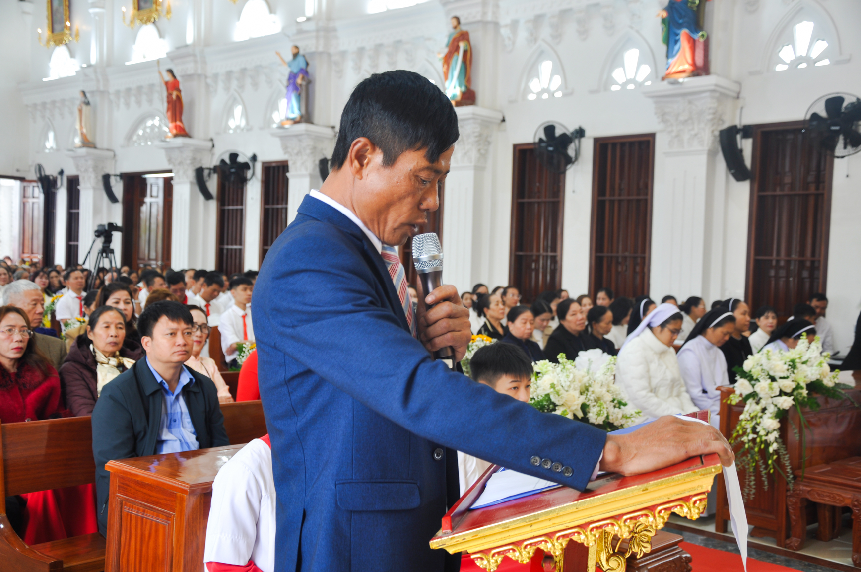 Sau lời nguyện hiệp lễ, một vị đại diện giáo họ đã dâng lời tri ân Thiên Chúa, cảm ơn Đức Cha, quý Cha và cộng đoàn đã hiện diện hiệp thông cầu nguyện và chia sẻ niềm vui với giáo họ. Đồng thời, ông cũng trình bày sơ lược về hành trình xây dựng ngôi nhà thờ, từ khi khởi công năm 2018 đến khi hoàn thành năm 2025 – một công trình mang nhiều hy sinh, vượt qua những khó khăn, đặc biệt là giai đoạn đại dịch Covid-19.