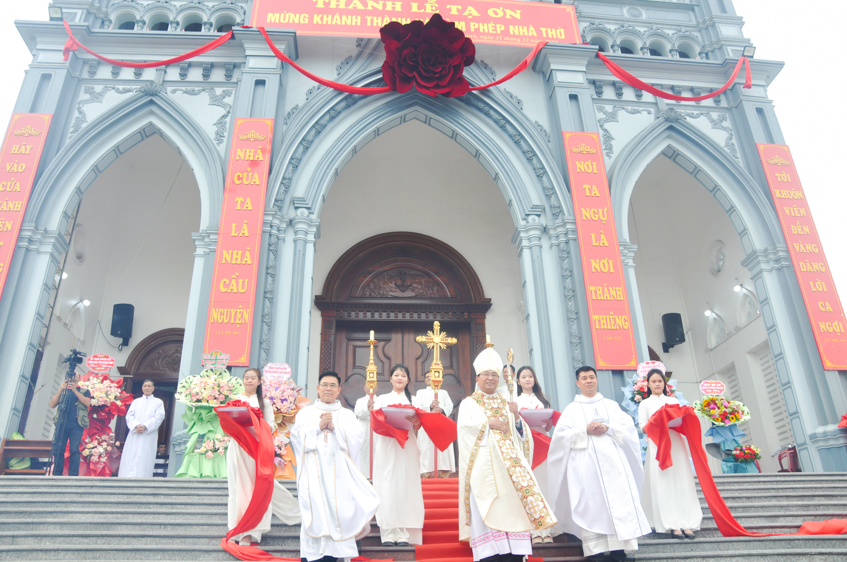 Sau nghi thức cắt băng, cộng đoàn cùng tiến vào ngôi thánh đường trong niềm vui hân hoan. Thánh lễ được bắt đầu với nghi thức làm phép nhà thờ, trong khi cộng đoàn hiệp thông ca hát bài “Tôi đã thấy nước từ bên phải Đền Thờ chảy ra. Alleluia! Và nước ấy chảy đến những ai, thì tất cả được cứu rỗi và reo lên: Alleluia! Alleluia!” – như lời mời gọi bước vào nơi thánh thiêng, khởi đầu cho một hành trình đức tin mới trong ngôi nhà của Thiên Chúa.