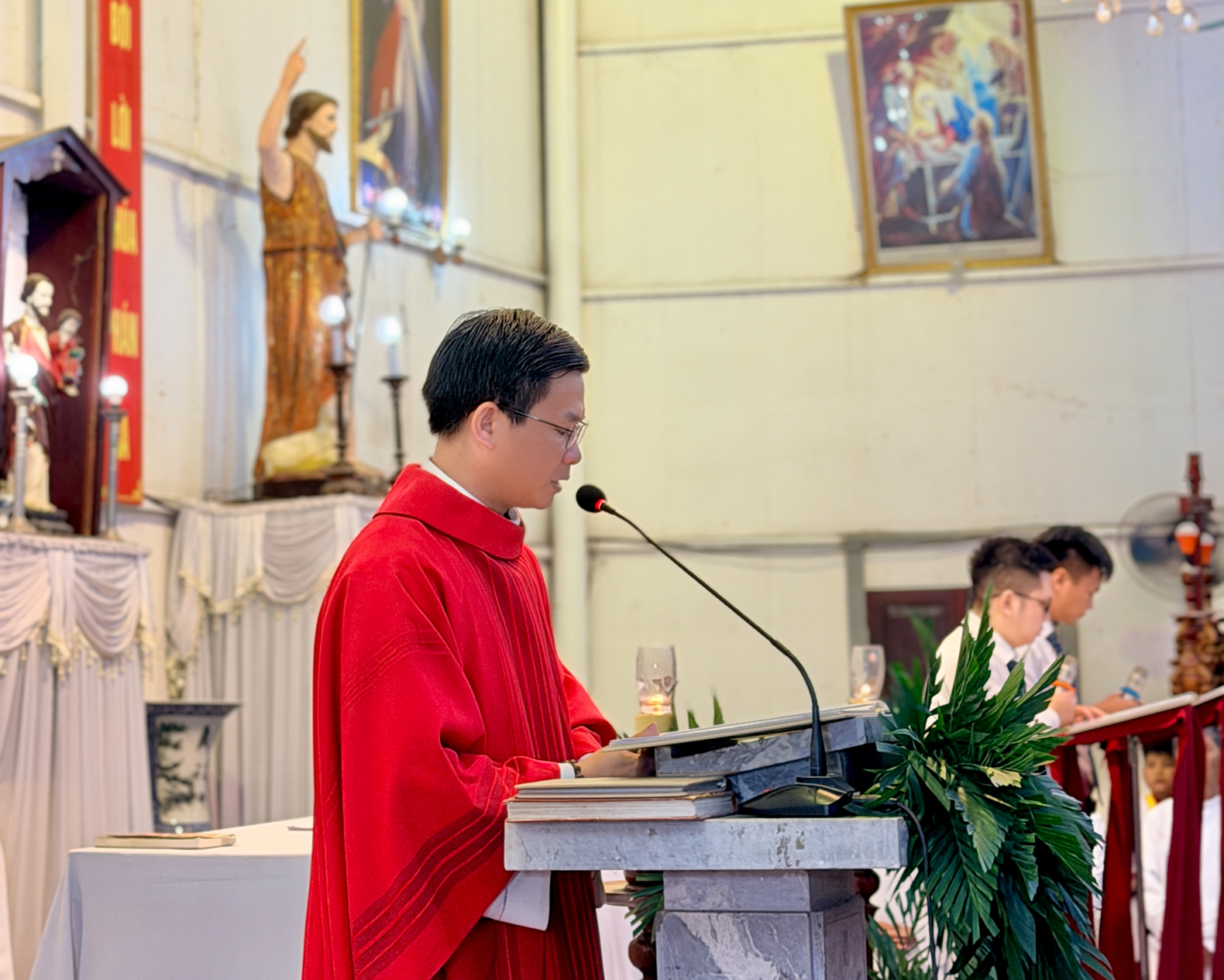 Dù cách nhà xứ khoảng 3km và còn nhiều bận rộn với công việc mưu sinh như làm bánh đa, sản xuất nông sản, cộng đoàn nơi đây vẫn tích cực chuẩn bị cho Tuần Thánh. Trong những ngày qua, quý chức Ban Hành giáo cùng cộng đoàn đã nhận được sự hướng dẫn và đồng hành của cha xứ Giuse, cha phó Giuse Phạm Văn Thiền và đặc biệt là cha Phêrô Hoàng Đình Kỳ, giúp cộng đoàn cử hành Tuần Thánh.