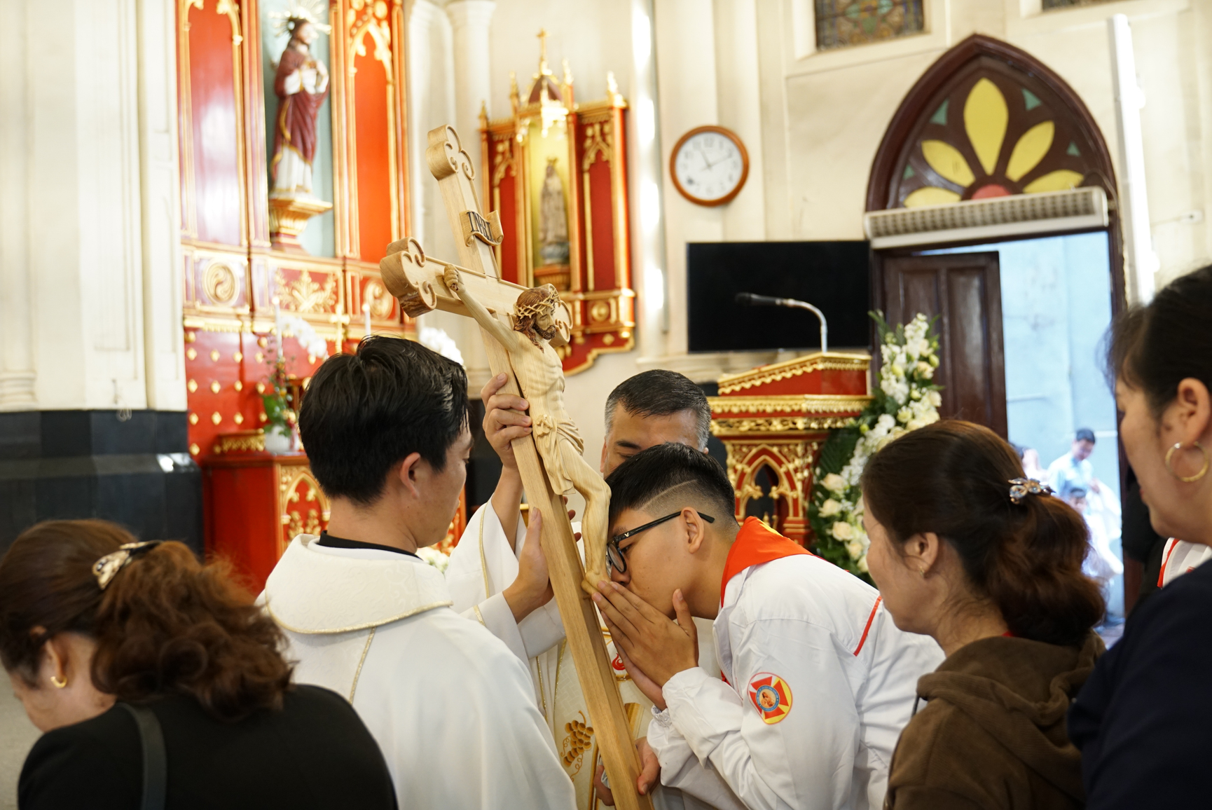 Ngày hành hương kết thúc qua việc cộng đoàn cùng hôn kính Thánh Giá Năm Thánh và trở về với niềm vui, hy vọng để tiếp tục mang niềm vui và hy vọng ấy đến cho mọi người.