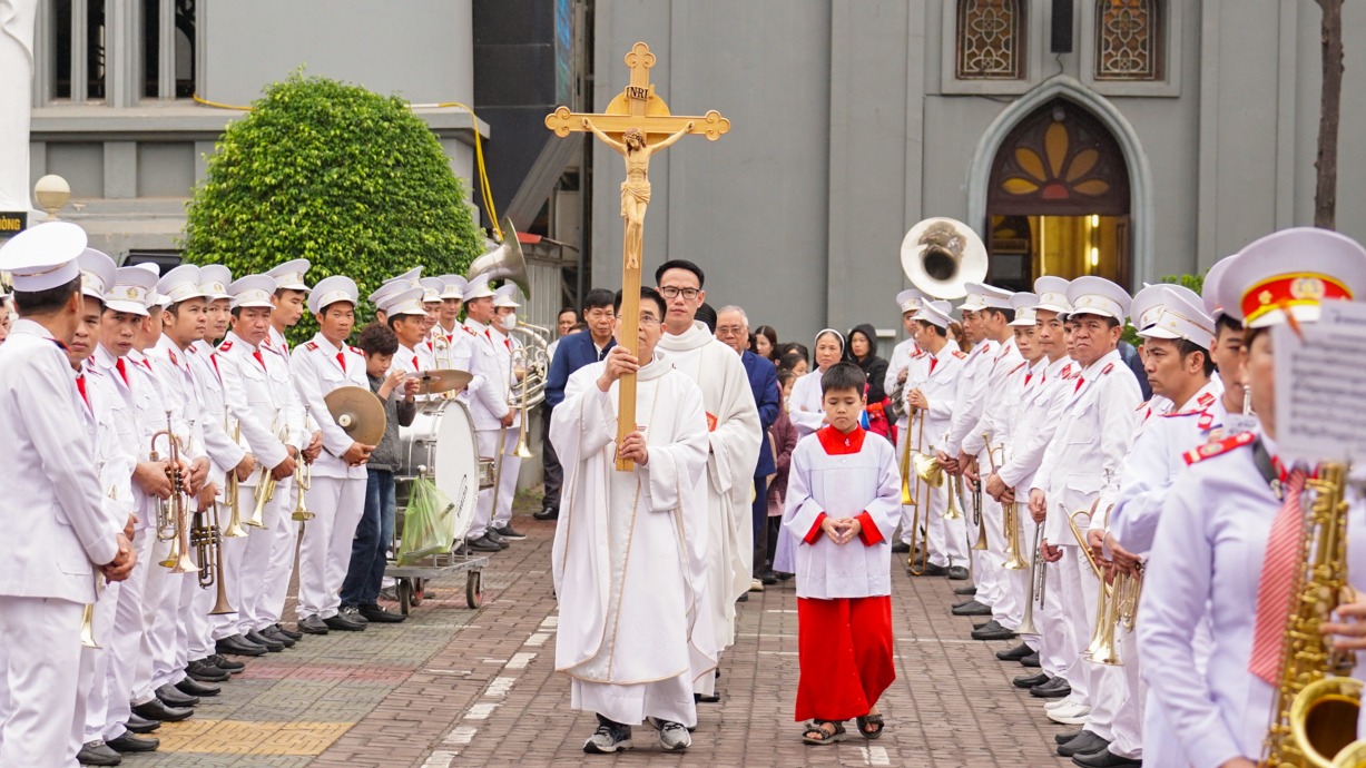 Cũng như tâm điểm của bao cuộc hành hương, cộng đoàn cùng nhau rước Thánh Giá Năm Thánh tiến vào thánh đường và hiệp dâng Thánh lễ.
