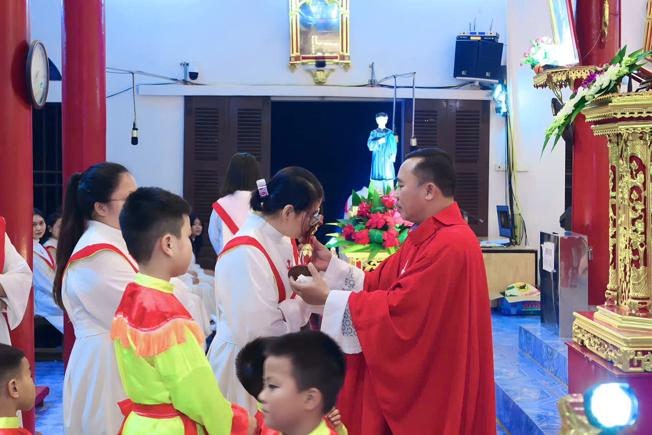 Trong phần chia sẻ Lời Chúa, Cha xứ Giuse đã gợi lại hình ảnh anh dũng của các bậc tiền nhân — những chứng nhân kiên trung đã dám hy sinh tất cả vì đức tin. Ngài mời gọi cộng đoàn noi gương các ngài: sống can đảm, trung thành và kiên vững giữa những thử thách của đời sống hằng ngày.