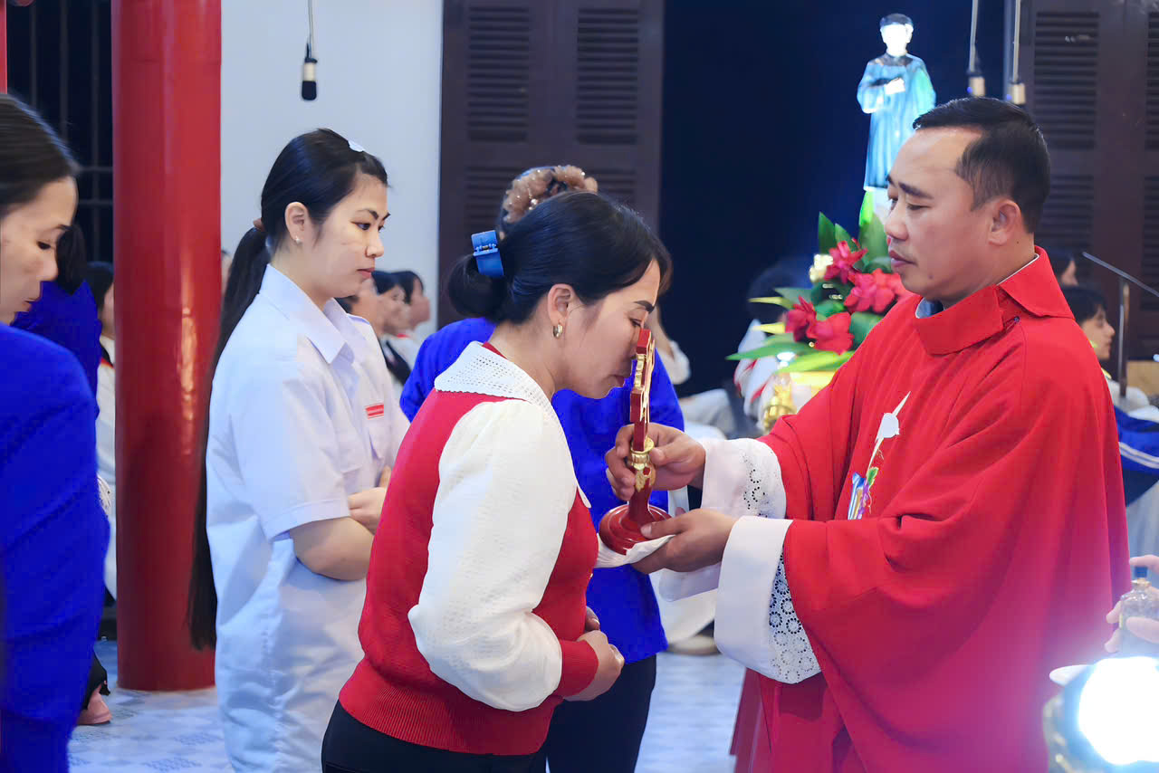Tiếp sau bài giảng, cộng đoàn trang nghiêm cử hành nghi thức hôn xương thánh linh mục Vicente Đỗ Yến, thể hiện lòng tôn kính sâu sắc đối với vị chứng nhân đã hiến dâng trọn đời cho Tin Mừng.