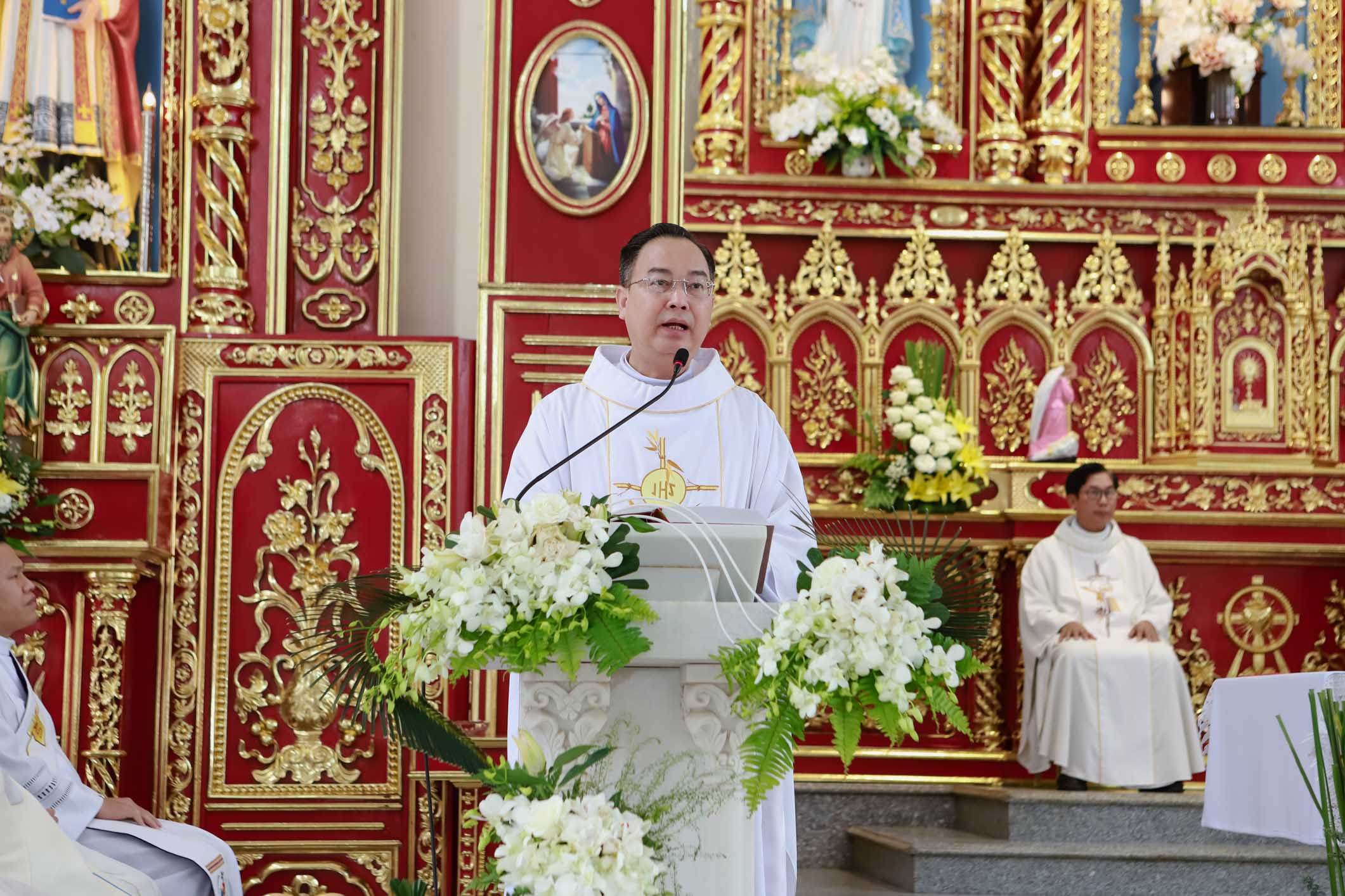 Thánh lễ do cha Giuse Dương Hữu Tình – Quản hạt Hòn Gai chủ tế. Cùng hiệp dâng trong Thánh lễ có cha xứ Giuse, quý cha trong Giáo hạt, thầy phó tế, quý tu sĩ và đông đảo các thành viên trong Giáo xứ.
