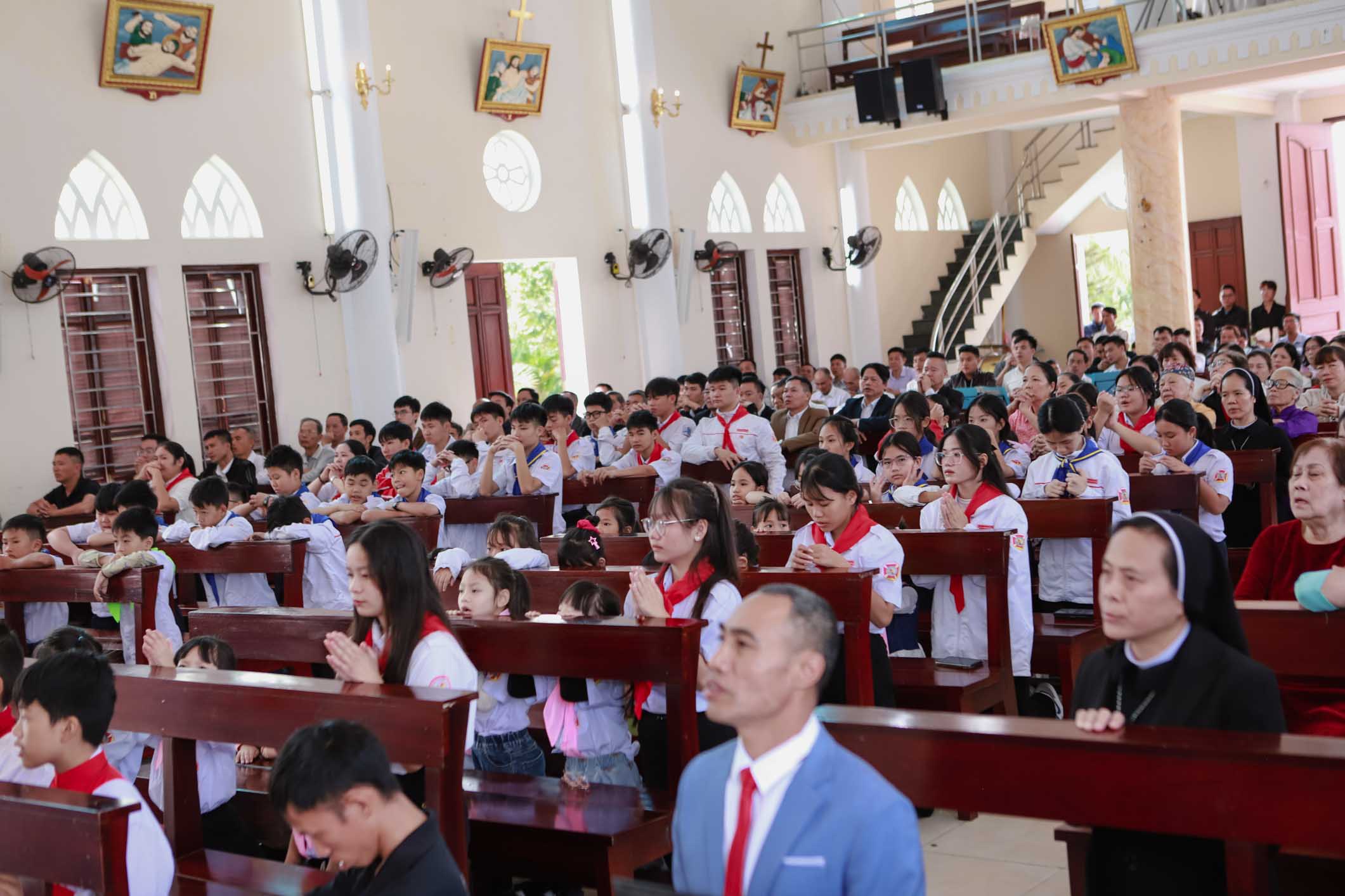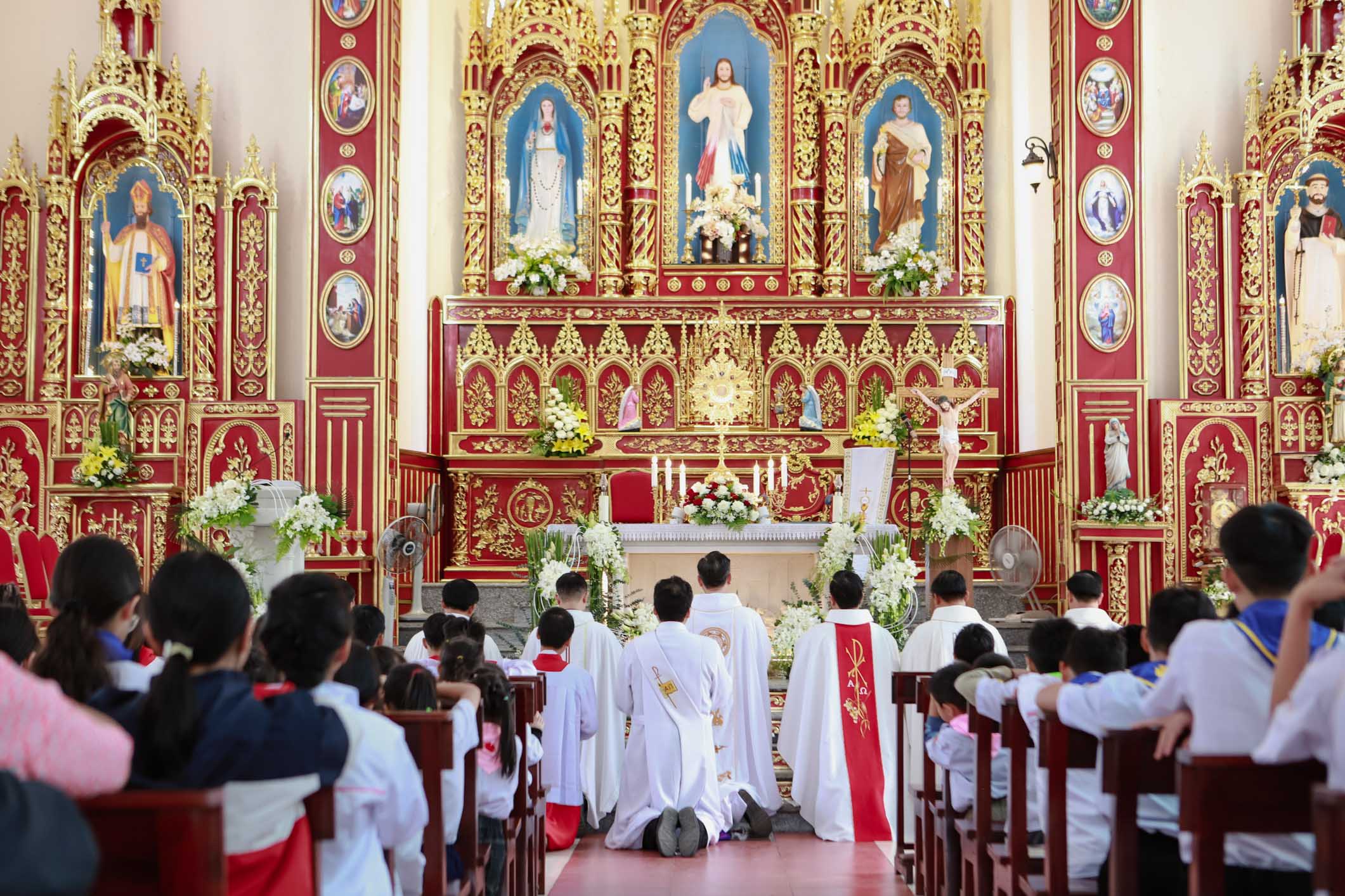 Kết thúc Thánh lễ, quý cha cùng toàn thể cộng đoàn quỳ trước Chúa Giêsu Thánh Thể, dâng lên Chúa những nỗi lo, những điều khó nói, cả những yếu đuối vẫn âm thầm mang theo. Tất cả được đặt dưới chân Vua Giêsu – Đấng hiểu và nâng đỡ chúng con hơn bất cứ ai.
