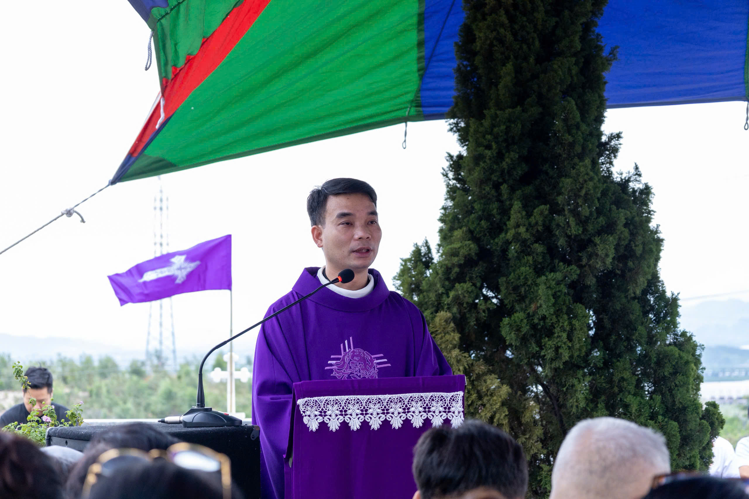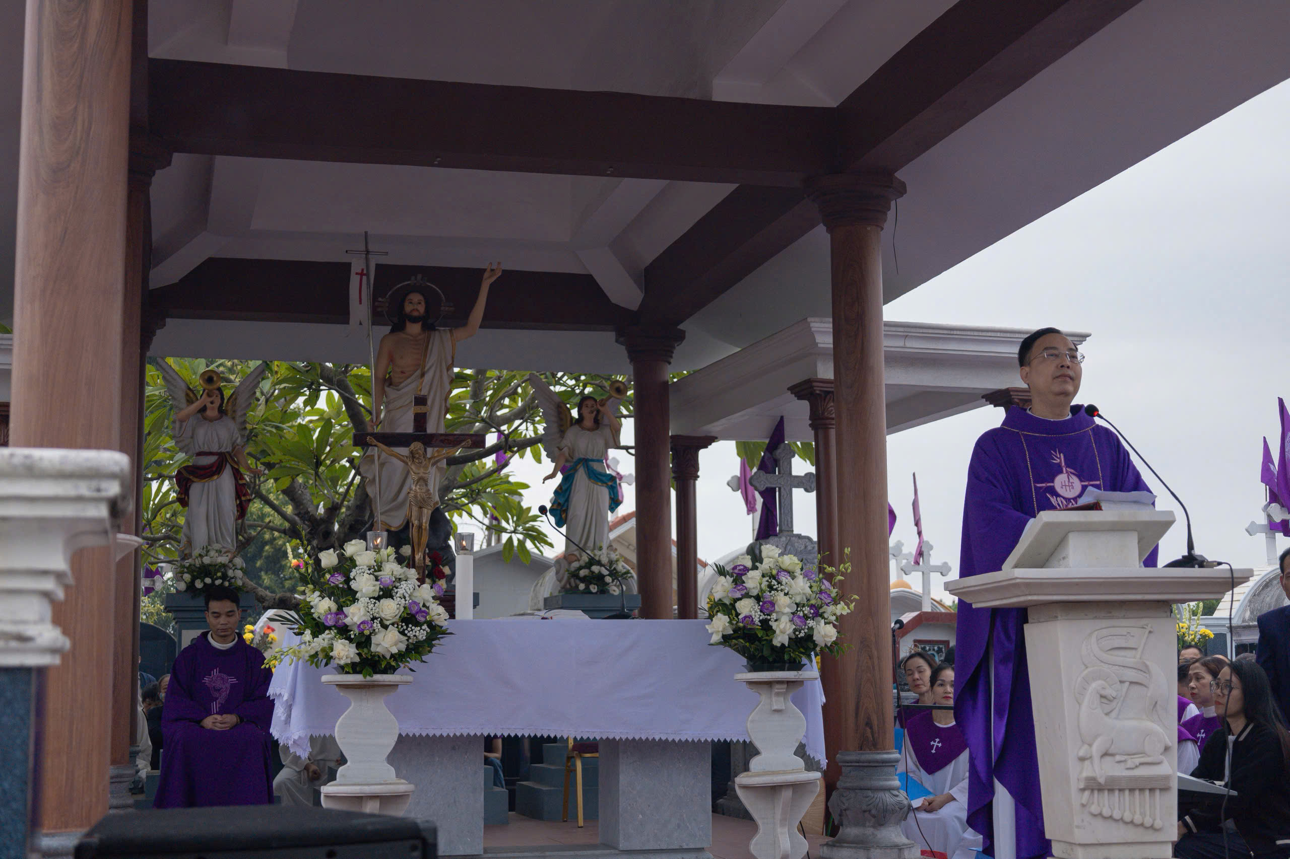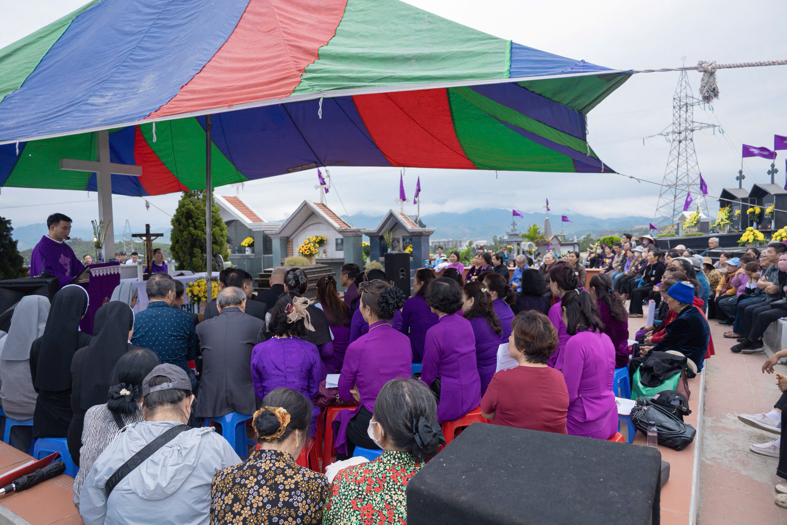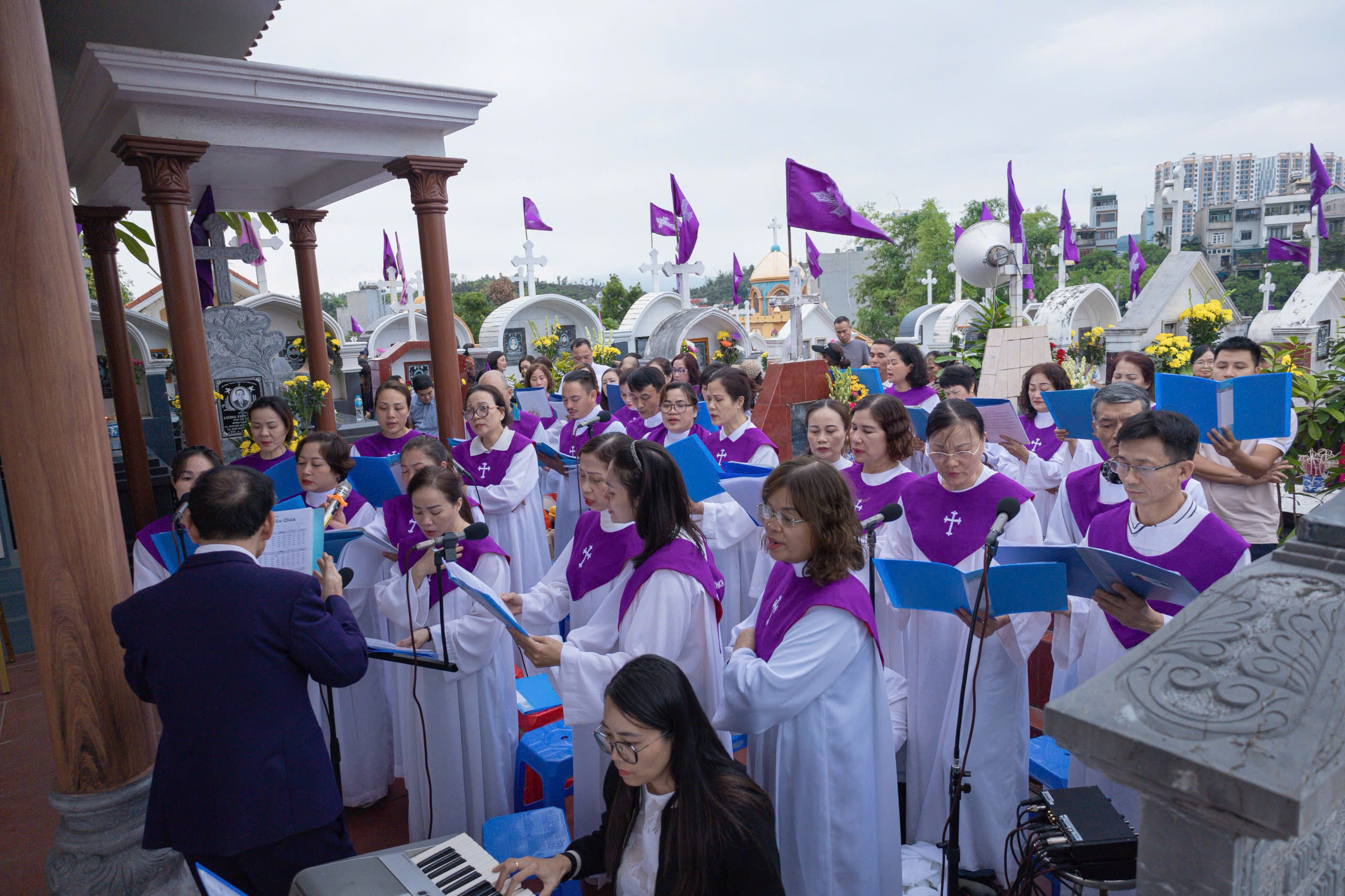 Đúng 15 giờ, Thánh Lễ được cử hành tại hai nghĩa trang: Ca đoàn Thánh Gia phục vụ Thánh Lễ tại nghĩa trang Đèo Sen, và Ca đoàn Mônica phục vụ tại nghĩa trang Công giáo.