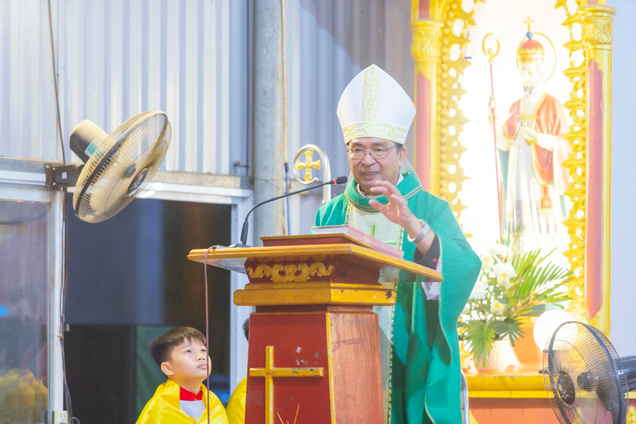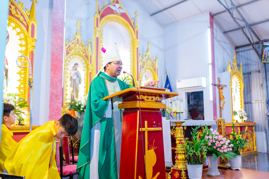 Nhiều lúc, con người nghĩ rằng mình vẫn có đức tin lớn nơi Chúa, nhưng chỉ khi thử thách xảy đến với mình hoặc gia đình mới nhận ra sự yếu đuối trong đức tin của mình. Cho nên, mỗi người rất cần có đức tin can đảm, mạnh mẽ nhất là xác tín nơi Lời Chúa. Để làm được như vậy, Đức Cha mong muốn mỗi người hãy sống và thực hành đức tin mỗi ngày qua những hành động cụ thể: bác ái yêu thương, quan tâm, tha thứ...