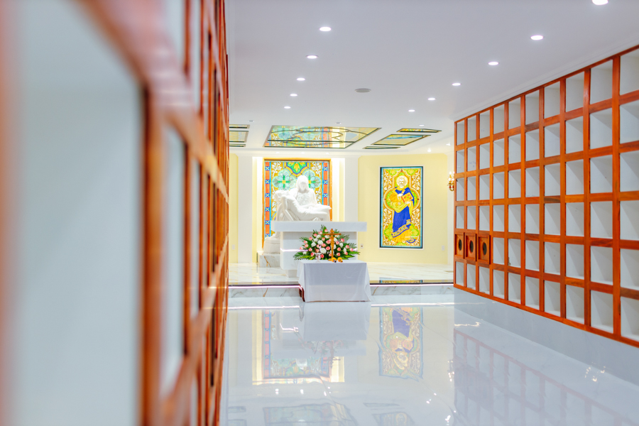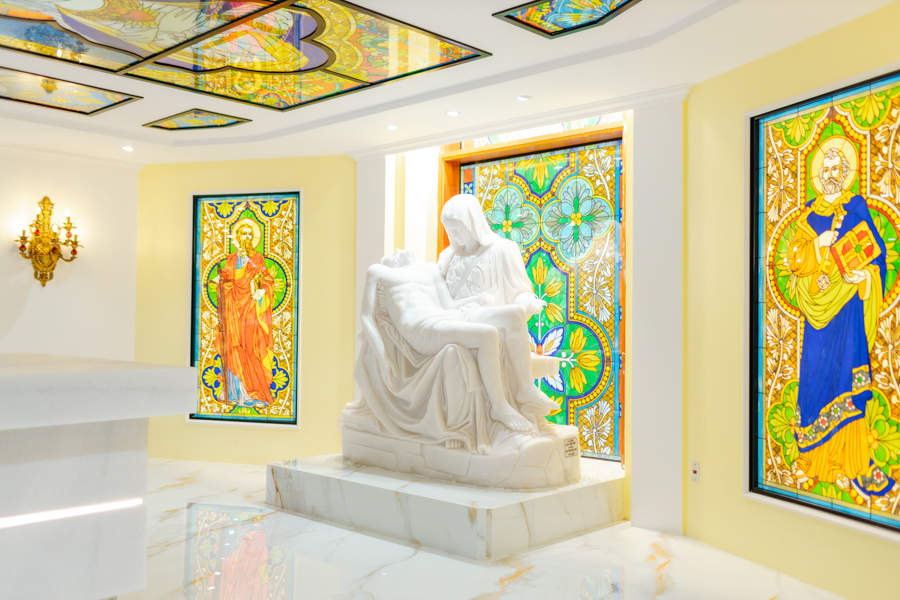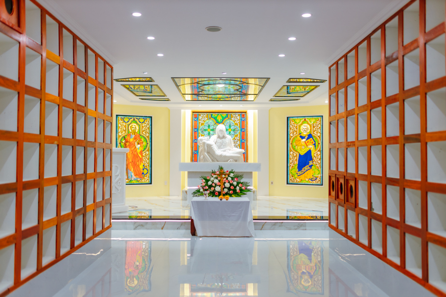 Vào lúc 18h30, đoàn rước tiến vào Nhà chờ Phục sinh tham dự nghi thức làm phép tượng Pietà – Đức Mẹ Sầu Bi do Đức cha chủ sự.