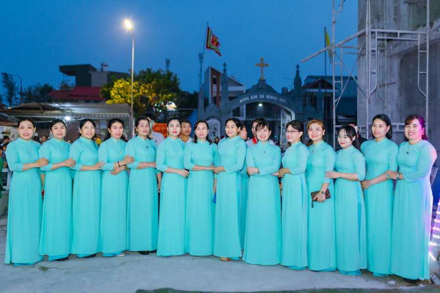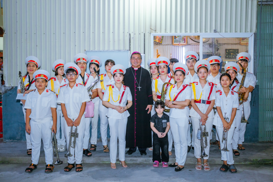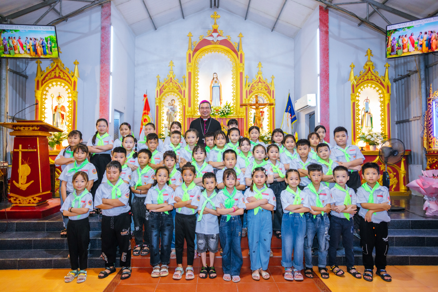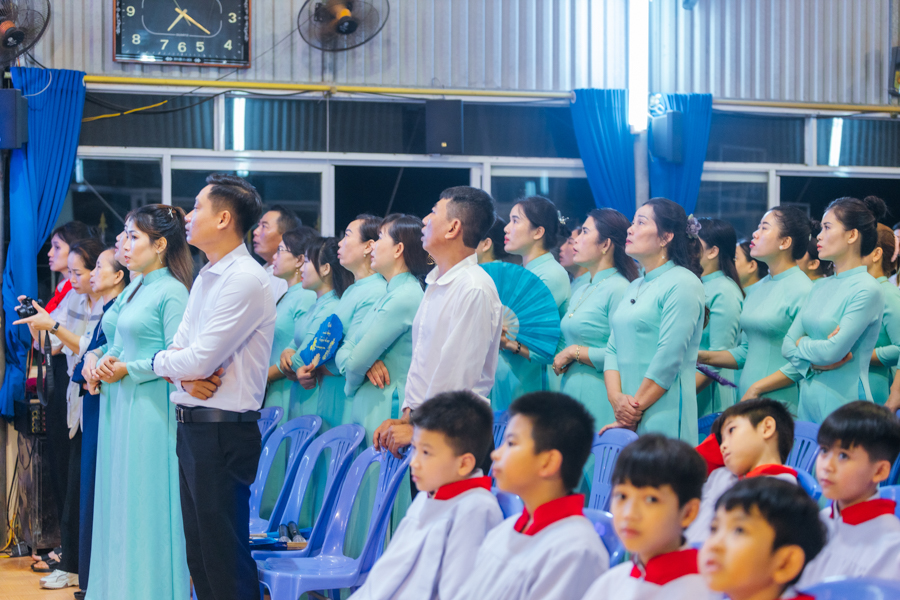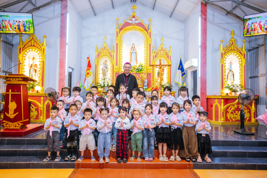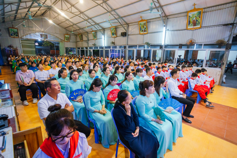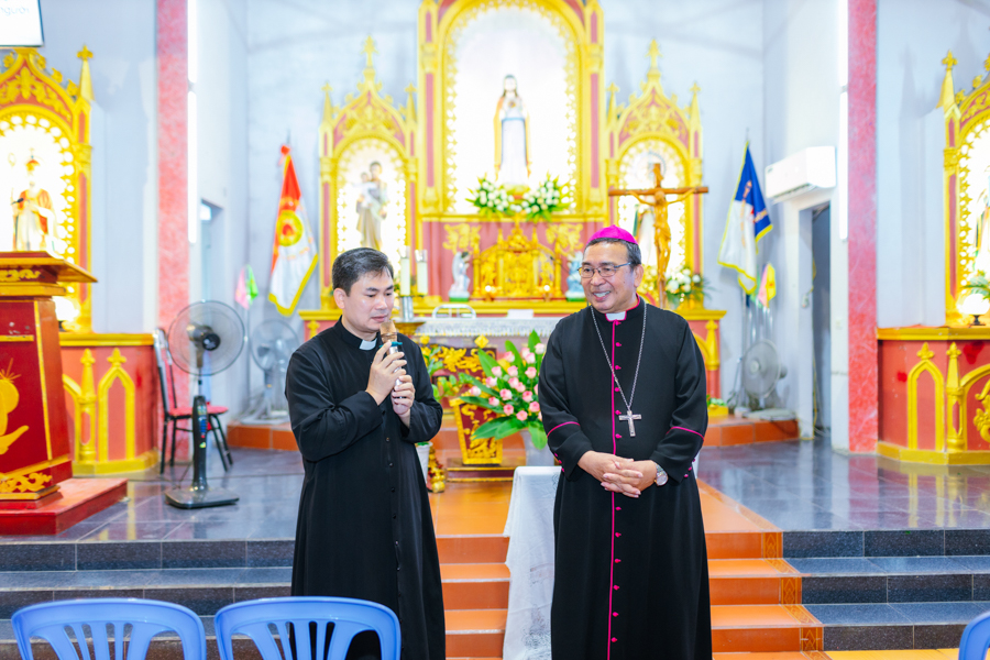 Kết thúc nghi thức, đoàn rước tiến vào nhà thờ để tham dự Thánh lễ tạ ơn. Đồng tế với Đức cha có sự hiện diện của cha xứ Đaminh và cha Thư ký Tòa giám mục.