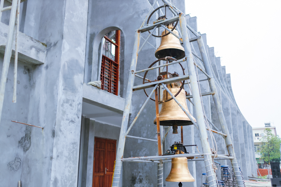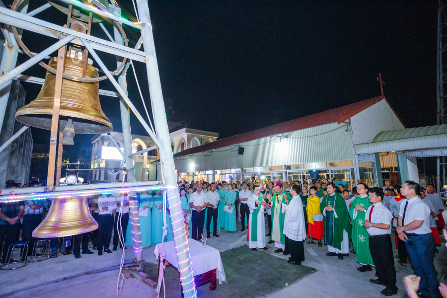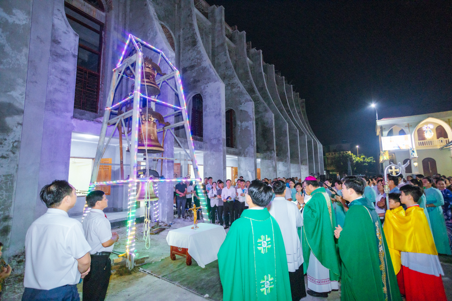 Ngay sau nghi thức làm phép tượng Đức Mẹ Sầu Bi là nghi thức làm phép chuông.