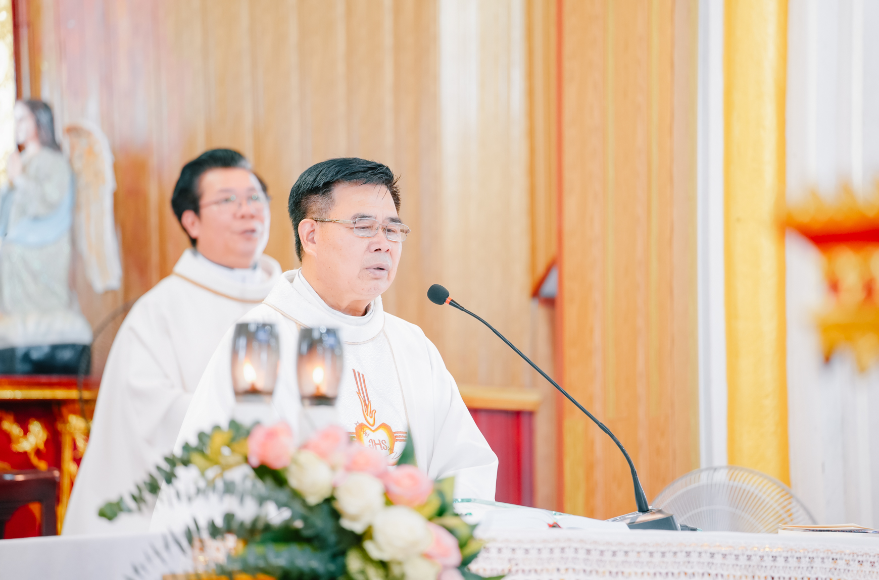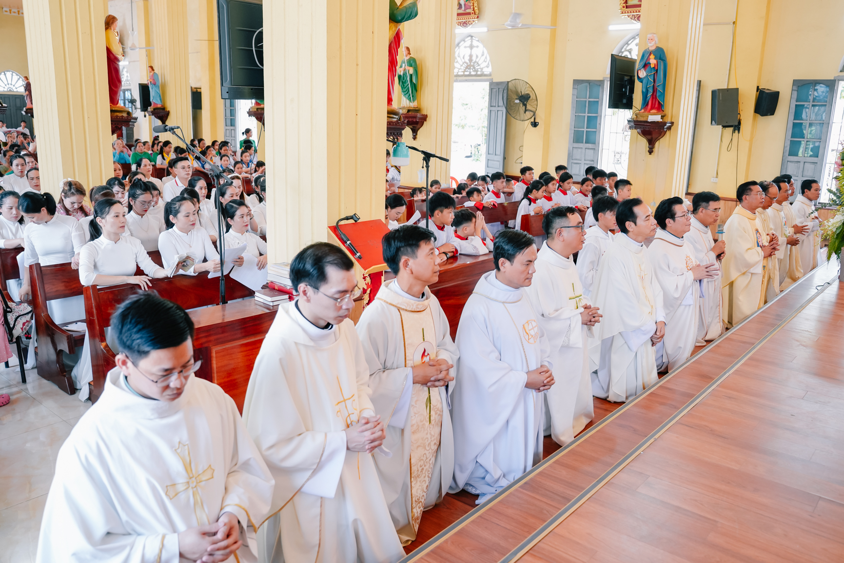Thánh lễ khai mạc ngày Chầu Mình Thánh do cha Inhaxiô Đoàn Thanh Vững – Quản hạt Chính Toà chủ sự. Cùng hiệp thông với ngài có quý cha trong giáo hạt, quý nam nữ tu sĩ cùng mọi thành phần dân Chúa giáo xứ Lão Phú.