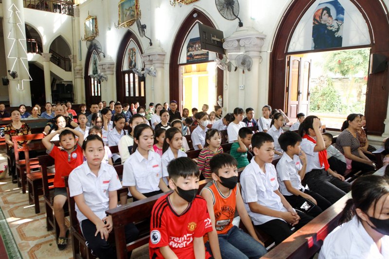 Tiếp đến, ông trùm hai nhà xứ Mạo Khê, đại diện cho Ban hành giáo và Hội đồng giáo xứ đã phát biểu động viên các em trong các lớp học, và hứa sẽ tạo điều kiện tốt nhất, để các em yên tâm học giáo lý.