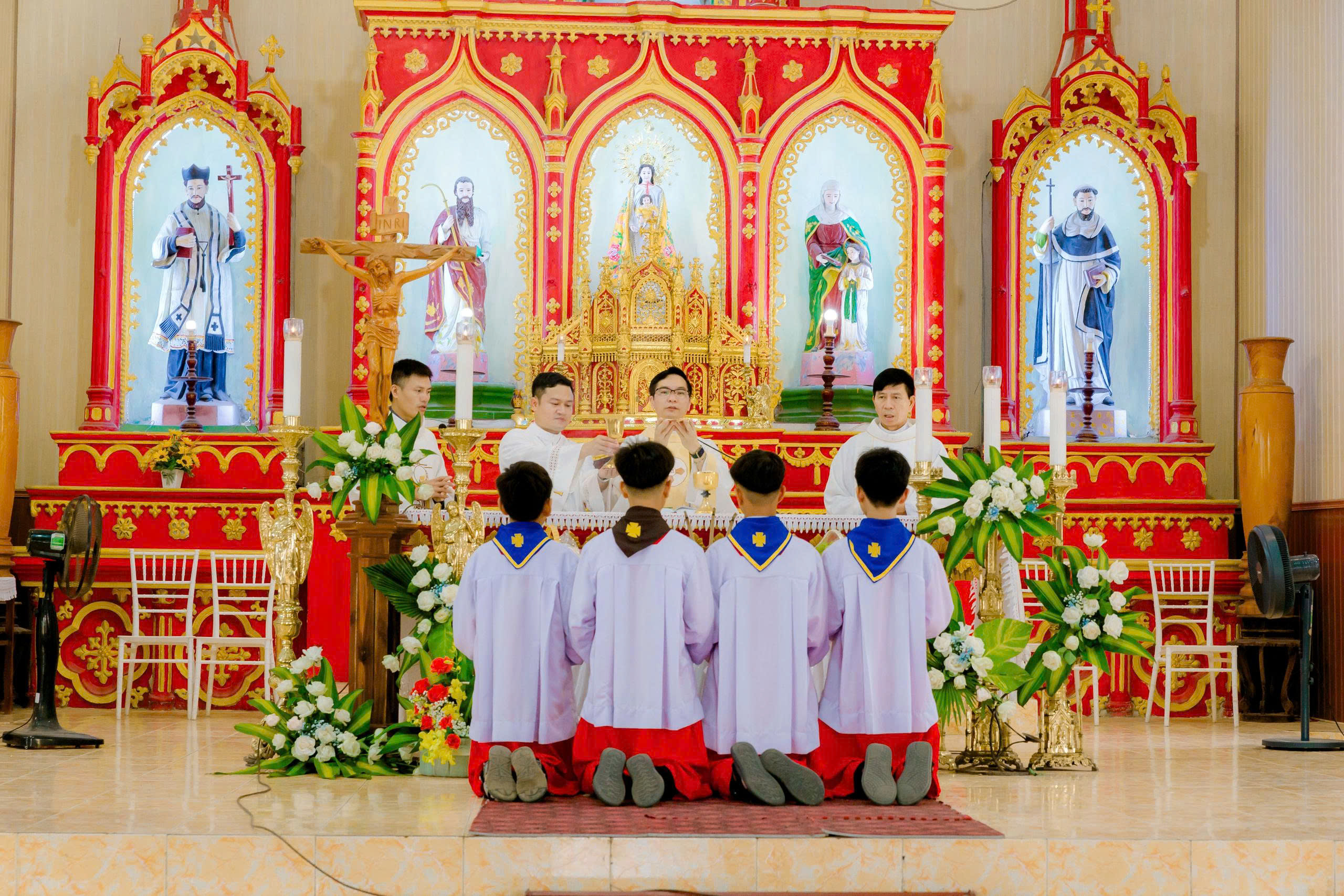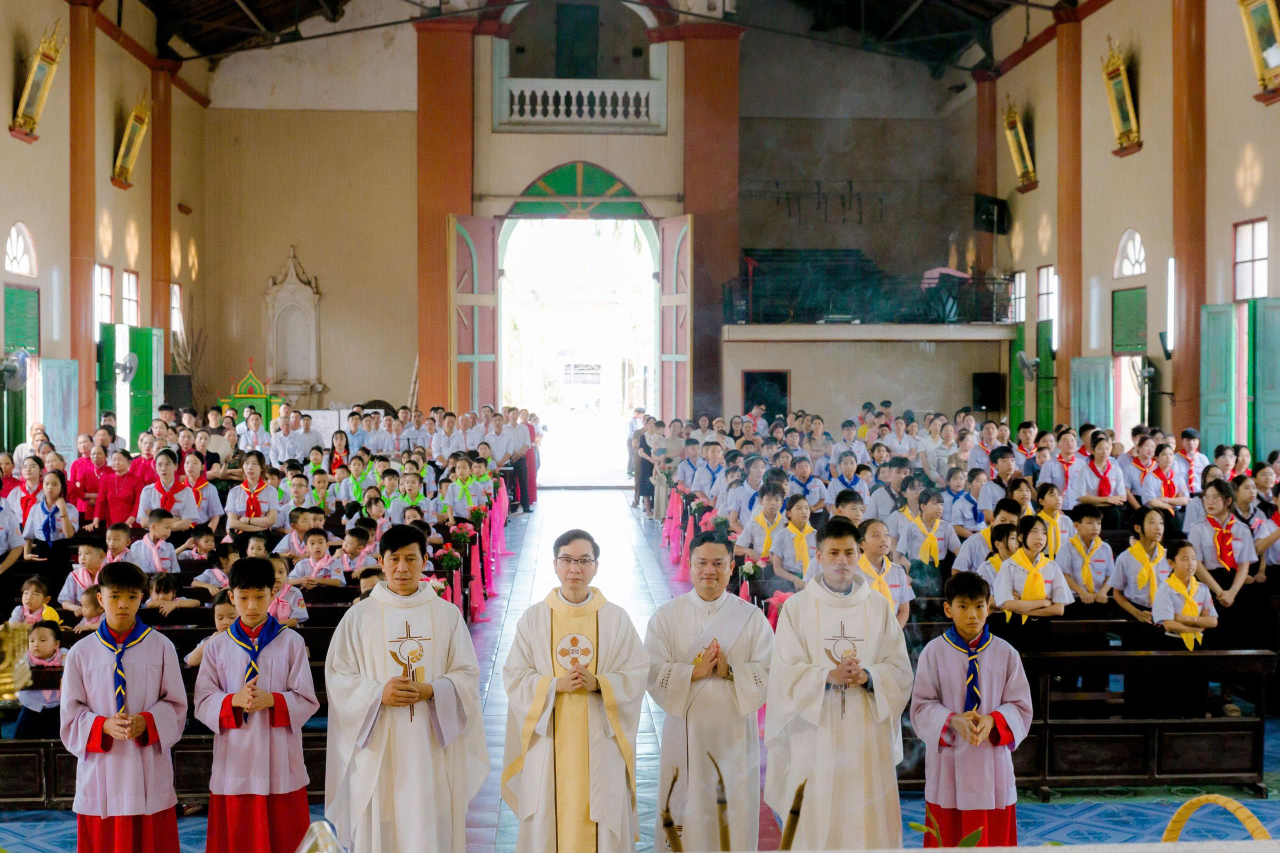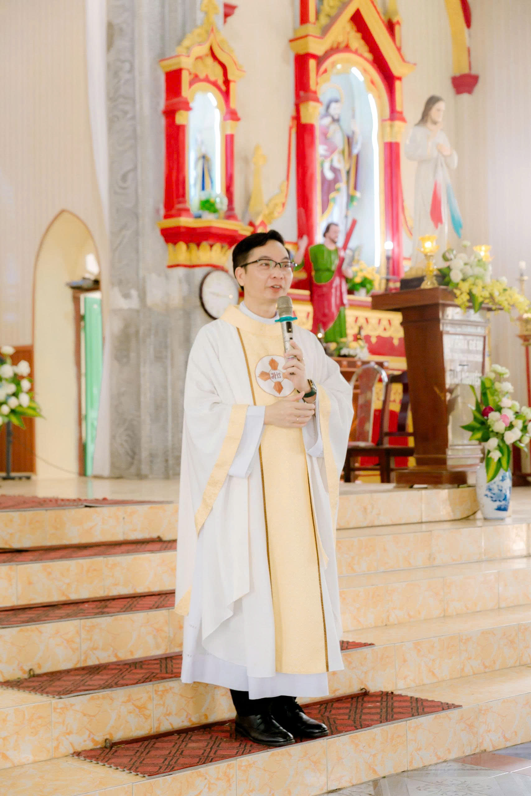 Thánh lễ tạ ơn được cử hành trọng thể do Cha Phêrô Vũ Văn Thìn – Cha Tuyên úy Liên đoàn Chúa Chiên Lành – chủ sự. Đồng tế với ngài có Cha chính xứ Tôma Nguyễn Hữu Khang và Cha quê hương Gioakim Vũ Văn Tuyền, chính xứ Giáo xứ Bạch Xa.