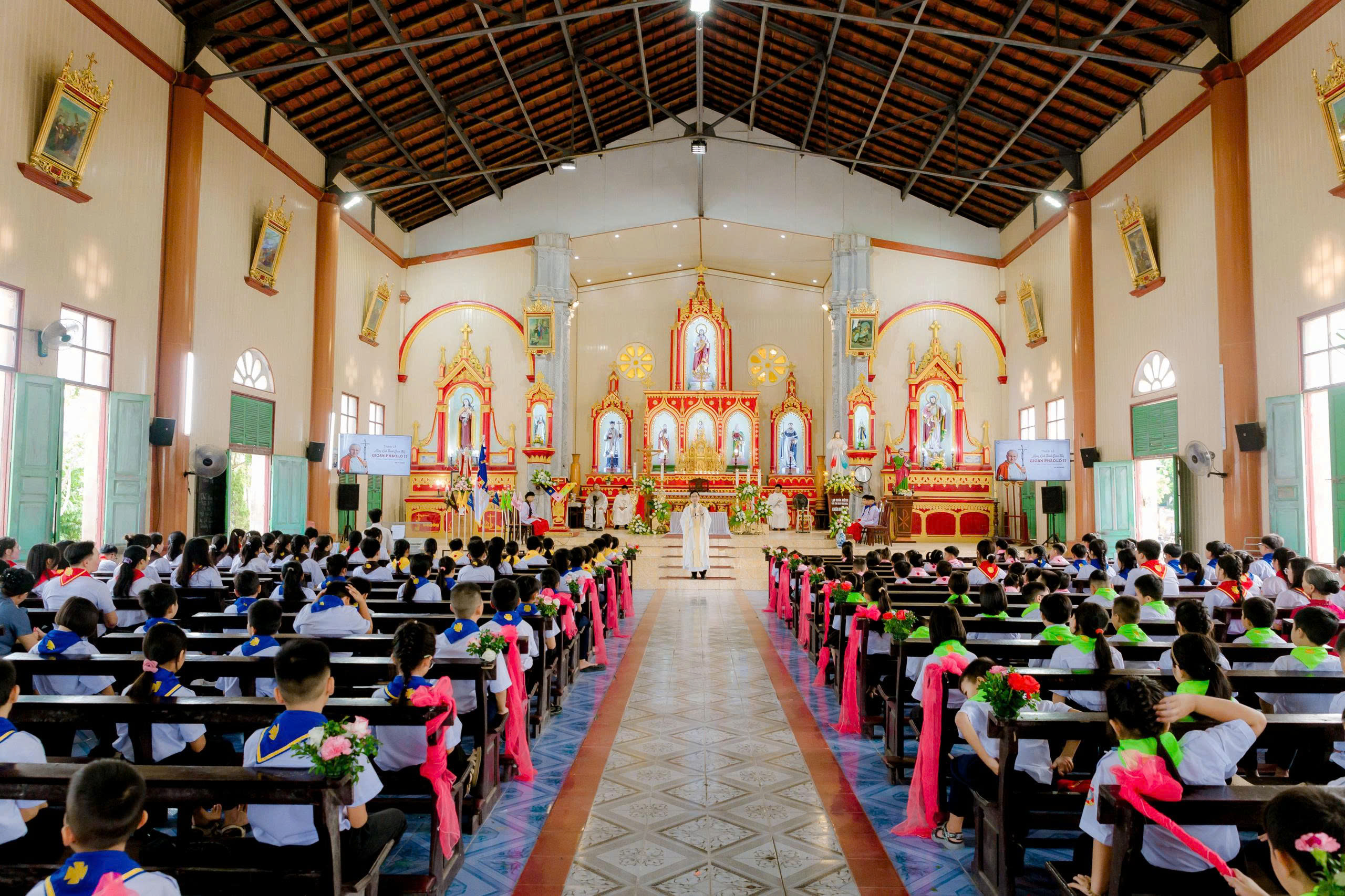 Ngay từ sáng sớm, khuôn viên nhà thờ Giáo xứ Thiết Tranh đã rộn ràng tiếng cười nói, tiếng hát của hơn 150 đoàn sinh, cùng quý Cha, quý Thầy trợ úy, quý khách, quý ân nhân và toàn thể cộng đoàn Dân Chúa quy tụ về để hiệp thông, chia sẻ niềm vui trong ngày trọng đại này.